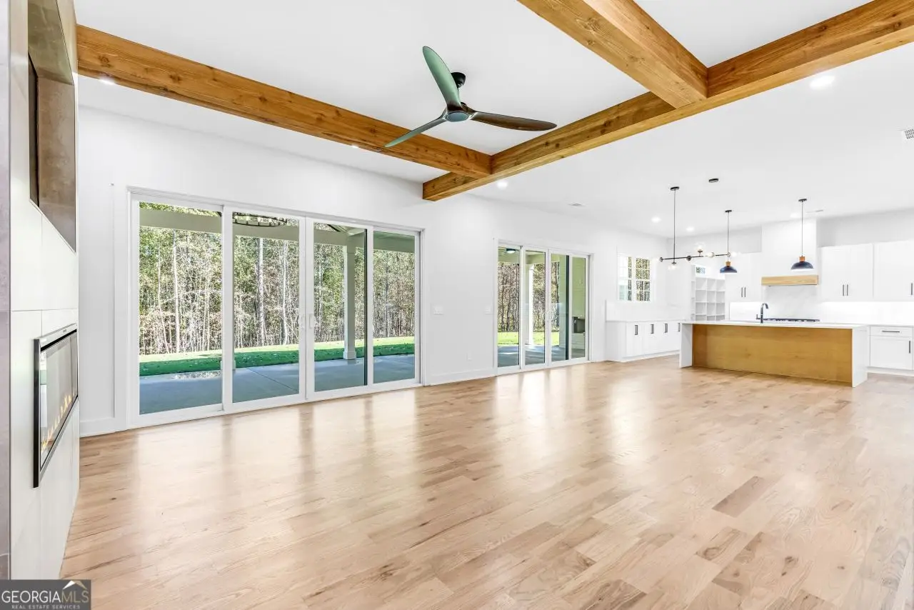 Welcome to Refined Living in Arbor Springs. Experience casual elegance in this beautifully crafted home located in the prestigious Arbor Springs community. Perfectly situated on a serene lot, this home offers an ideal blend of luxury, comfort, and thoughtful design-perfect for entertaining or enjoying peaceful everyday living. Step into a bright, open-concept layout featuring 10-foot ceilings, 5 red oak hardwood floors, and custom trim work throughout. At the heart of the home is a stunning gourmet kitchen with quartz countertops, a wine station, an oversized center island with seating, and high-performance appliances. A very large walk-in pantry offers ample storage and convenience, ideal for any culinary enthusiast. The kitchen flows seamlessly into a spacious great room, complete with a cozy fireplace and elegant boxed ceiling beams crafted from cedar, adding warmth and natural character to the space. A custom sliding glass door system opens to a covered rear porch, providing a smooth transition between indoor and outdoor living-ideal for year-round entertaining. The main-level Owner's Suite is a private retreat featuring a spa-inspired bathroom with a freestanding soaking tub, frameless glass shower, and generously sized custom closets. The laundry room is thoughtfully placed away from the Owner's Suite for added privacy and practicality. Also on the main level, you'll find a flex room, perfect for a home office, study, or formal dining room, as well as a convenient half bath for guests. Upstairs, you'll find three spacious bedrooms, each with its own private full bathroom, offering comfort and privacy for family members or guests. A large bonus room adds versatility for media, recreation, or additional living space. Notable features include: Cedar ceiling beams in the great room, Spray foam insulation for energy efficiency, Custom cabinetry and built-ins throughout, Glass-enclosed showers in every bathroom, Mudroom for everyday organization, 3-car garage with extra space for storage, Pre-wired for EV charger, sound system, and security cameras, Enhanced lighting in bedrooms and flex spaces, Backyard is pool-ready, offering the ideal setting for your future oasis, Professionally designed with premium finishes-and still time to personalize selections to match your style. As a resident of Arbor Springs, enjoy access to resort-style amenities including a clubhouse, pool, tennis and pickleball courts, parks, walking trails, and playgrounds. Conveniently located near top-rated schools, the new Publix center, Ashley Park, and I-85, with just a 20-minute drive to Hartsfield-Jackson International Airport and Atlanta. PREFERRED LENDER OFFERING LENDER FEE CREDIT! Don't miss the opportunity to own this stunning luxury home! Schedule your showing today!