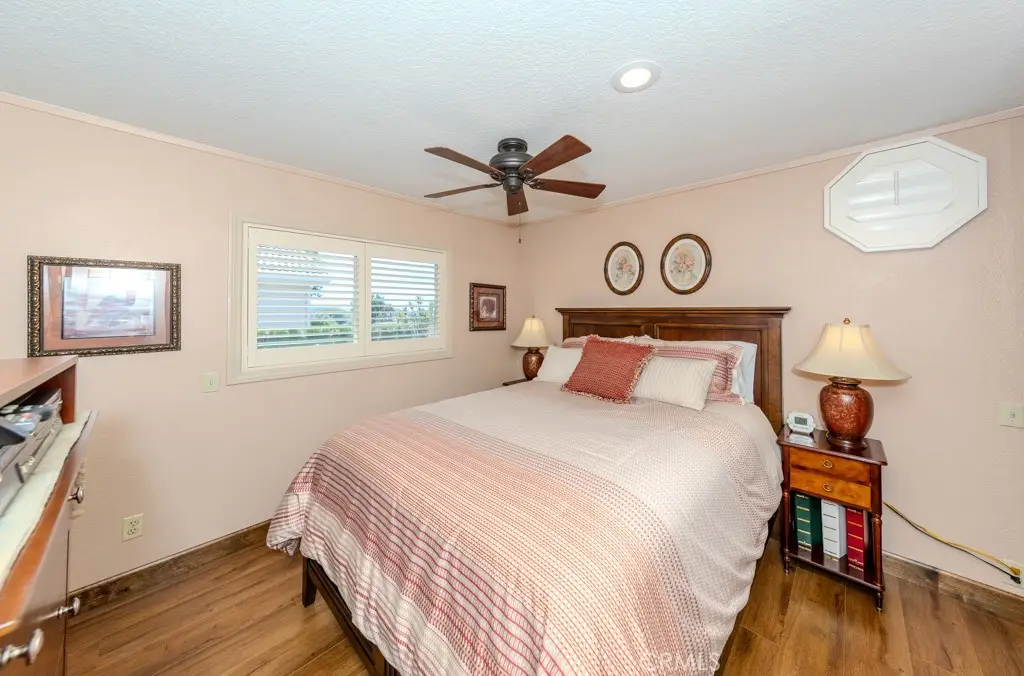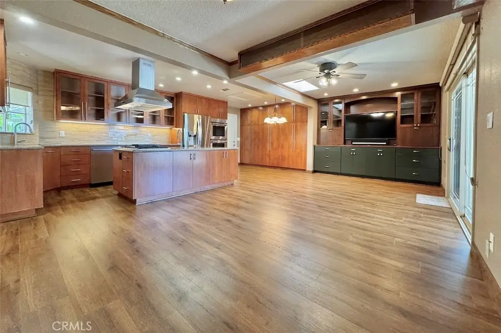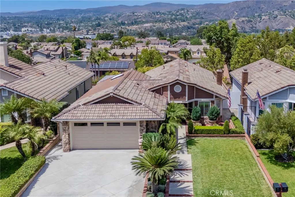 Beautiful single-story home in Anaheim Hills. Wonderful curb appeal, luxurious upgrades throughout and city lights and hillside views. Spanning over 1,500 square feet, the three-bedroom, two-bath layout has been thoughtfully expanded to create an open and inviting floor plan. At the heart of the home is a true gourmet kitchen featuring a custom island with prep sink, five-burner gas cooktop, and abundant storage. Included are Thermador double ovens and warming drawer. Built-in microwave, French door refrigerator, and a new Bosch dishwasher. A dining nook and lots of additional pantry space complete the kitchen, which seamlessly flows into the spacious great room. The great room includes custom built-ins with a TV. The patio door highlights the view. The living room showcases a marble-tiled fireplace and opens to the formal dining area. Wide-plank flooring throughout, plantation shutters, upgraded dual-pane windows, and beautifully remodeled baths elevate the interior. Each bedroom includes a designer closet with custom built-ins, adding both function and style. The home also comes with a new washer and dryer, water softener, garage cabinets, Newer A/C, and a whole-house fan. Set on a quiet street, this home also offers a two-car attached garage with insulated door, low HOA dues of $77 per month, and a low property tax rate of approximately 1.05%. Conveniently close to shopping and dining, this residence is move-in ready and represents Anaheim Hills living at its finest.