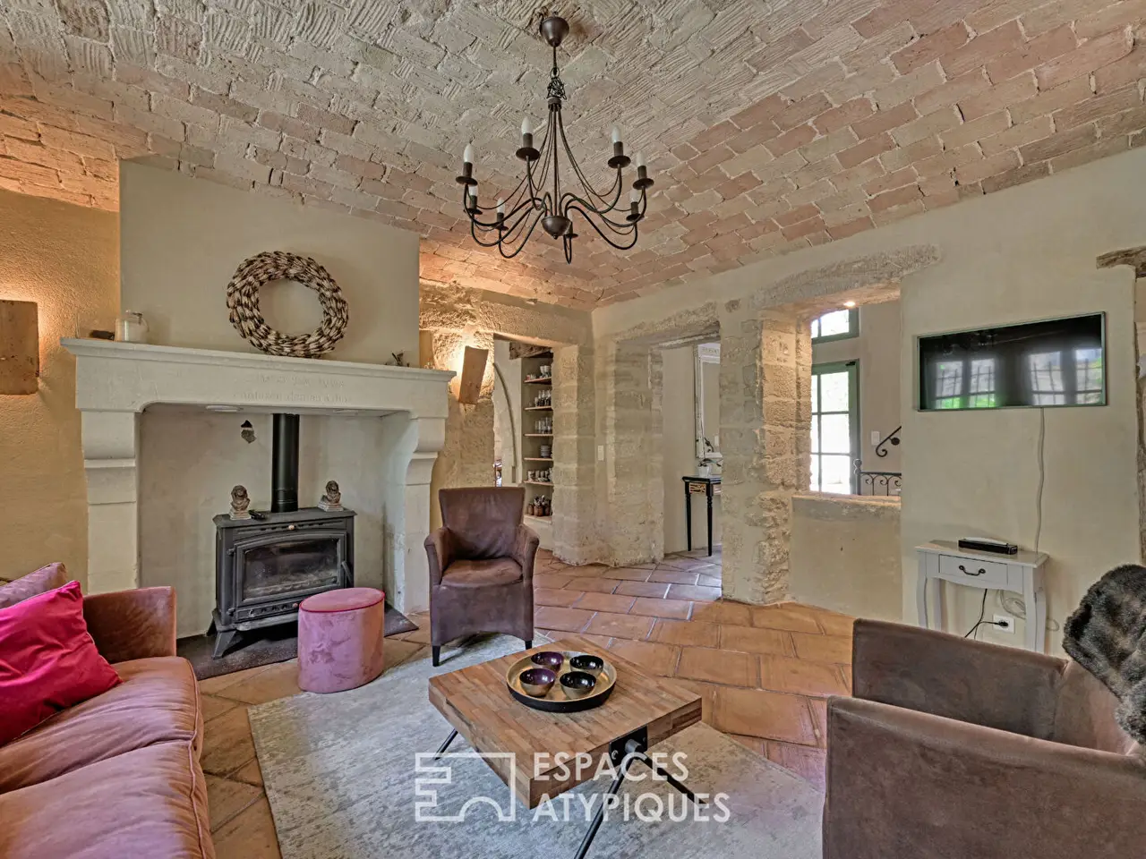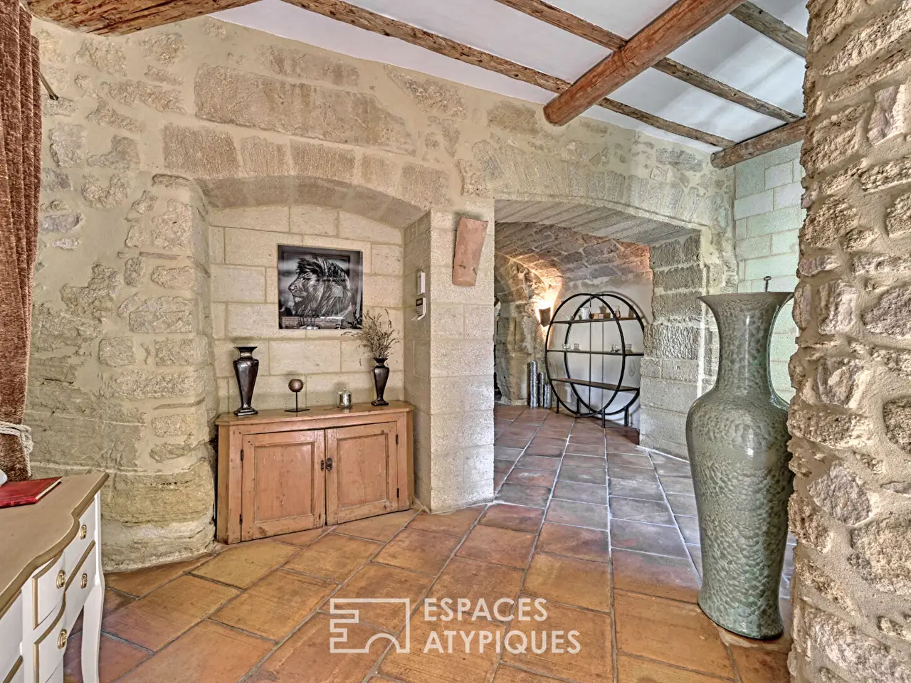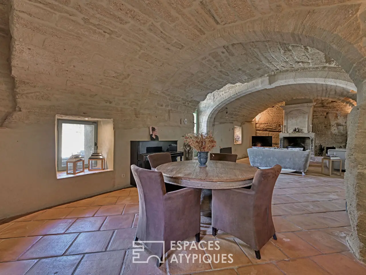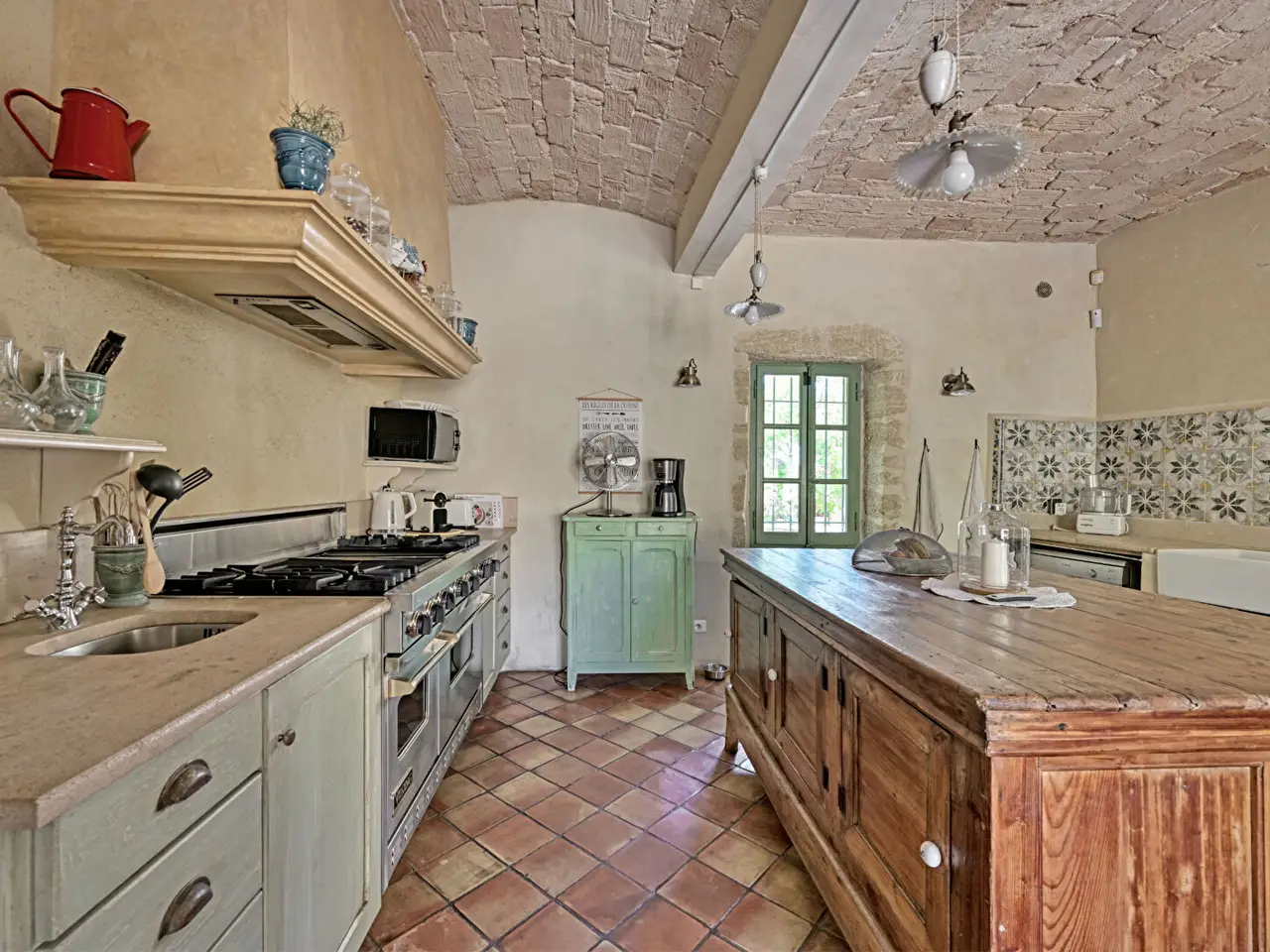 A stone's throw from Uzes, nestled in a secluded village where time seems to stand still, this stone residence of approximately 365 sqm spreads its old-world charm around a sunny courtyard, with a terrace and swimming pool, and a hanging garden. Behind a small, discreet entrance courtyard, a door crossed like a threshold, the gaze immediately rises under the majestic vaults of a former stable reinvented as a large living room. There, the rough stone interacts with a fireplace almost sculpted in the rock, and the light, fluid and soft, slides to the depths of its 59 sqm. The atmosphere is striking: both majestic and deeply welcoming. A little to one side, a second intimate living room with a vaulted ceiling in parefeuille houses a fireplace, like a heart beating in the stone. It opens, on one side, onto a double kitchen bathed in light with triple exposure, wooden island, cooking range and on the other onto the terrace. The adjoining dining room, delimited by a stone arch, opens generously to the exterior and extends the experience of the house towards the sky. On the upper floor of the south wing, the master suite stretches over 46 sqm. A triple exposure bedroom opens its windows onto the murmur of the stones and the softness of a covered terrace. A hallway lined with storage leads to an office, then to a bathroom where a claw-foot bathtub, Italian shower and stone basin create a timeless, almost romantic setting. Higher up, two bedrooms share a floor. One of them, extended by a suspended terrace, offers a view to the west that the sun sets ablaze each evening. A bathroom with simple and elegant lines discreetly completes this level. In the west wing, accessible independently, the first two bedrooms on the first floor overlook the courtyard and the rooftops of the old village, each with its own bathroom. On the upper floor, two further suites separated by a covered terrace open onto infinity. There, the view embraces the countryside as far as Mont Ventoux, in an almost painterly depth of field. Each room is designed as a refuge: generous volumes, noble materials, breathing space. The hanging garden, a little secluded, like a secret corner where one would come to read, dream, or simply be silent. Below, the main courtyard, approximately 162 sqm, comes alive with small nooks, soft shade, and sun-drenched corners. A summer dining room, a solarium, and a swimming pool with simple lines create a rich, fluid, and inspiring outdoor life. A workshop, wine cellar, pantry, bicycle storage, and a garage for two to three cars complete the ensemble. Electric underfloor heating on the south side, oil-fired radiators on the west side, double glazing, nothing has been left to chance. This house tells a story. That of old stones, of lived-in silence, and of an art of living that time cannot alter. Located 4 kilometers from Uzes, 30 minutes from Avignon TGV, 28 kilometers from Nimes and 19 kilometers from the highway. Contact: Virginie 06 77 39 33 14 ENERGY CLASS: D / CLIMATE CLASS: C REF. 12187 Additional information * 10 rooms * 7 bedrooms * 6 bathrooms * 2 floors in the building * Property tax : 4 000 €