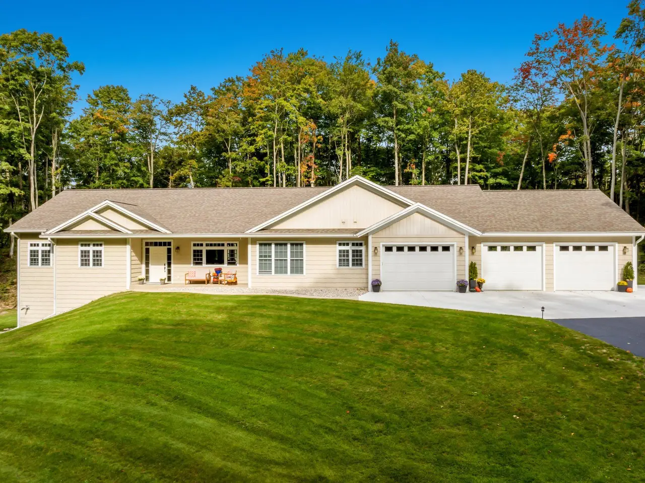 Welcome to your dream home in beautiful Leelanau County! This stunning property is situated on 10.36 acres hardwoods and very private, plenty of room for outdoor activities and entertaining. Step inside this 4325 square foot home and be greeted by an open floor plan, high ceilings, and an abundance of natural light. The master suite is a true oasis, complete with a spa-like en-suite bathroom, walk-in closet, laundry & office. The remaining bedrooms are equally impressive, offering ample space and comfort for everyone. Topping it off is a 3 car heated garage and a 34 x 42 heated polebarn with epoxy floors and upstairs office! WOW! Just 10 min's from Traverse City! Detailed upgrades to this amazing property can be found online.