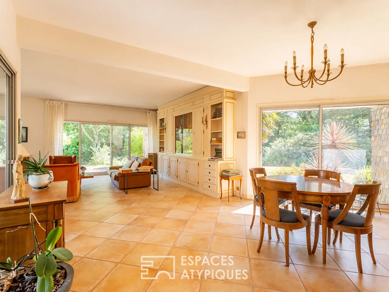 Located in Vannes, in the absolute calm of a private cul-de-sac, this single-story architect-designed house, designed by Yves Guillou, offers approximately 183 sqm of living space on a landscaped plot of over 6,000 sqm. Built in 1978, this property stands out for its harmonious integration into a privileged natural environment, on the edge of a river. Its architectural signature and clean lines give the whole a unique character. The whole is completed by a verdant garden, conducive to contemplation. Upon entering, the eye is drawn to a central planted patio, the true heart of the house around which the various living spaces are organized. The spacious and bright living room opens through large bay windows onto the wooded park. The fireplace structures the space while bringing warmth and conviviality. The separate, fully fitted and equipped kitchen is complemented by a dining area and naturally extends into a functional utility room providing access to the garage, a workshop, cellars, and a boiler room. On the sleeping side, the house offers an office, four bedrooms, two shower rooms, a bathroom, and three toilets, providing a fluid layout suited to family life. The carefully maintained landscaped park overlooks the river. Mature trees and a variety of species create a soothing and private atmosphere. This rare living environment, just minutes from downtown Vannes and the beaches of the Gulf of Morbihan, also benefits from the immediate proximity of schools, shops, and main roads. This house combines remarkable architecture, controlled volumes, and an exceptional environment. A unique property, at the crossroads of design and nature, designed for lovers of architecture and discreet elegance. ENERGY CLASS: E / CLIMATE CLASS: E Estimated average amount of annual energy expenditure for standard use, established from average energy prices indexed for the year 2021, 2022, 2023: between EUR4,400 and EUR6,010/year. Information on the risks to which this property is exposed is available on the Georisques website: www.georisques.gouv.fr Price including agency fees: EUR1,092,000 including 4% agency fees including tax payable by the purchaser. Contact: Anne-Cecile QUEMERAIS Telephone: 06 71 96 12 32 RSAC Vannes 834 522 773 RSACREF. 515EAMAdditional information* 6 rooms* 4 bedrooms* 2 bathrooms* 1 bathroom* Outdoor space : 6400 SQM* Property tax : 2 850 €Energy Performance CertificatePrimary energy consumptione : 193 kWh/m2.yearHigh performance housing*A*B*C*D*193kWh/m2.year57*kg CO2/m2.yearE*F*GExtremely poor housing performance* Of which greenhouse gas emissionse : 57 kg CO2/m2.yearLow CO2 emissions*A*B*C*D*57kg CO2/m2.yearE*F*GVery high CO2 emissionsEstimated average annual energy costs for standard use, indexed to specific years 2021, 2022, 2023 : between 4400 € and 6010 € Subscription IncludedAgency fees* Fees charged to the purchaser : 42 000 €MediatorMediation Franchise-Consommateurswww.mediation-franchise.com29 Boulevard de Courcelles 75008 ParisInformation on the risks to which this property is exposed is available on the Geohazards website : www.georisques.gouv.fr