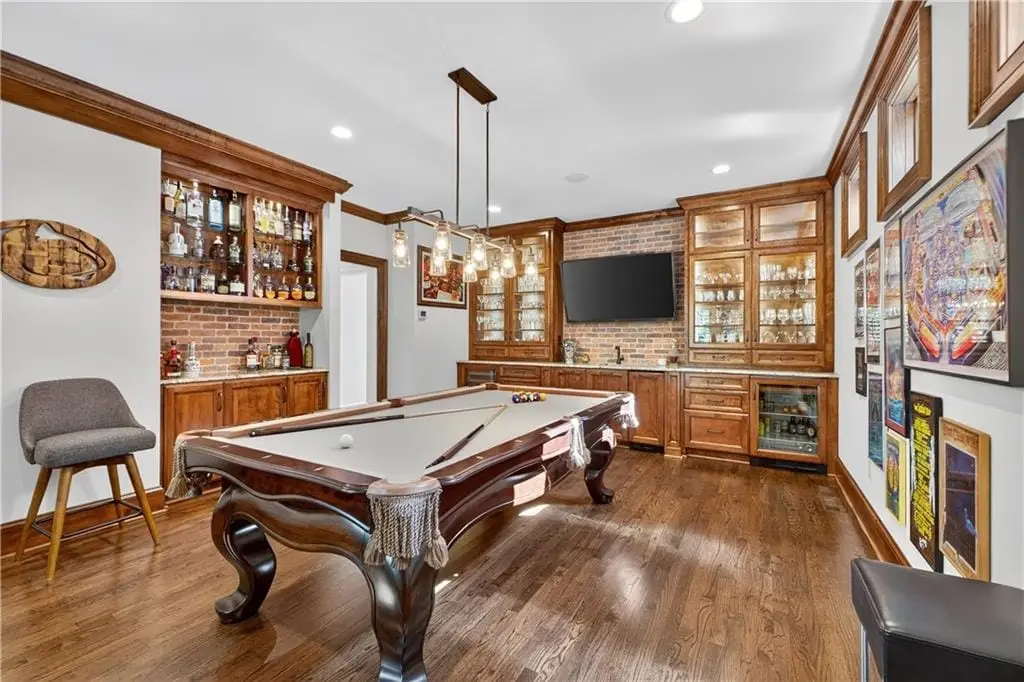 Stunning full remodel by Gahagan-Eddy in the heart of iconic Sunset Hill! This traditional 1.5-story home has been reimagined from top to bottom with incredible attention to detail. Chefs kitchen boasts Thermador appliances, dual-fuel 6-burner range, double ovens, honed granite counters, custom cabinetry, and a large center island, perfect for entertaining. Hardwood floors flow throughout the home, complemented by all new millwork and designer lighting. The house is also fully wired for audio downstairs as well as outside. Spacious great room with fireplace opens to a game room with built-ins, new windows, ice maker, and beverage fridge. Dining room, kitchen, and mudroom connect seamlessly for modern living.First-floor primary suite is a true retreat with walls of windows overlooking the private yard, dual walk-in closets, and a spa-like marble bath featuring a huge dual-head shower, bright tile, and luxurious finishes. Upstairs bedrooms and baths are fully updated. Lower level offers electric blinds and flexible living space.Exterior highlights include new garage doors, new patio, lush landscaping, sprinkler system, buried downspouts, and wiring for exterior lighting. Zoned HVAC, newer roof, updated plumbing and electrical provide peace of mind.This home sits on a private lot just minutes from the Country Club Plaza, a rare combination of luxury, location, and livability. Truly move-in ready and a must see!