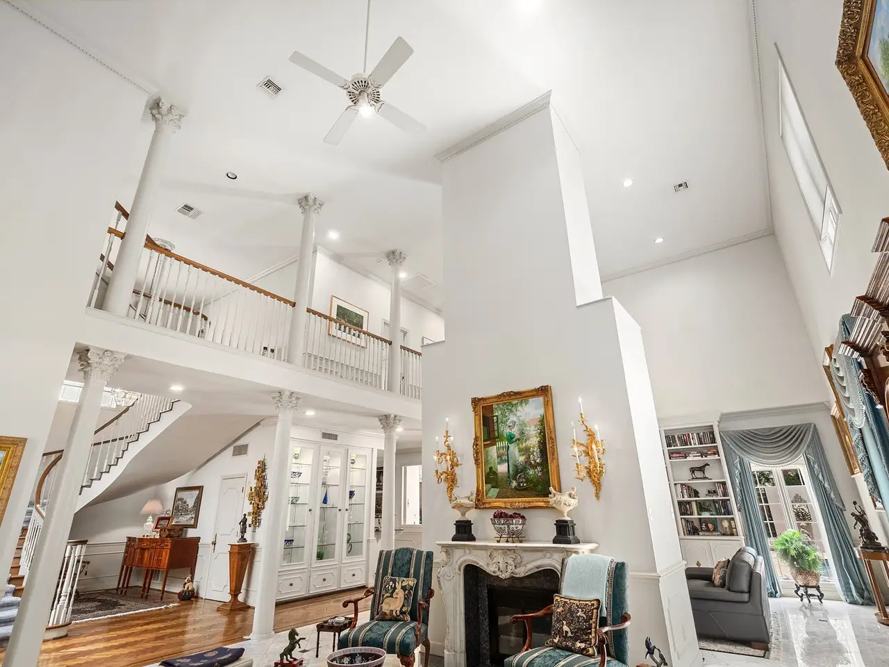 Stately, two story traditional home on a large 26,350 sqft(per HCAD) lot, ready for transformation. Expansive primary bedroom down with dual bathroom and closets. Formals, den, wet bar/butler's pantry, wine room with storage closet. Kitchen area has a large walk-in pantry, utility room, desk area and room for a dining table. Two staircases. Three bedrooms up, all with ensuite baths. Large game room(4th bedroom) up. Extra room up, could be home office/study. Swimming pool. Two driveways, enter and exit on Rocky River or Sage Rd. Parking court, 2 car garage, 2 car carport, extra parking. Private courtyards. Being sold in present condition. No repairs will be done. This is an opportunity to customize or create your dream home. All info per seller