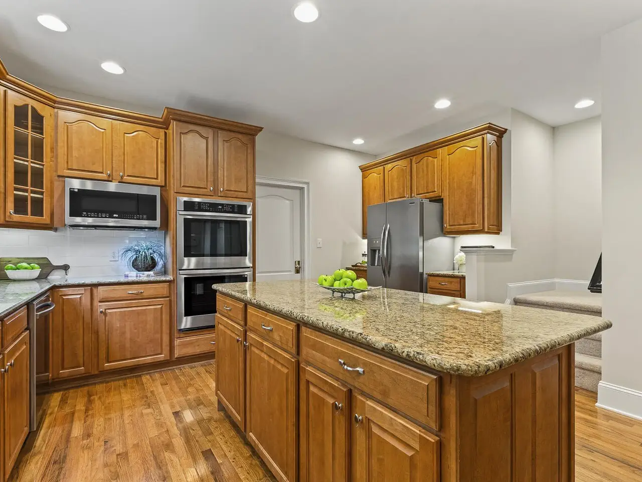 Stunning, all brick, move-in ready home in beautiful Brier Creek! Steps to the clubhouse and amenities. A dramatic, open staircase greets you. Gleaming hardwood floors. Fresh paint and new carpet. Dream kitchen with island, gas cooktop, double ovens and large pantry. Light/bright, vaulted family room. Elegant formals. Cathedral ceiling in 1st floor primary bedroom with a ''Must See'' renovated, opulent bath + sitting room. Spacious bedrooms and a huge bonus room with walk-in storage. Peaceful, screened porch + open deck. 3 car, side load garage. Circular driveway. Beautifully landscaped, fenced lot. Incredibly convenient location. A wonderful place to call home!
