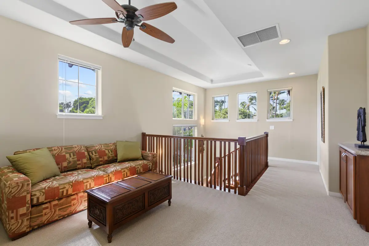 Golf Villas F5 is a 3-bedroom townhome in a quiet, gated community within Mauna Lani Resort on the Kohala Coast. Surrounded by the Mauna Lani South Course, it offers low density living with peaceful golf course and mountain views. This is the first time the unit has ever been offered for resale. The unit is being offered fully furnished and turnkey, in excellent condition with minimal use, never rented, and meticulously maintained throughout. Designed in Hawaiian plantation style, Golf Villas F5 sits near the Amenity Center with a lava rock and Ohia wood theme, pool, hot tub, and fitness center. The Mauna Lani Beach Club is just a half-mile away with complimentary lounge chairs and oceanfront dining at Napua restaurant. Upgrades and features include:-Brand new central A/C system and handler-New carpet and pad-New LG washer & dryer-New Bosch dishwasher and upgraded LG refrigerator-Lanai BBQ island with cover + new exterior fan-Fans in every room, dimmer switches, LED kitchen downlights-Fan timers in all bathrooms-White sinks added in primary suite (replacing black)-Freshly painted garage floor + storage rack-Upgraded closet lighting and added pendant lights/chandelier-Handheld shower sprayers + flip-down teak seat in primary bath-Upgraded staircase sconces, window tinting, and curtains/rods-Programmable Trane lock + 3-camera security system-Closet lighting and storage upgrades downstairs. Don't miss the opportunity to acquire a move-in-ready villa in one of Mauna Lani’s most peaceful and private communities.