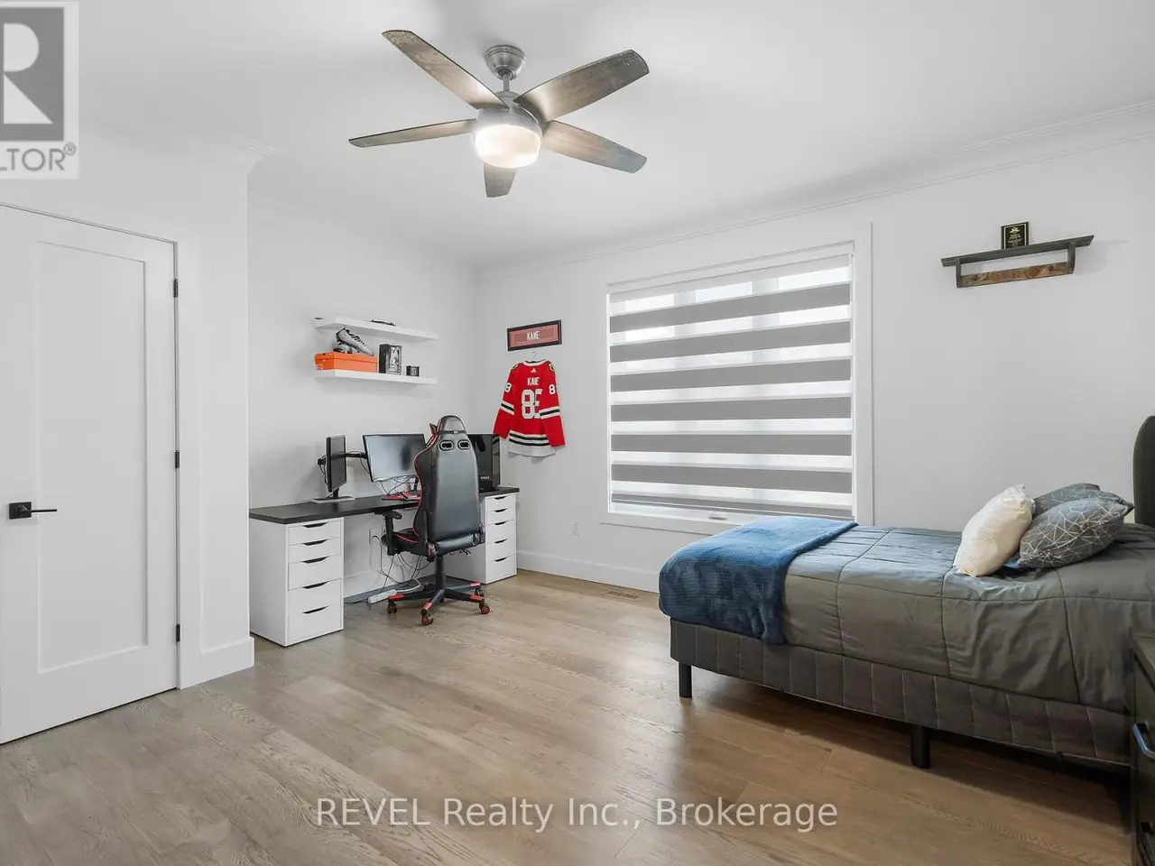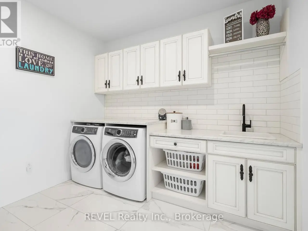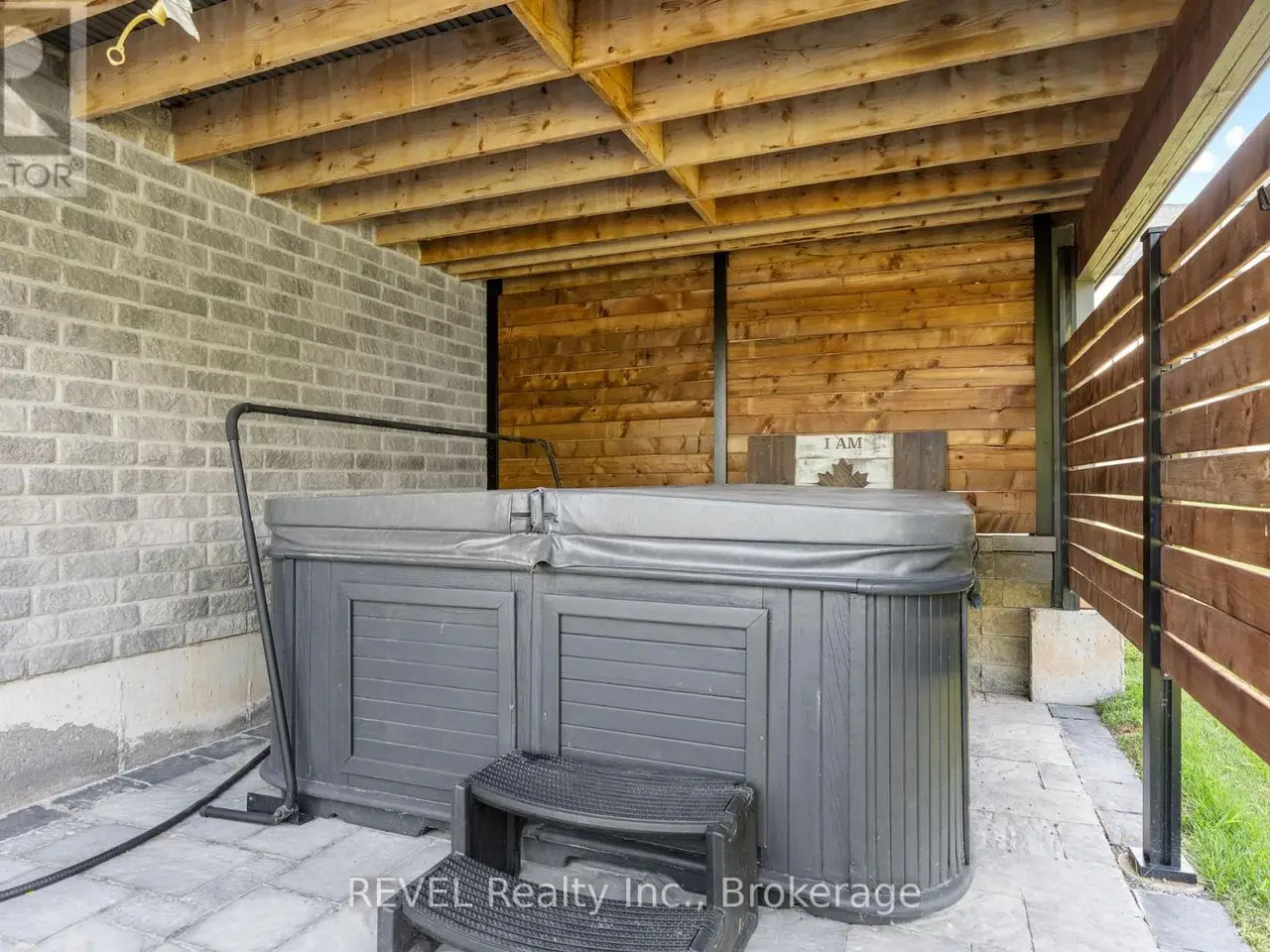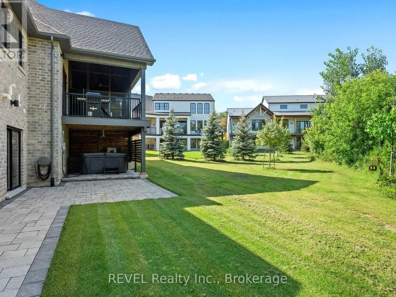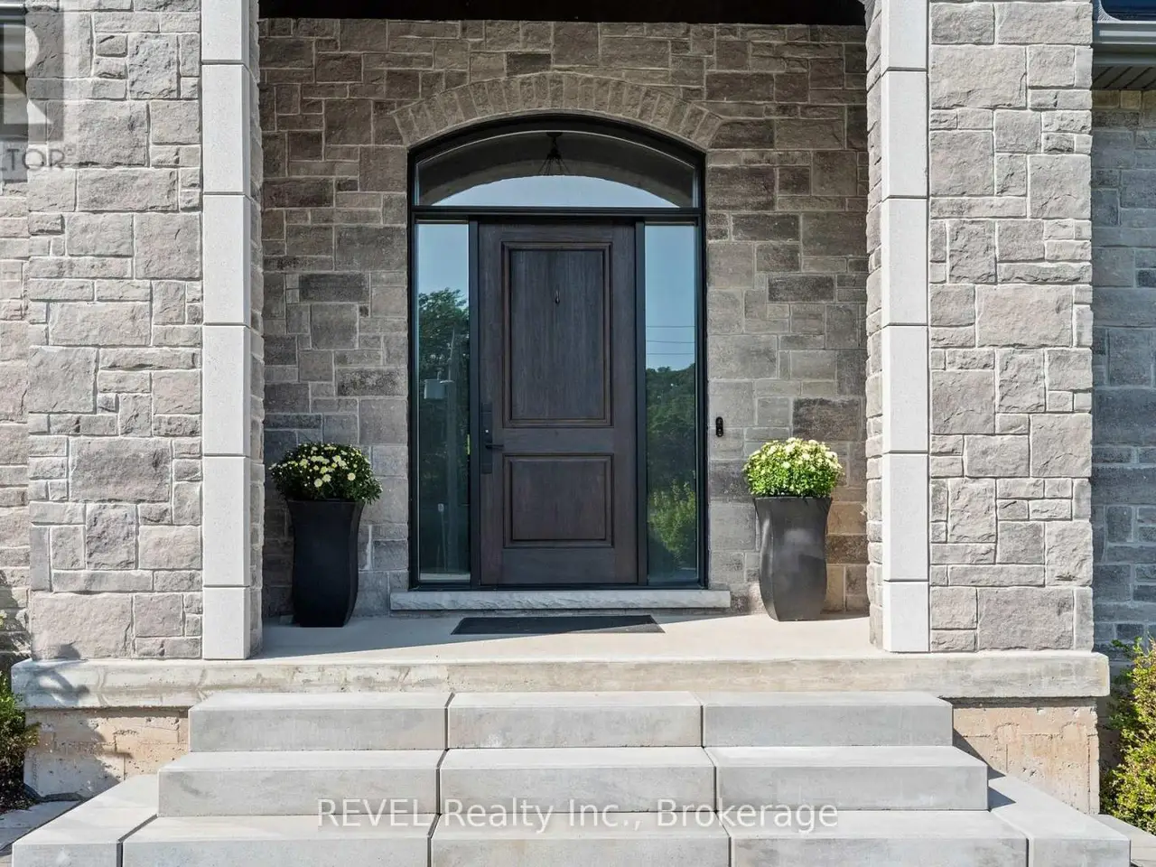 Welcome to this stunning custom-built stone bungalow with 2,750 sqft of finished living space, on a large irregular pie-shaped lot with mature trees. Step into a spacious front foyer leading to an open-concept main floor, where luxury meets comfort. The kitchen is a chef's dream, featuring Traditional and Contemporary design features, large island with a built-in dishwasher, bar top seating andFrigidaire Professional Series appliances. Quartz countertops throughout, Engineered Hardwood and ceramic tile flooring. A walk-in pantry off the dining area offers a wine cooler, prep sink, and extra storage. The living room boasts a cozy electric fireplace and a coffered ceiling, while the dining area opens to a rear deck, perfect for entertaining. The master bedroom suite includes a walk-in closet and a 4-piece ensuite with a large walk-in tiled shower. Two additional bedrooms share a 3-piece bath with another walk-in shower, plus a convenient 2-piece powder room. Outdoor living is a delight with a rear covered porch featuring a gas BBQ hookup and composite decking, and a 3-season sunroom with vaulted ceilings by Outdoor LivingDesigns. The 300 sqft finished basement area offers extra living space, with potential for an in-law suite in the unfinished section, complete with a full walkout and roughed-in 3-piece bathroom. A private hot tub area adds to the appeal. The fully landscaped property includes a sprinkler system, lighting, interlocking stone patios, and walkways. An oversized 2-car garage provides ample storage. Located near wineries, restaurants, shopping, and with easy access to the QEW and Lewiston-Queenston Border Bridge, this home offers the perfect blend of luxury and convenience.**EXTRAS** tankless water heater, basement fridge (id:7434)