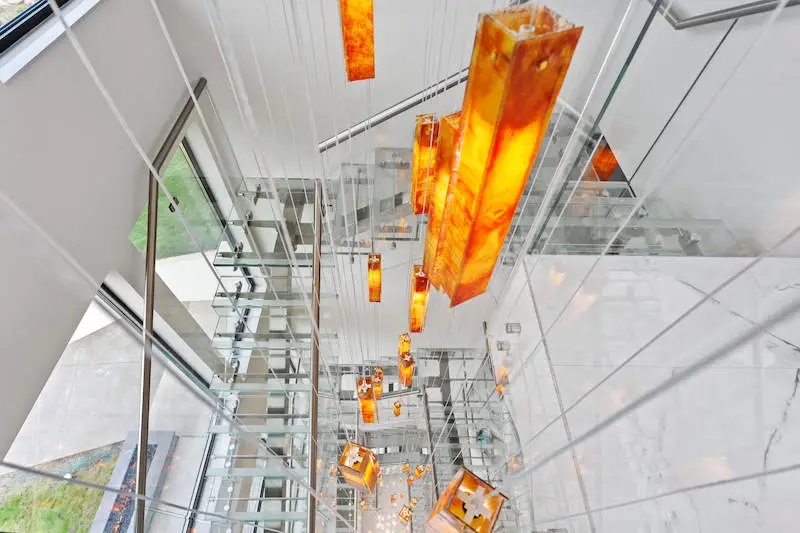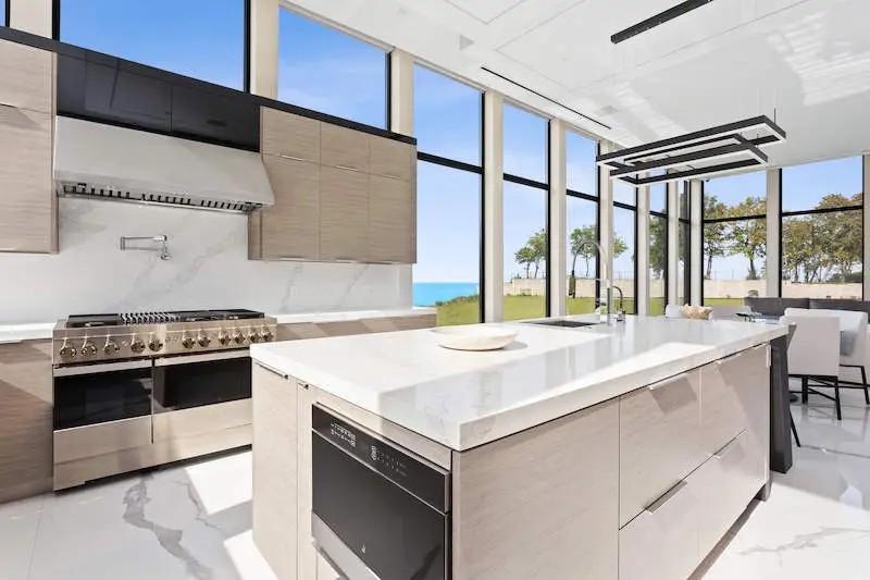 Modern home with 8,000 SF of dramatic spaces that focus on clean lines, sleek surfaces & panoramic Lake Michigan views. 4 levels with floor to ceiling windows & heated Marble floors. Impressive custom glass staircase paired with glass elevator for access to all levels. Featuring breathtaking chefs' kitchen with 2021 Jennair & sub-zero appliances & beautiful White quartz countertops. Impressive Primary suite with incredible lake views gorgeous Marble fireplace, wrap around windows with sitting area. Striking ensuite with Marble walk in spa shower & custom soaking tub handmade in Italy. 3 large guest suites. Roof top deck with hot tub. Lower-level home theater with advanced viewing screen/audio system. Bar with humidor, custom wine cellar, light up onyx bar & kegerator.