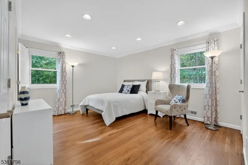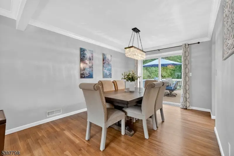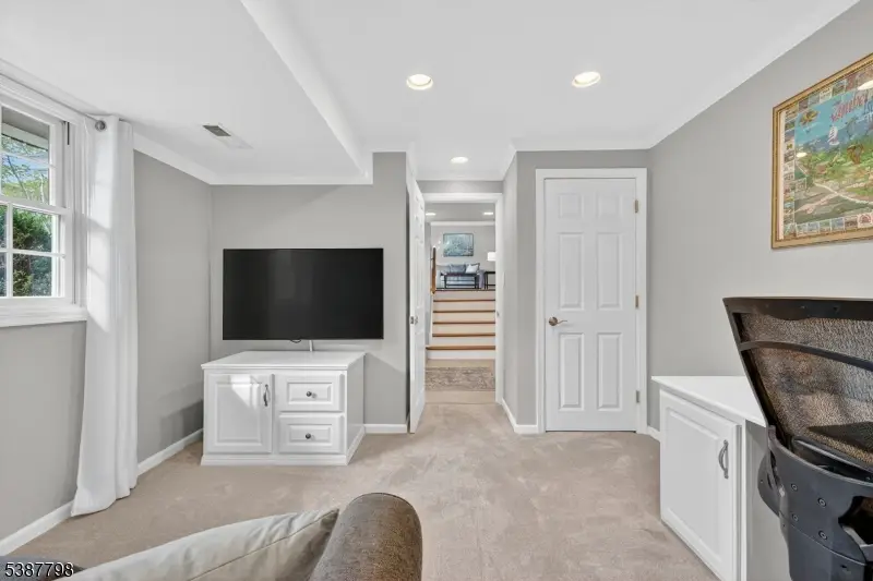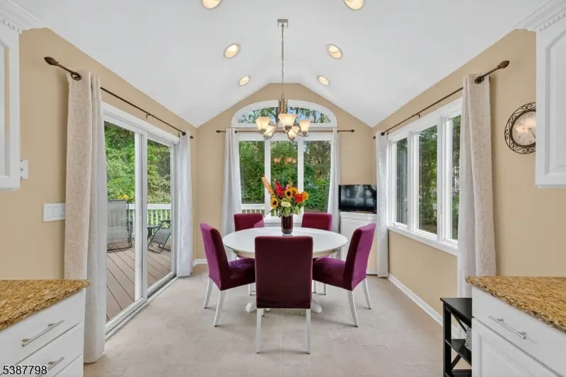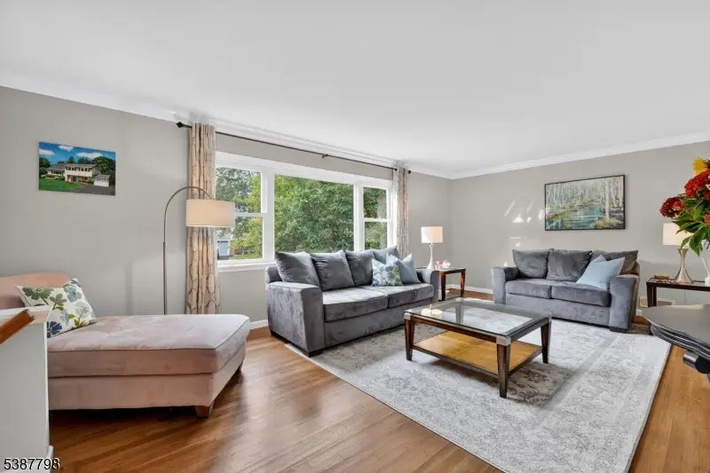 Wow! 54 Badgley will impress you from the moment you pull up to this meticulous home! They say "the kitchen is the heart of the home" and it speaks true for 54 Badgley! The 1st floor offers a large living room with an abundance of sunlight and an open floor plan to the dining room and the kitchen. The expanded kitchen offers granite counter tops, custom cabinetry, stainless steel appliances and a stunning eating area accented by a cathedral ceiling and windows on three sides overlooking the yard, deck and patio (this area is ideal for dining, game night or entertaining!) Both the dining room and kitchen offer egress to the private trek deck. The ground floor offers a gracious foyer, large family room with egress to the patio, custom built-in cabinet with lighting, the 5th bedroom (also suitable for home office) and a powder room. Upstairs are three bedrooms inclusive of the primary suite and a full bath. The third level offers another spacious bedroom with custom built-in cabinets/closets (currently used as primary). The basement is all set for conversion to a recreation room or home gym! The outside is the perfect set-up for entertaining with a large private yard, spacious patio and deck. Let's talk about location!!! Just 0.25m to Salt Brook Elementary, 0.5m to NP Train Station and bus to Port Authority, 2 blocks to Lions Park playground and 0.75m to New Providence's vibrant downtown restaurants and small businesses. Welcome home!