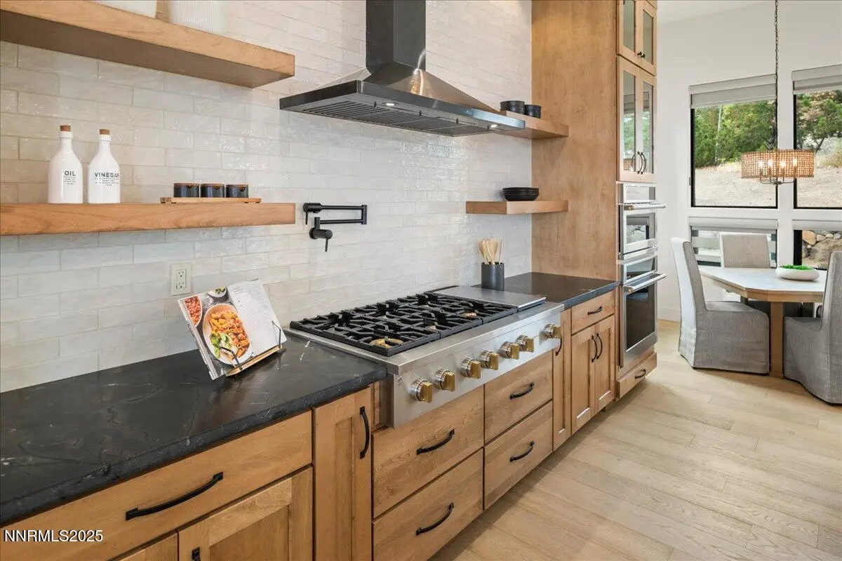 BRAND NEW CONSTRUCTION in ArrowCreek - rare single story with 8-car garage! Outstanding contemporary custom finishes include an upscale suite of GE Monogram kitchen appliances, Taj Mahal quartz and honed leather granite countertops, 7.5" plank hardwood flooring, custom maple cabinetry with soft-close and pull-out drawers, banded and Roman shades, impressive custom front door entry, Toto toilets, and so much more. The Chef's Kitchen showcases a 6-burner stovetop + griddle, built-in oven, convection microwave, pot filler, apron sink, and spacious walk-in pantry. An adjacent Wet Bar is ready for entertaining with a beverage refrigerator, sink, and additional storage. The brilliantly-designed floor plan flows seamlessly with the Primary Suite on one wing, and 2 Guest Suites and a dedicated Office on the other. The voluminous ceilings and extensive custom stonework provide grandeur, which is balanced by the warm tones and inviting spaces that make you feel right at home. The 8+ Car Garage is an absolute knockout. Fully equipped with epoxy flooring throughout, a utility sink, and two RV indoor dump stations. Located at the end of a quiet cul-de-sac, this home has multiple exterior options to relax and enjoy, including a front courtyard and a remarkable covered backyard patio, complete with outdoor fireplace and low-maintenance quality turf. Exceptional opportunity to enjoy brand-new construction in ArrowCreek! This home at 10755 Renegade Court is just .2 miles away from ArrowCreek's "Harbottle Park," which offers a shaded pavilion, playground, bocce ball, and more. All ArrowCreek residents can enjoy the Residents' Center, which includes a community pool complex, tennis and pickle ball courts, basketball court, fitness center, playgrounds, BBQ areas, open lawn space with surrounding par course, and miles of walking trails. The Club at ArrowCreek recently unveiled a remarkable 70M expansion. Members can enjoy 36 holes of golf, elevated dining outlets, pool amenities, state-of-the-art fitness center, driving range, putting greens and chipping areas, bocce ball, special event spaces, and clubhouse activities and events. There is no membership offered with this sale; please inquire with ArrowCreek's Membership Director for membership options and availability. ArrowCreek is a private gated golf course community with 24-hour manned security. Just 20 minutes to the Reno-Tahoe International Airport, 25 minutes to the Mt. Rose Ski Resort, and a short 40-minute drive to beautiful Lake Tahoe.