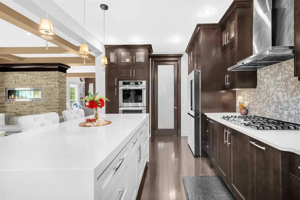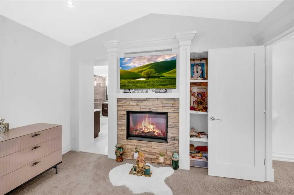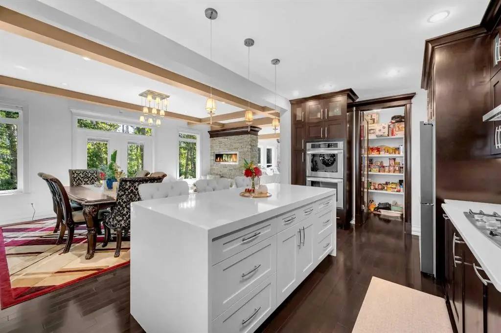 Discover a haven of refined living nestled against a tranquil forest in this former show home, where captivating stone and stucco exterior architecture meets a bespoke wooden trim lined interior that radiates timeless elegance. With over 4,900 total square feet throughout this luminous five bedroom, three full bath residence, it features an attached triple car garage, two powder rooms, and a main floor defined by soaring 9 foot ceilings, a gracious den, and a majestic 3D gas fireplace. The gourmet kitchen, ensconced beneath a chauffeured ceiling over the dining area offers floor to ceiling cabinetry, built in appliances, a vast pantry, Samsung smart fridge, and colossal island, all crafted for both culinary excellence and effortless entertaining. Upstairs, a sun drenched open-to-below bonus room with an electric fireplace overlooks the living area on the main floor and is accompanied by two bedrooms that share a Jack and Jill style bath with an additional common powder room upstairs. The luxurious master suite serves as an elegant retreat with a cathedral ceiling, pot lights, cozy gas fireplace, and spa-inspired ensuite featuring dual vanities, a two-person air tub, an opulent steam shower, and his and hers walk in closets creating a truly one of a kind space and atmosphere. The walkout lower level beckons as a radiant entertainment sanctuary, offering ample natural light through oversized windows, a near full kitchen including high-end Electrolux appliances and combo oven/microwave, two additional bedrooms, and another versatile space ideal for a den or media lounge. Premium amenities within the home encompass central air conditioning, dual furnaces, water filtration system, abundant pot lighting and much, much more. The southeast facing backyard flows seamlessly into a private wooded backdrop, crafting an idyllic extension of your indoor sanctuary and presenting the perfect space for any gathering you could have. Just minutes from top tier schools such as William D. Pratt School and Royal Oak School, the YMCA, shopping centers, and grocery stores, this residence delivers an extraordinary fusion of elevated design, sophistication, and effortlessly accessible community luxury that can only be gained by making this home yours.
