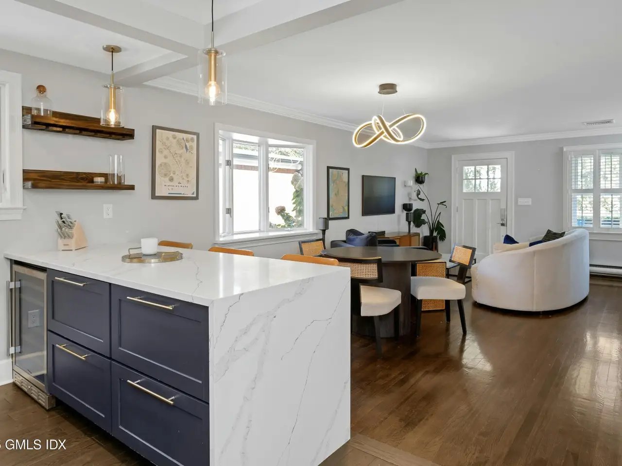 Beautifully updated three-level townhouse offering modern comfort in a convenient Greenwich location. The home features three bedrooms, two full baths, and a finished walk-out lower level that extends the living space for a home office, gym, or media room. The main floor includes an updated kitchen with quality finishes, open living and dining areas, and access to a peaceful and beautifully landscaped yard. Private rear deck is perfect for lounging, fire pit, enjoying coffee or cocktails. Located moments from Greenwich Avenue, the train station, and Equinox, this move-in-ready residence combines low-maintenance living with proximity to shopping, dining, and commuter routes. A perfect blend of style, function, and location in one of Greenwich's most convenient neighborhoods.