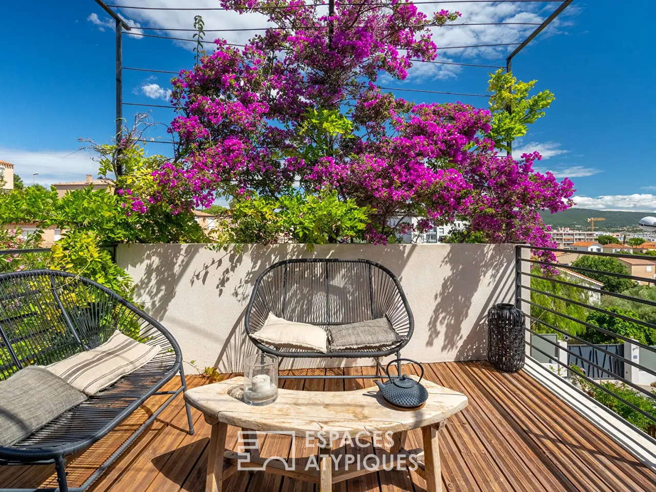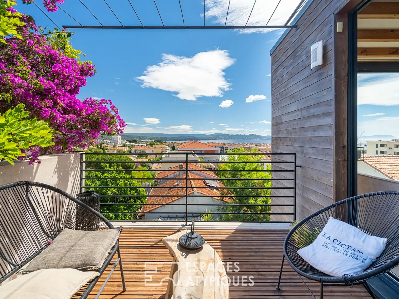 Contemporary house with sea viewLocated a few minutes walk from the port of La Ciotat, this contemporary house of 150 sqm of living space on a plot of 345 sqm is in a dominant position with a panoramic view between sky and sea over the bay of La Ciotat.The upper level of the house, built with a wooden frame and cladding, is distinguished by its innovative and ecological architecture. The living room, as if suspended, allows you to admire the unique sea view thanks to its bay window extending over the entire width of the room.On the lower level, two spacious bedrooms with mezzanines face each other and open onto the garden. The middle level includes an additional bedroom and bathroom. A few steps lead to a large living room with a living room, an open kitchen and an adjoining wooden terrace, as well as a new bedroom with a separate bathroom. This level also includes an air-conditioned wine cellar and a multipurpose space that can be converted into a studio, office or games room. Outside, a pretty, calm, wooded garden even has a spa. A parking space completes this house designed to maximize light and space, creating a harmonious and functional living environment.This rare property is a perfect combination of modernity, comfort and exceptional view in La Ciotat. 10 minutes walk from the port and beaches, close to school amenities, transport and motorway access.ENERGY CLASS: C/ CLIMATE CLASS: C Estimated average amount of annual energy expenditure for standard use, established based on energy prices for the year 2021: between 850 and 1220 eurosREF. 6247Additional information* 5 rooms* 4 bedrooms* 2 floors in the building* Outdoor space : 345 SQM* Parking : 1 parking space* Property tax : 2 237 €Energy Performance CertificatePrimary energy consumptionc : 98 kWh/m2.anHigh performance housing*A*B*98kWh/m2.an14*kg CO2/m2.anC*D*E*F*GExtremely poor housing performance* Of which greenhouse gas emissionsc : 14 kg CO2/m2.anLow CO2 emissions*A*B*14kg CO2/m2.anC*D*E*F*GVery high CO2 emissionsAgency feesThe fees include VAT and are payable by the vendorMediatorMediation Franchise-Consommateurswww.mediation-franchise.com29 Boulevard de Courcelles 75008 ParisInformation on the risks to which this property is exposed is available on the Geohazards website : www.georisques.gouv.fr