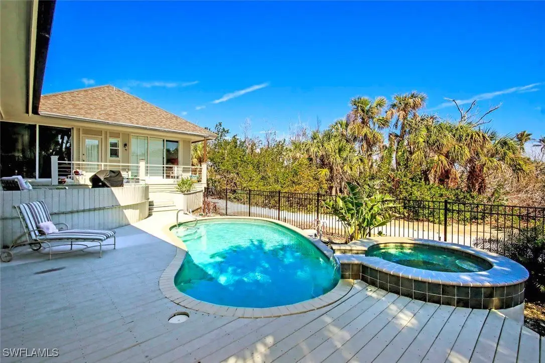 Located off West Gulf Dr. in much desired, near beach, low key, small and natural community of Gopher Walk. This gorgeous pool home was designed by Ray Fenton and offers a split floor plan with open Chefs kitchen, family room, dining room and breakfast bar. Slightly elevated by 7 1/2 ft. to the main living area which is all on one level. Sliders across every room allows you to totally open the house for inside-outside living. It also offers you gorgeous views from every room overlooking the large decks, pool, spa and beyond that the nature preserves. Because it's set way back on the lot it offers total privacy. With the split floor plan, it would allow you to have 2 primary suites, ideal for in-laws or adult family private quarters. The primary bedroom is very spacious and has a totally redone bath with soaking tub, shower and double sinks. That still leaves one lovely guest room with private porch and shared bath across the hall that's also the pool bath. The main living area offers high ceilings, Cortec Plus RedRiver Hickory vinyl flooring that is stunning. Quarzite counters in the kitchen, large dining room that offers not only sliders on one wall but another large section of glass to bring the outside in. There's also a separate laundry room with soaking sink. The spacious office offers a private bath and Juliet balcony towards the front of the house, The large outside decks is Trex and the covered porch section is ideal for outside entertaining and PGT high impact windows. Updates inclu8de four completely remodeled bathrooms, new cabinets, new baseboard and trim. The house has been pained inside and out. There's also a large deck around the pool/spa area. Oversized two car garage offers lots of extra storage space. The community association offers a large pool, tennis, pickle ball, half-court basketball, restrooms and covered seating area. Beach access just across the road. You really have to see this home to understand what a special jewel this is. It's truly one of a kind.