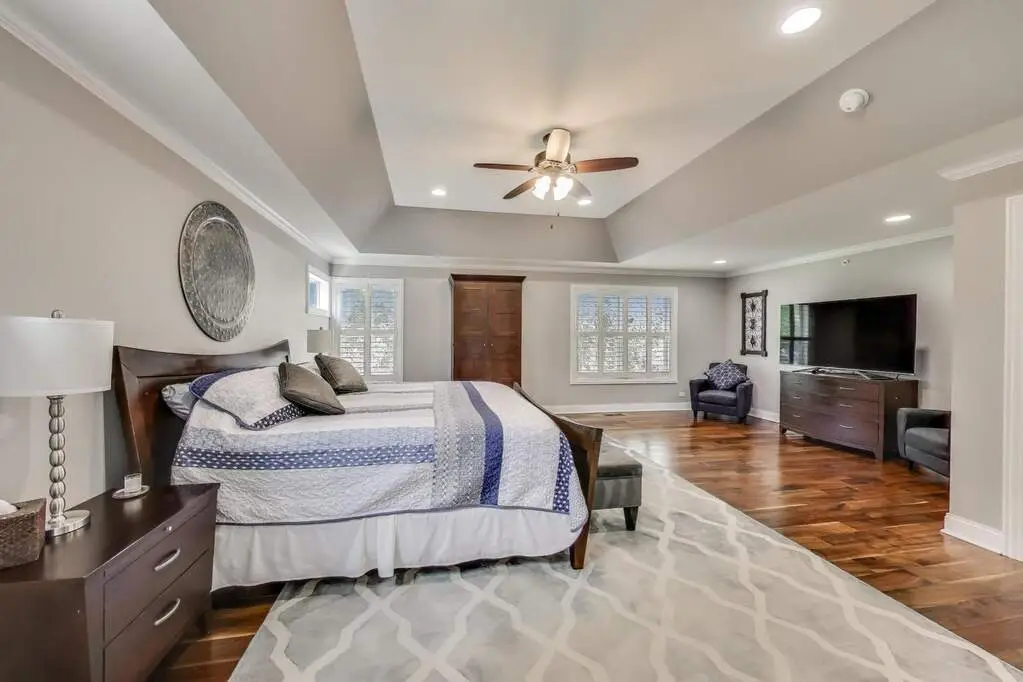 East Coast elegance meets Midwestern charm in this beautifully crafted shingle-style residence, ideally located just blocks from vibrant downtown amenities-including restaurants, boutique shops, the train, and top-rated schools. This one owner home, built in 2014, 5,700 sq.ft approx. was thoughtfully designed for modern living, featuring an open-concept main floor and a spacious backyard ideal for entertaining. From the inviting front porch to the moment you step through the front door, you'll be struck by the attention to architectural detail throughout. The heart of the home is a stunning family room anchored by a stone fireplace, seamlessly flowing into the kitchen and dining area. Expansive windows throughout flood the interior with natural light, creating a warm and welcoming atmosphere. Upstairs, the second level offers generously sized bedrooms, each with excellent closet space and access to multiple bathrooms and a well appointed laundry room. The luxurious primary suite is tucked away in its own private wing and features two walk-in closets, and a spa-inspired bathroom. The fully finished lower level is equally impressive, offering a custom wet bar, stylish ambient lighting, a fifth bedroom, and abundant storage. Step outside to a beautifully landscaped backyard complete with a deck and slate patio-perfect for outdoor gatherings. Additional highlights include an attached three-car garage with a fourth tandem space, offering ample room for vehicles and storage. This exceptional home combines timeless style, modern comforts, and a highly desirable location. A must-see property for discerning buyers.