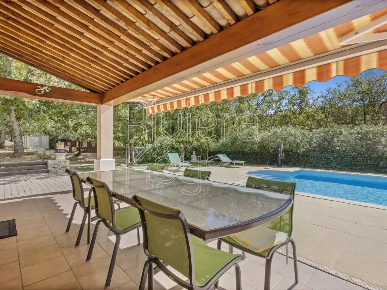 In a peaceful, elevated setting surrounded by greenery, this elegant property offers a rare and privileged lifestyle. The main house features a bright living room with fireplace, dining area, fitted kitchen and 4 bedrooms including a master suite, plus a laundry room. A separate guest house with 2 bedrooms offers ideal accommodation for family, friends or rental use. The landscaped grounds of about 3,000 m² include a pool, spa with jacuzzi, terraces, a storage chalet, garage and workshop. A quality home in perfect condition combining comfort, space and serenity.
