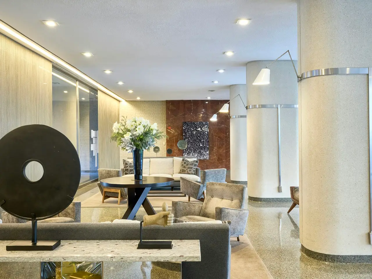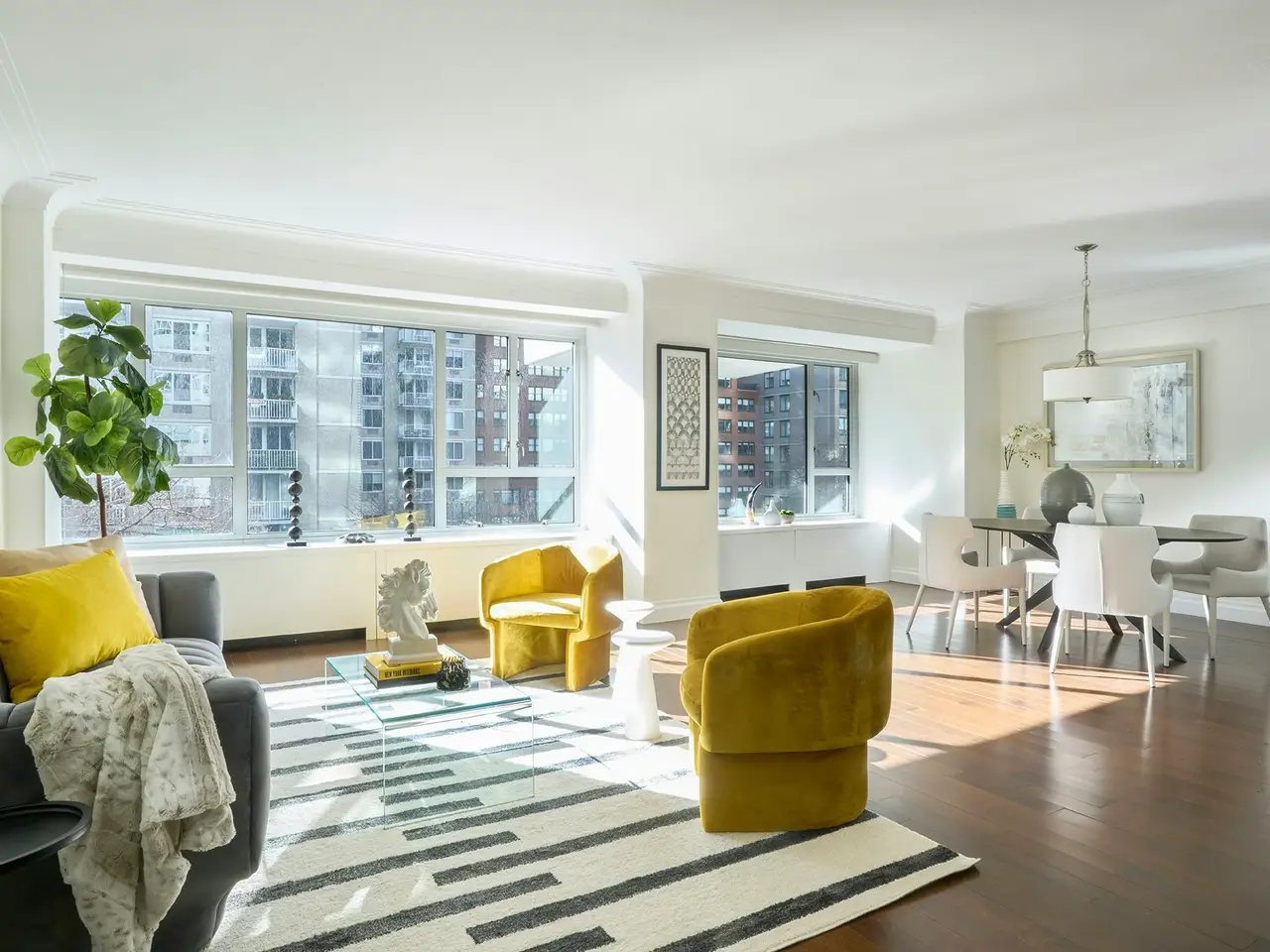 With an abundance of light throughout, this pristine South facing 2 bedroom/2 bathroom home is both comfortable as well as stylish. The functional layout offers a multi-purpose entrance gallery, expansive living/dining area, and generously proportioned bedrooms. The custom plaster moldings and new wood floors add an additional "sense of quality". The windowed chef's kitchen is a grey and white beauty. There are Viking stainless steel appliances (including a wine cooler), Balsatina countertops (quarried outside of Rome), abundant custom white oak cabinetry, and a snazzy Ann Sacks glass backsplash. Within the primary bedroom suite is a marble bathroom with double sinks and stall shower. There is generous closet space. Outside the secondary bedroom is a full bathroom that also functions as a powder room. With a washer/dryer, entry closet, and multiple exposures, this sophisticated 1,460 square" residence is superb, spacious, and sun-lit! Manhattan House, one of the most distinguished architectural buildings in New York City, spans the entire block from 65th to 66th Street. This glamorous condominium provides superlative services and a luxurious lifestyle. Vincente Wolf designed the renovated lobby and the large landscaped private garden is meticulously maintained. The numerous amenities include full-time doormen, garage, on-site management office, children's playroom, rooftop lounge, bike room and fully-equipped fitness center. This Upper East Side landmark, once home to Benny Goodman and Grace Kelly, is convenient to restaurants, shops, public transportation, and Central Park.
