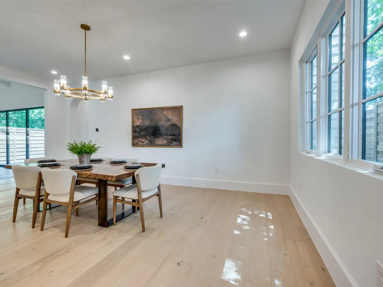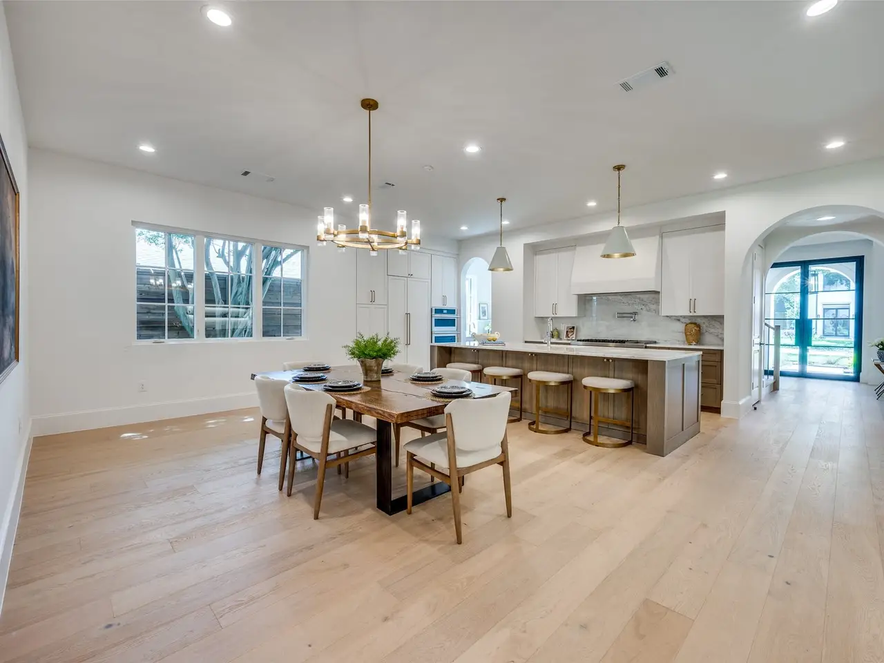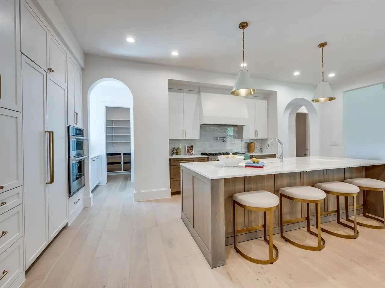 This beautiful new build offers 5 bedrooms, 4.5 baths, and 4,800 square feet of modern living with timeless style. Clean lines, black-framed windows, and wide-plank oak floors create a refined, sophisticated feel throughout. The family room features a vaulted ceiling, marble fireplace, and oversized glass doors opening to a covered patio with a second fireplace and a pool-ready landscaped backyard designed for privacy - perfect for seamless indoor-outdoor living. The chef’s kitchen includes a large marble island, custom cabinetry, and a tucked-away butler’s pantry with wine fridge, built-in cabinetry, and prep sink. The first-floor primary suite is a private retreat with a spa-style bath, dual vanities, a walk-through marble shower, and soaking tub. Upstairs are three ensuite bedrooms and a spacious flex room. Designer lighting, curated stone and tile, and custom millwork elevate every space. Located in sought-after Midway Hollow, one of Dallas most desirable neighborhoods, this residence offers thoughtful design, quality craftsmanship, and proximity to the city’s premier private schools, dining, and shopping.