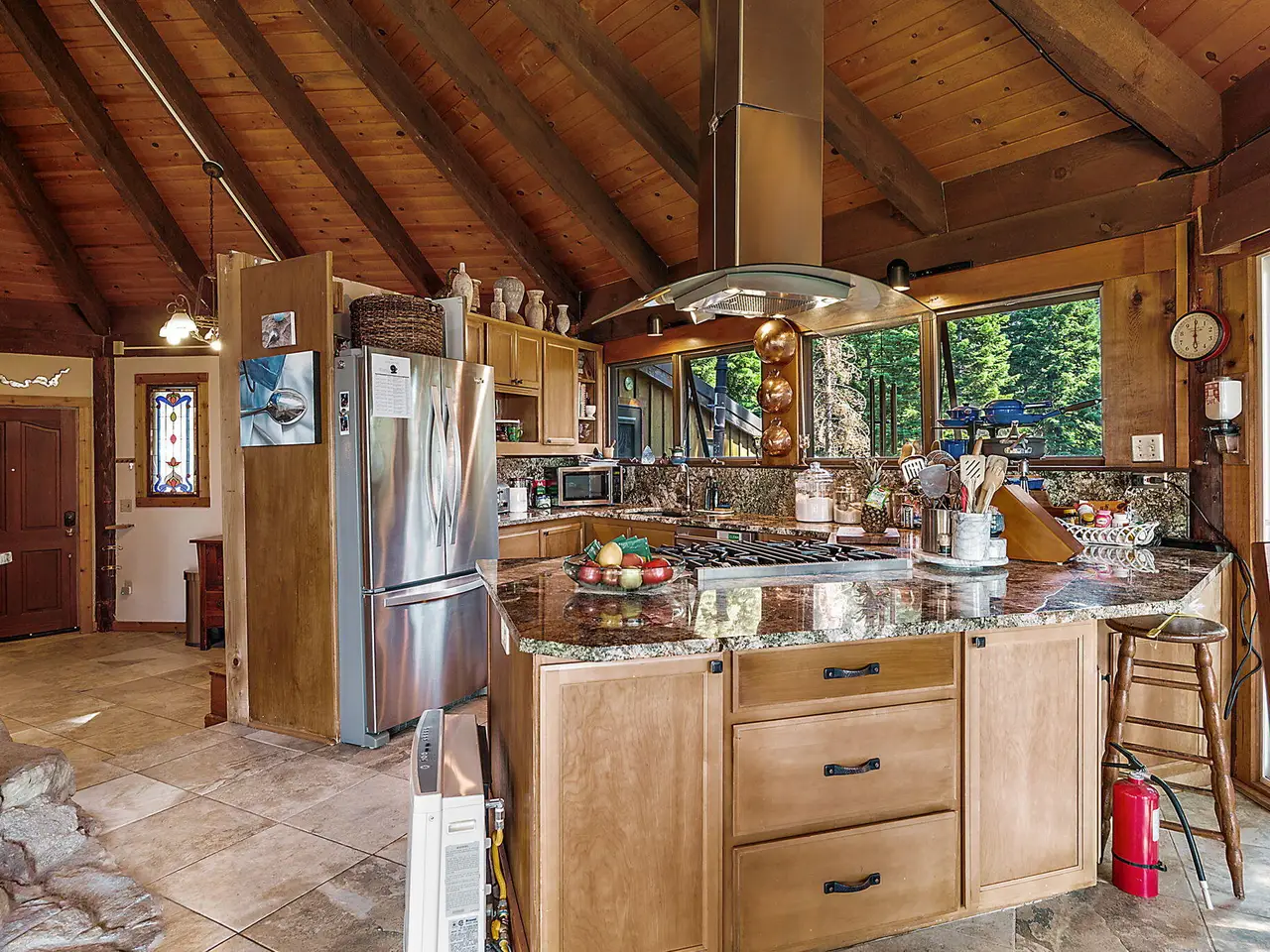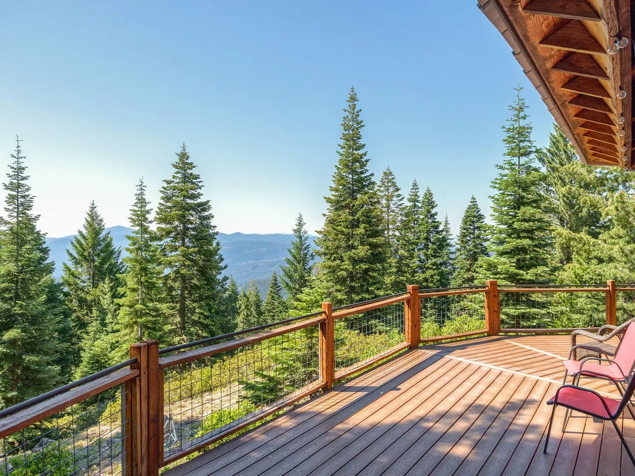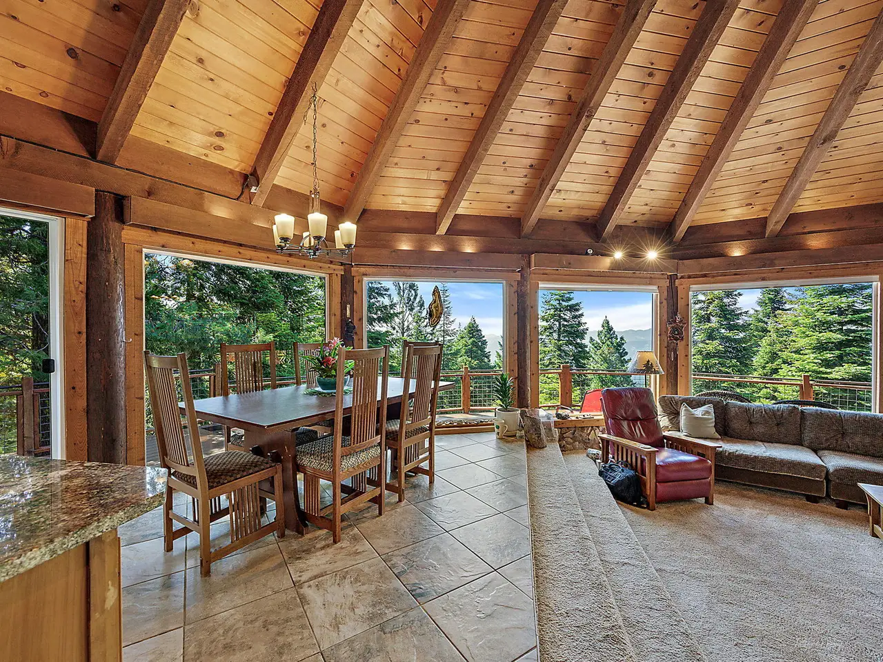Tranquil & pristine Mountain oasis on over 121 acres with a campground, marketable timber, green house, stream w/waterfall, springs and amazing scenic views of Mt Shasta & Pilot Rock. Amazing main home w/tile entry & stained-glass w/3 bedrooms, 2.5 baths, 2145 SQ FT with open beam vaulted ceilings in the great rm w/ huge stone staircase. Kitchen w/granite counters, tile floors opens to dining & great rm loft area. 2 primary suites overlooking the deck & creek. The other primary suite has a door to lg covered deck. Detached 2 car garage. Off grid secluded unpermitted cabin by waterfall and campground. Woodshed w/Japanese architectural elements, on-site fire suppression. Next to Forest Lands w/private hiking trails; Pacific Trail, wildlife, berries and mushroom hunting. Enjoy unobstructed star gazing, snow shoeing, sledding and more just 20 minutes from downtown Ashland. Owner will carry with 25% Down, 5% interest for 5 years w/Sellers approval of Buyer. Last house before the Lodge.