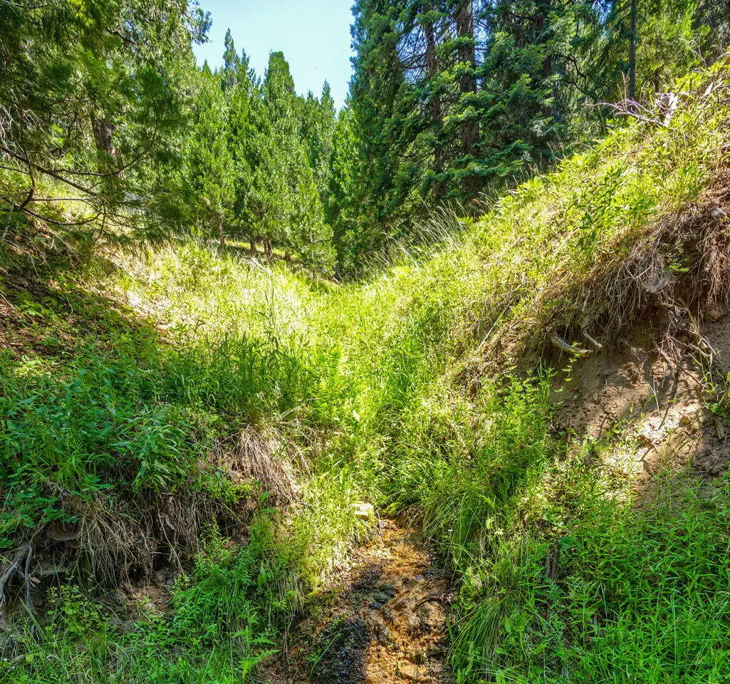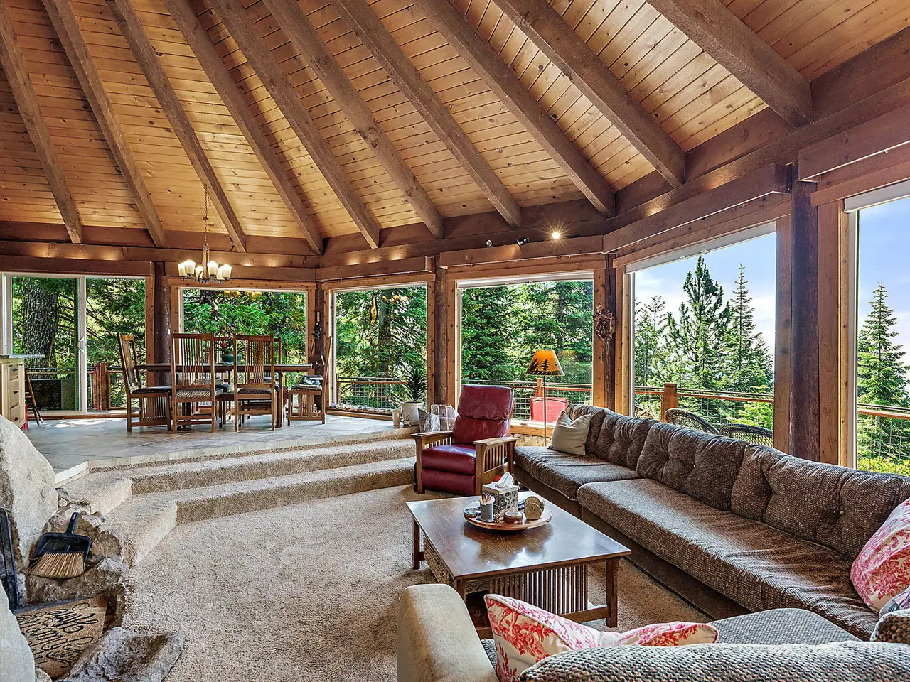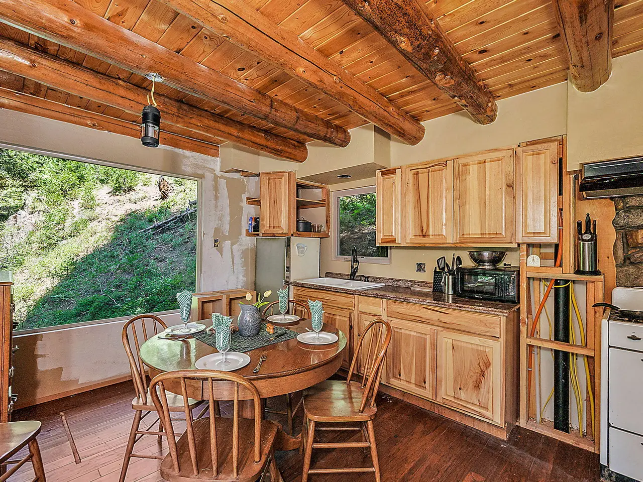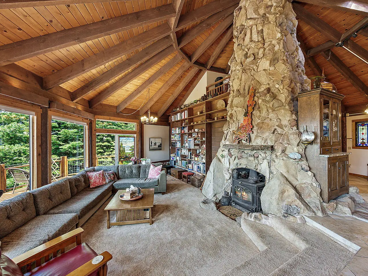 Tranquil & pristine Mountain oasis on over 121 acres with a campground, marketable timber, green house, stream w/waterfall, springs and amazing scenic views of Mt Shasta & Pilot Rock. Amazing main home w/tile entry & stained-glass w/3 bedrooms, 2.5 baths, 2145 SQ FT with open beam vaulted ceilings in the great rm w/ huge stone staircase. Kitchen w/granite counters, tile floors opens to dining & great rm loft area. 2 primary suites overlooking the deck & creek. The other primary suite has a door to lg covered deck. Detached 2 car garage. Off grid secluded unpermitted cabin by waterfall and campground. Woodshed w/Japanese architectural elements, on-site fire suppression. Next to Forest Lands w/private hiking trails; Pacific Trail, wildlife, berries and mushroom hunting. Enjoy unobstructed star gazing, snow shoeing, sledding and more just 20 minutes from downtown Ashland. Owner will carry with 25% Down, 5% interest for 5 years w/Sellers approval of Buyer. Last house before the Lodge.