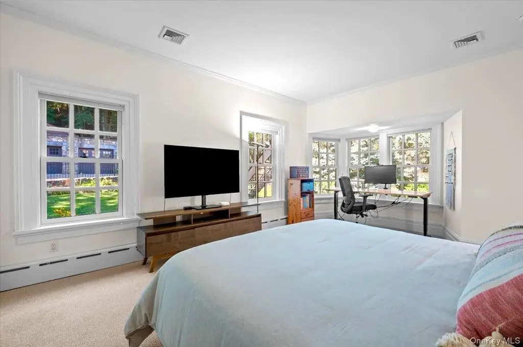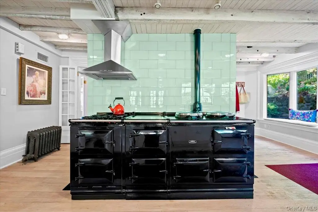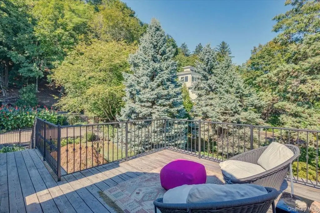 The Periwinkle House - River Views, History, and Soul. Set high above a lush, mature garden with sweeping views of the Hudson River and the bridge, The Periwinkle House is a one of-a-kind Greek Revival jewel - gracious, elegant, and with a great story. What began as a three-room cottage in 1794 grew over two centuries into the 5,016-square foot home standing today - a rare blend of old world craftsmanship and modern soulful luxury. Symmetry and charm define its facade while inside, original architectural details shine: intricate moldings, French doors, soaring ceilings, custom built-ins, cozy window seats, five wood-burning fireplaces, and beautiful wide-plank hardwood floors. The Chef's Kitchen is anchored by the legendary Aga stove, soapstone counters, and a butler's pantry, leading to a sun-splashed breakfast room with French doors which open onto the veranda and broad wraparound porch - perfect for slow mornings or lively summer nights. The formal dining room sets the stage for large gatherings or intimate evenings, and is complete with a built-in bar and a woodburning fireplace. The primary suite is pure serenity with panoramic river views, a huge woodburning fireplace, built-in window seats, a walk-in dressing room with laundry, and a Waterworks spa bath with soaking tub and glass shower. Two additional spacious bedrooms and another Waterworks bath complete the second floor. Upstairs, the third floor surprises with two more bedrooms, full bath, and a media lounge that opens onto a private terrace overlooking the back gardens. Out back, a heated gunite pool and spa are tucked into a fully fenced yard - your own private resort. A four-car garage plus a heated workshop adds flexibility for creatives or collectors, and the U-shaped driveway makes parking and entertaining effortless. Just 25 miles to midtown Manhattan and five minutes to Piermont's riverfront restaurants, cafes, and boutiques, the Periwinkle House balances history, luxury, and lifestyle in a way few homes ever do. This special home is a bridge between centuries. Award winning South Orangetown Schools . The new walking path behind the house links to the Old Erie Esposito Path .