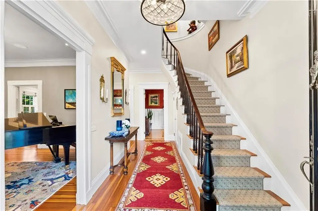 Welcome to the fabulous George F. Gladding House! Perched on one of the most prominent spots in Providence’s coveted College Hill neighborhood, this 1845 Greek Revival has been thoughtfully, and thoroughly, updated with an impeccable eye for detail, with gorgeous crown molding and built-ins, soaring ceilings, and tons of historic details – including 7 working fireplaces. From the main entrance, a stately front hall opens onto a front parlor and a private home office with a half bath. The spaciously redesigned living room, with a gas fireplace, wet bar, and fridge, opens to an elegant dining room. An adjacent sunroom offers a quiet retreat, and steps down onto a private, lusciously landscaped private courtyard patio and garden. The stunning eat-in kitchen features radiant-heated Spanish marble floors, high-end appliances, a breakfast nook, and a dedicated mud room. Upstairs, find two primary suites – the larger offering a fireplace, soaking tub, and radiant heat – plus two additional bedrooms, a family bath, and a laundry room. The third floor includes a private guest suite and additional office space. A new HVAC system with central air, as well as new insulation, adds year-round comfort. Located just around the corner from Prospect Terrace Park, and moments from Brown, RISD, and incredible Downtown and East Side shops and restaurants, this truly special home offers the ideal blend of historic charm and modern luxury living in one of Providence’s most desirable locations.