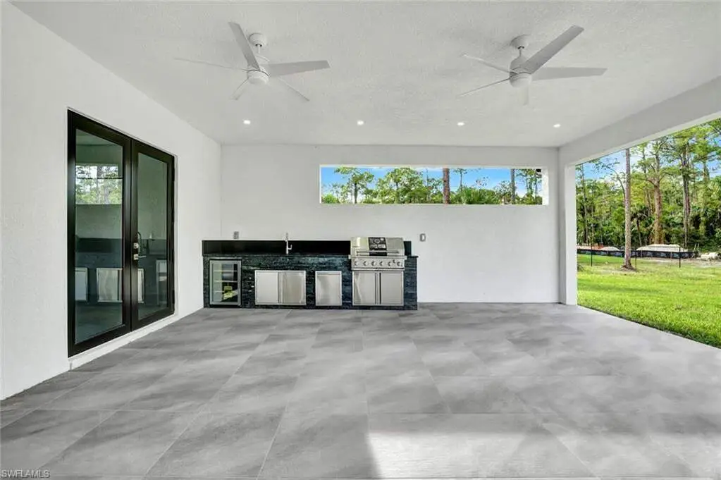 This property is 100% uplands and sits in an exceptionally prime location just off Wilson Boulevard. Surrounded by other beautiful homes, it offers the perfect setting to build your dream residence in one of the most desirable areas of Golden Gate Estates. Inside, the home showcases a stunning modern kitchen with sleek white upper cabinets and warm wood-tone lowers, creating a sophisticated two-tone design. Expansive quartz countertops with waterfall edges and a full-height designer backsplash add a touch of luxury, while the oversized island with a contemporary gold pull-down faucet blends style and function. High-end stainless steel appliances, recessed lighting, and a minimalist pendant fixture complete this bright, open space-perfect for everyday living and entertaining. The master bathroom is equally impressive, featuring floor-to-ceiling tile, a luxurious free-standing tub, and dual showers, creating a spa-like retreat within your own home. The home also boasts a huge outdoor lanai with a fully equipped outdoor kitchen, ideal for gatherings and enjoying the Florida lifestyle year-round. A thoughtfully designed residence that balances modern elegance with timeless comfort in an exceptional location.