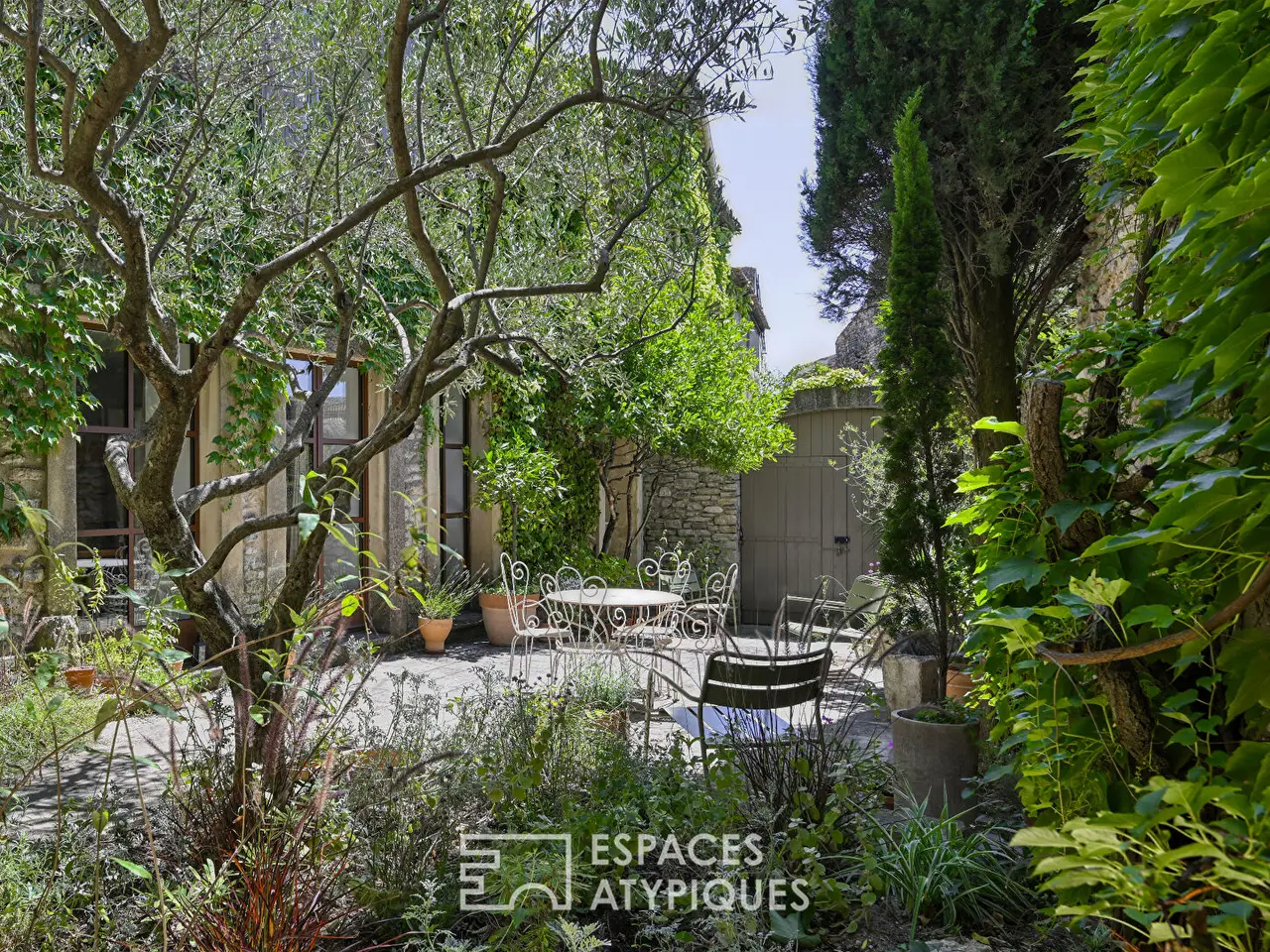Entering through a discreet alleyway is like stepping into a true Provencal haven where every detail tells a story. This little gem, both authentic and carefully renovated, spreads its bright and welcoming spaces over several levels, for a fulfilling family life or an exceptional second home. The modern kitchen, bathed in natural light, invites conviviality and sharing. The living room, the heart of the house, seduces with its antique fireplace decorated with a wood-burning stove, offering a warm atmosphere in all seasons. Large French windows open onto an intimate and peaceful garden, where stone and vegetation blend harmoniously, ready to accommodate a pond according to your desires. A cozy winter dining room completes this level, ideal for cozy evenings or a quiet office. The upper floor houses two beautiful suites of over 20 sqm, bright and comfortable, true havens of peace. On the top floor, the exceptional experience continues with a rare and enchanting living space: a vast master suite with a spacious bedroom, a TV lounge opening onto a Tropezian terrace with panoramic views over the village rooftops and the surrounding countryside. A separate spiral staircase leads to an adjoining room, now a library, which can be converted into a bedroom with bathroom and toilet. The latter benefits from independent access via a magnificent stone staircase served by the entrance hall, offering perfect autonomy and a unique charm. A separate workshop in a former barn completes this property, which can be converted into a garage, artist's studio, games room or leisure space depending on your plans. Finally, the ground floor includes a technical room dedicated to the central heating boiler and a small wine cellar, meeting the practical and technical needs of the house. This rare residence elegantly combines Provencal authenticity and contemporary requirements, ideal for peaceful village life or a charming residence in Provence. ENERGY CLASS: E CLIMATE CLASS: E Estimated average amount of annual energy expenditure for standard use, based on energy prices for the year 2023: between 3250 and 4250 euros Information on the risks to which this property is exposed is available on the Georisques website: www.georisques.gouv.fr REF. 950EAA Additional information * 6 rooms * 4 bedrooms * 1 bathroom * 2 shower rooms * Floor : 2 * 2 floors in the building * Outdoor space : 248 SQM * Parking : 2 parking spaces * Property tax : 2 407 € Energy Performance Certificate Primary energy consumption e : 204 kWh/m2.year High performance housing