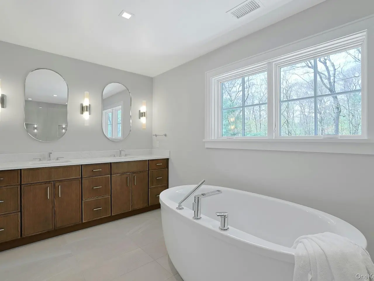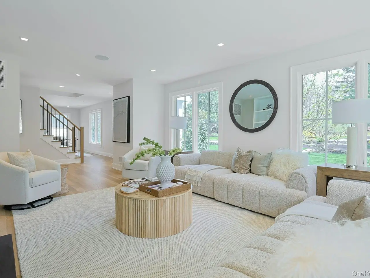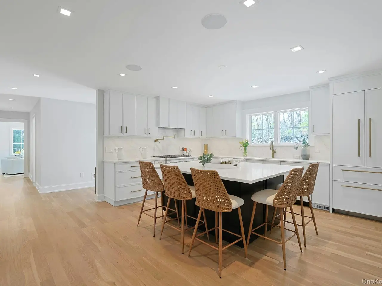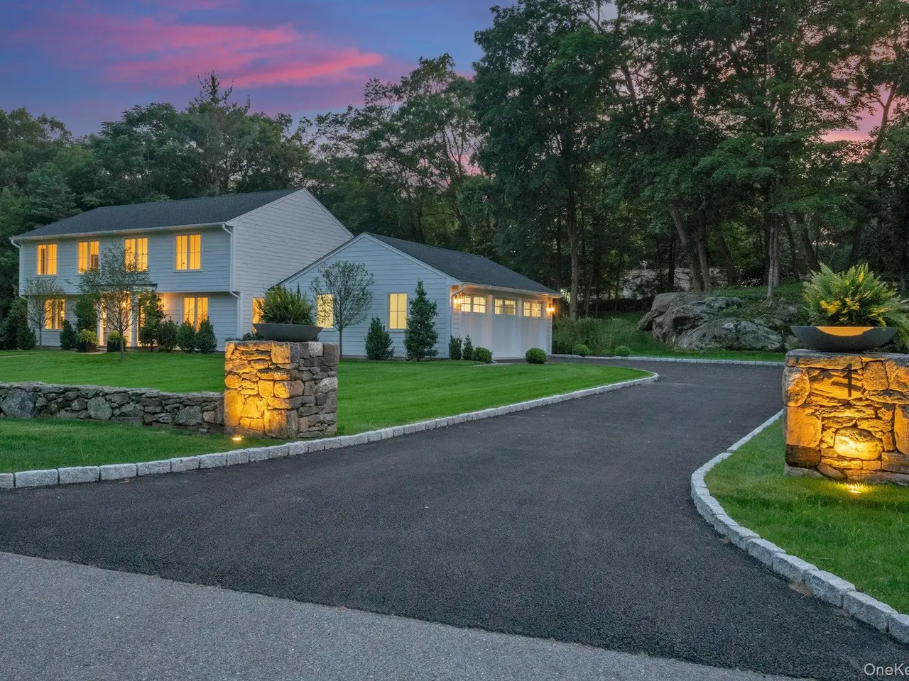 Elegant Colonial with Pool on Cul-de-Sac in Armonk (Byram Hills Schools) Located on a quiet cul-de-sac, this expanded and updated Colonial sits on a level, landscaped acre with a heated in-ground pool, stone patio, and fenced yard. Oversized windows fill the home with light, showcasing wide-plank wood floors and high-end finishes. The chef's kitchen features marble counters, custom cabinetry, and top appliances. The spacious primary suite includes a luxurious bath with radiant heat, soaking tub, and oversized shower. Lives like a 4-bedroom with a flexible first-floor guest room/office. Finished walk-out lower level (~950 sf) opens to the pool area. Approx. 3,800 sf above grade. Oversized 3-car garage, outfitted closets, and full-house Generac generator complete the package.