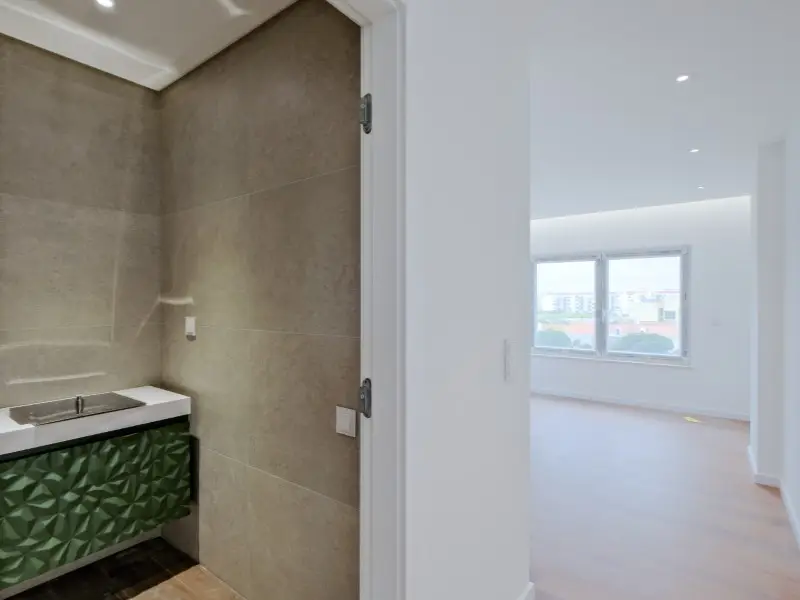 Located in a strategic area with easy access to main roads, shops, and essential services. This spacious apartment offers excellent natural light and generous areas. The living room with balcony is in open concept with a modern, fully equipped kitchen featuring built-in AEG appliances. Two suites—one with a private balcony and built-in wardrobe—plus two additional bedrooms with wardrobes (one with balcony access). Three bathrooms and high-quality finishes throughout. Comfort features include air conditioning in all rooms, central vacuum, reinforced thermal and acoustic insulation, wood-tone floating floors, and false ceilings with integrated LED lighting. The property includes a closed garage for two vehicles with an electric charging point. The condominium offers an outdoor pool with leisure area, a fully equipped gym, and a residents’ lounge. Solar panels support the building’s energy needs, ensuring sustainability and efficiency. This project stands out for its balance between location, innovation, and construction quality—ideal for those seeking tranquility without sacrificing proximity to Lisbon (15 minutes) and all urban conveniences. Living at Garça Real means being minutes from Lisbon via Vasco da Gama Bridge, close to schools, shops, services, and leisure areas, as well as the future airport—offering unmatched centrality and excellent investment potential. A project that values well-being, sustainability, and contemporary design. Energy Rating: A #ref: ORIAPRO4585