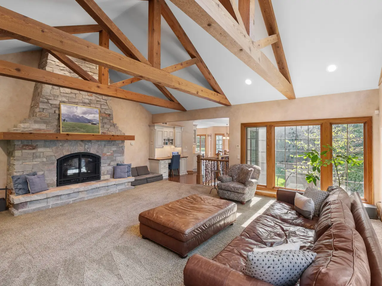 This owner has cared extensively for this quality craft-built home. Rare to find features: striking stone entry, gorgeous stone fireplaces, curved staircase, gables, walls of light filled windows, unparalleled Ann Sacks tile + beamed, wooded, vaulted, & tray ceilings throughout. Walking in is like a magazine! You'll love the design, the feel in the sunroom, the space, gourmet kitchen, architecture, screened porch, multi-level decking, brick patio, mature landscape, motif, and how it's set magnificently on a .9 acre wooded lot. Privacy w/ conservation behind + a short walk to the Pigeon River or pathway to Pine Hills Country Club/Golf. Please call for a showing & list of recent upgrades not limited to roof, skylights, gutters, hardwoods, Wolf/Bosch/Sub-Zero appliances, new bedroom & MORE!!