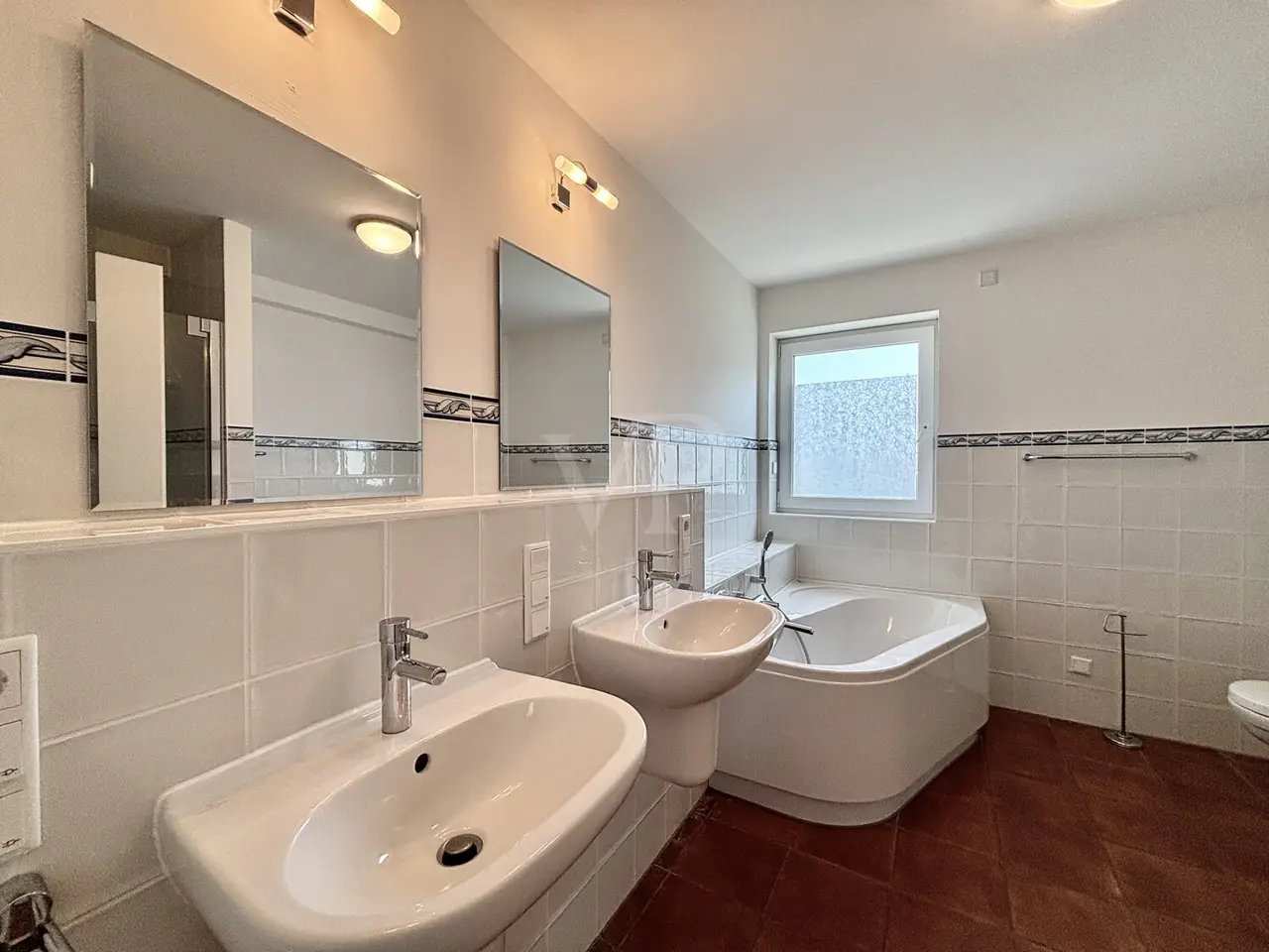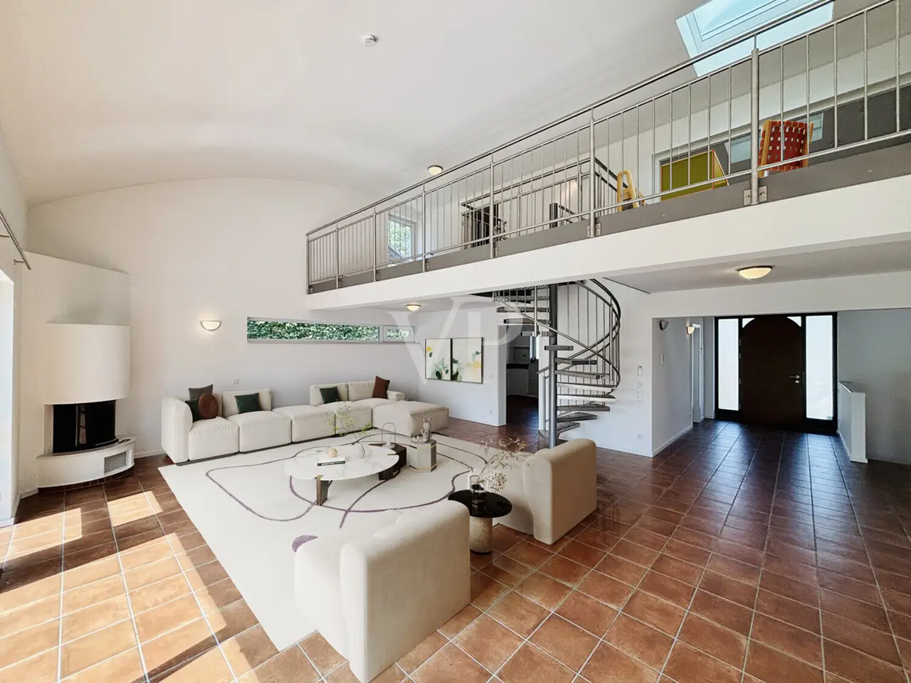This spacious detached house from 2016 is located in a sought-after and absolutely quiet residential area and impresses with its well thought-out room layout and high-quality furnishings. Upon entering, the house opens into a spacious hallway with a characterful wooden entrance door, which gives a first impression of the inviting atmosphere. The warm floor tiles from Italy give the house a Mediterranean character. A total of seven well-proportioned rooms are spread over two living levels and a gallery. The large living and dining area benefits from generous window fronts that offer a pleasant view and plenty of natural light. The large eat-in kitchen and the bathrooms are decorated with Portuguese tiles and, in combination with the stylish terracotta-look tiles throughout the house, create a harmonious overall picture. The property has four bedrooms, which can be used flexibly as children's rooms, guest rooms or studies. Three stylishly designed bathrooms, each equipped with high-quality fittings and sanitary facilities, underline the contemporary comfort. Together with the architect, the owners have chosen a very modern roof shape that continues the Mediterranean lifestyle with its organic form. The gallery floor offers open living space, e.g. for a library, and two large storage rooms. In terms of technical equipment, the house meets high standards. Large external roller blinds and venetian blinds on the windows provide a wide range of options for regulating the light and ensuring privacy. The spacious garden provides room for leisure and relaxation. The well-kept overall appearance of the house is reflected both inside and outside. In addition to the comprehensive furnishings, practical features such as ample parking space, spacious storage rooms and a well thought-out floor plan are further advantages. Built as a detached house in the year of construction, the property is currently used as a granny apartment. Only one door is closed or reopened for this purpose. This dual use can be seen as an absolute added value. Bella Figura - Mediterranean flair meets spacious living.