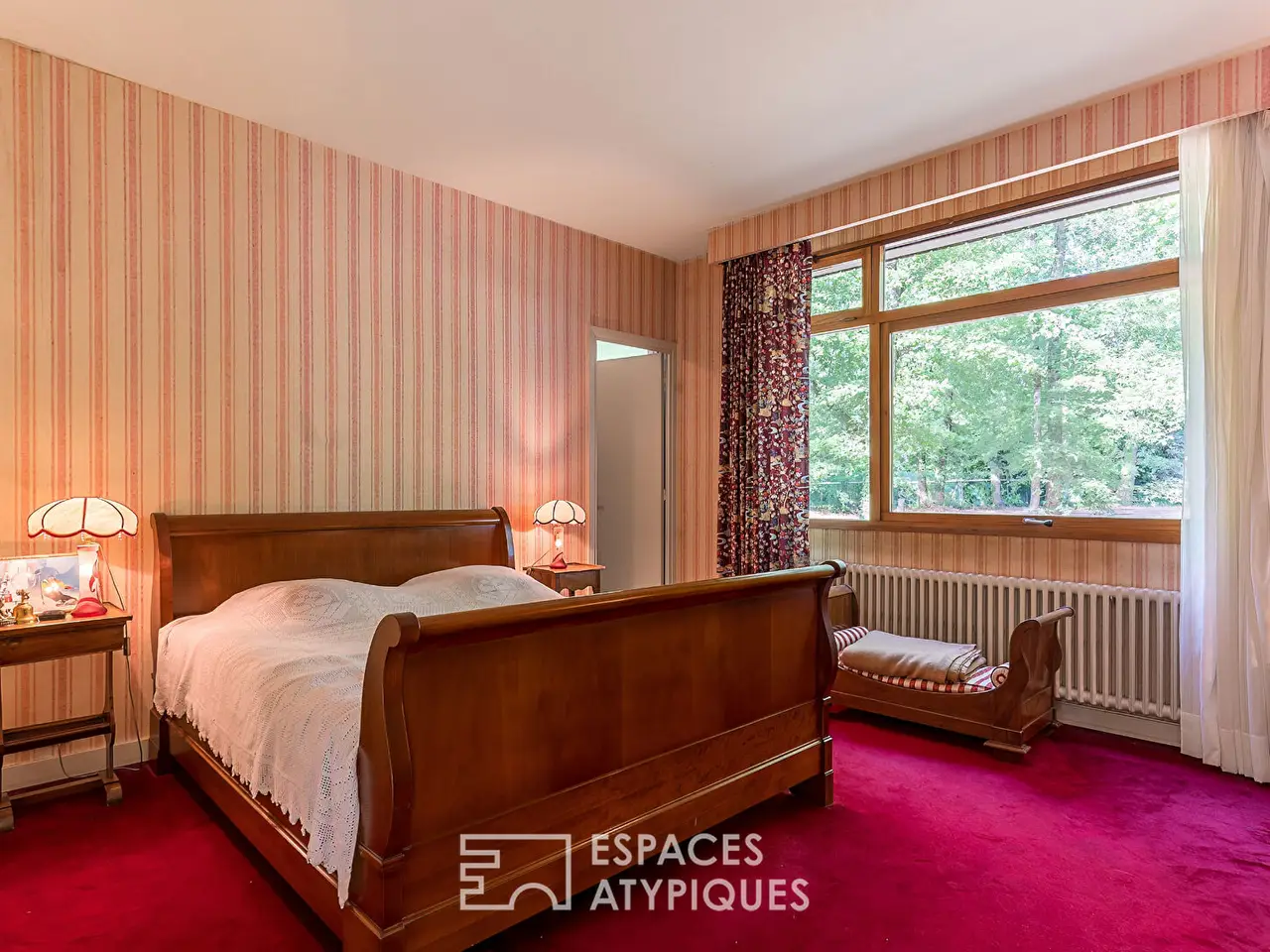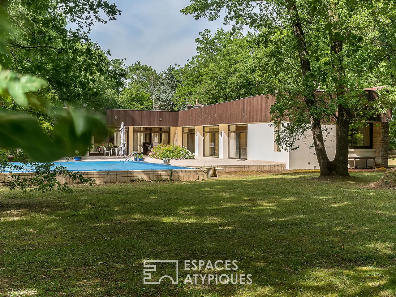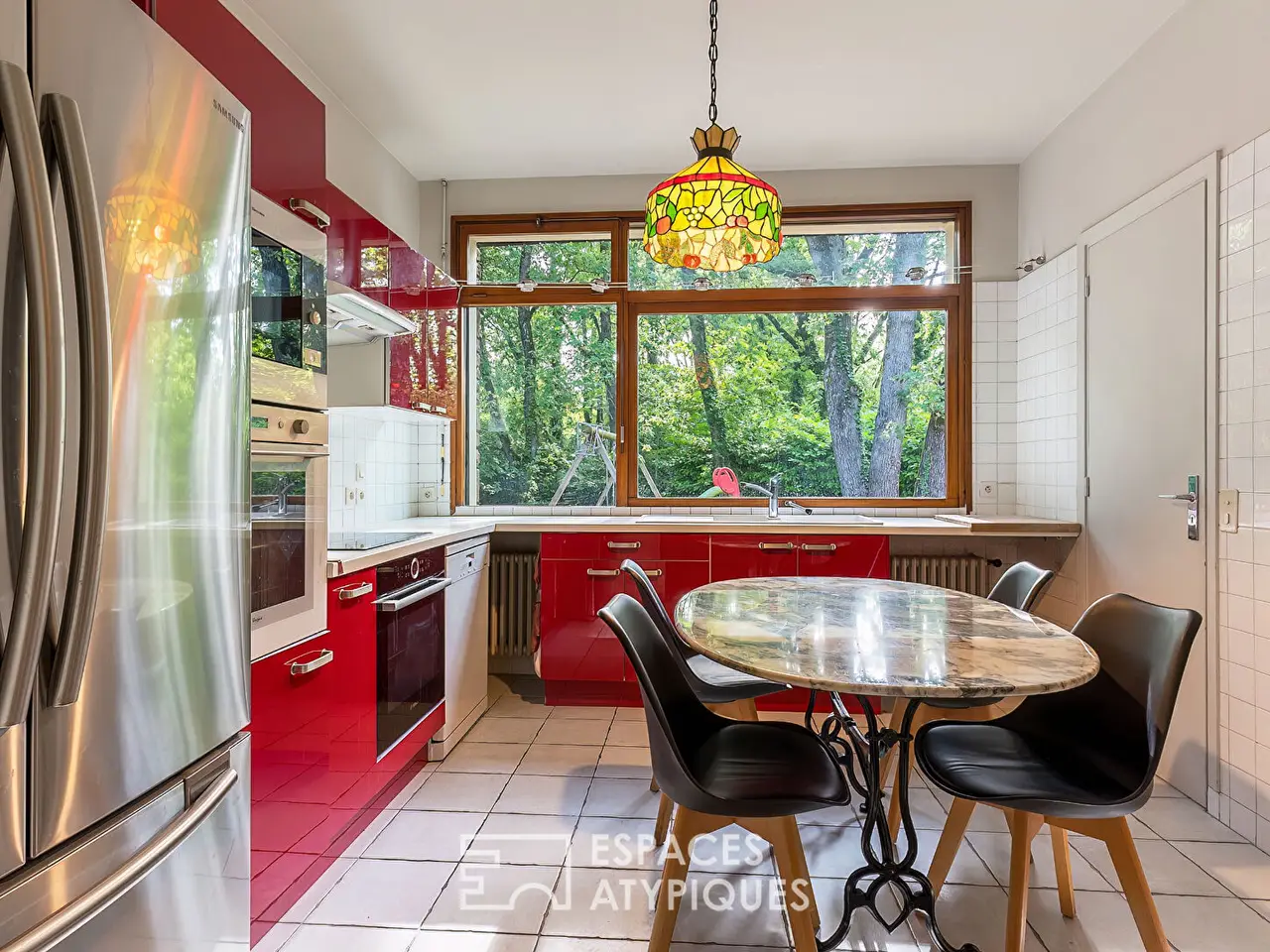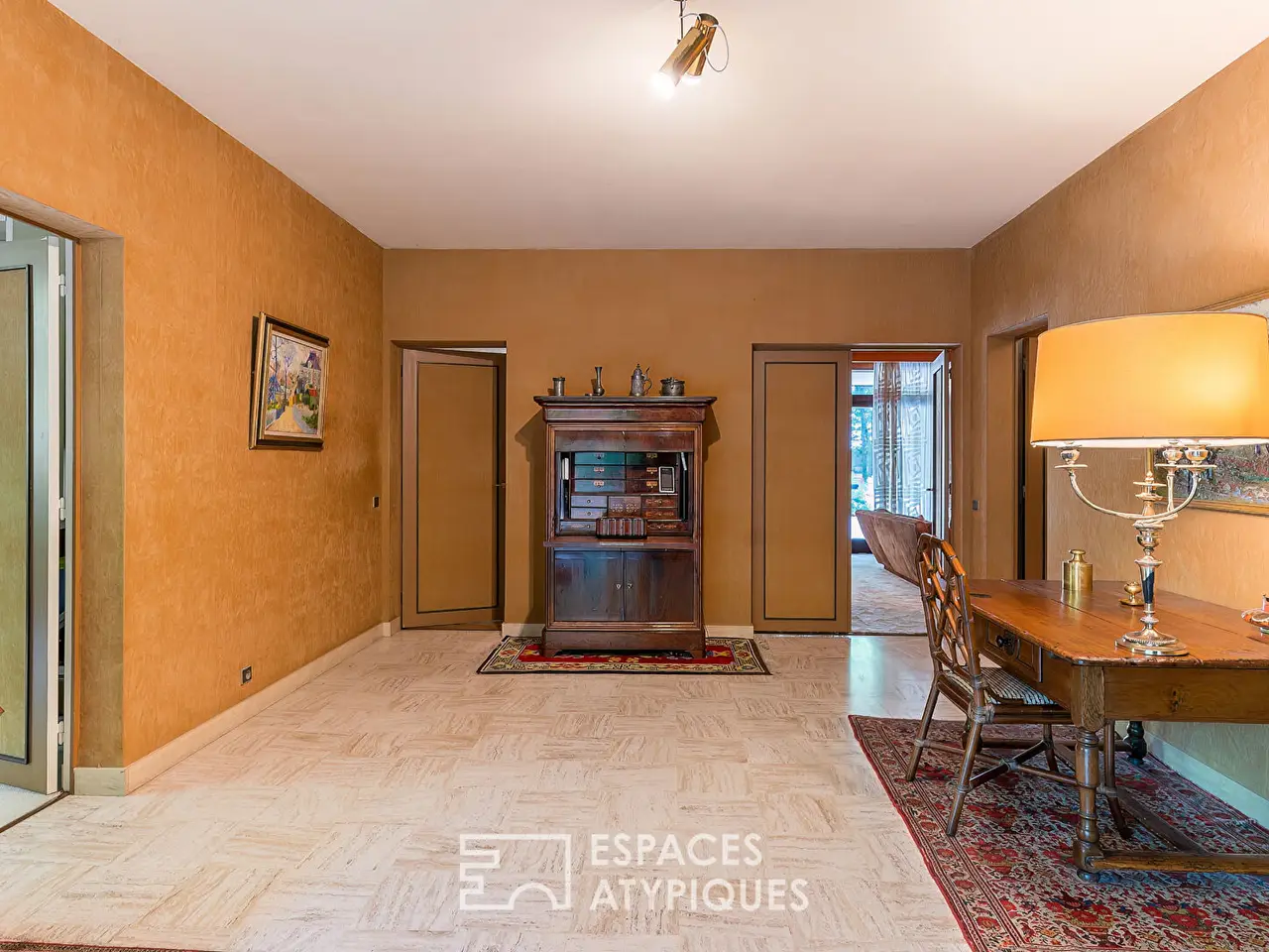 Volumes, patio, 200 m2 terrace and swimming pool in the heart of a park on the outskirts of ValenceIn Montelier, in an exceptional natural setting just a few minutes from Valence, this architect-designed villa built in 1965 offers almost 320 m2 of living space set in over 8,000 m2 of wooded parkland. A rare property with modernist architecture, designed as a permanent dialogue between inside and outside.From the moment you arrive, you'll be charmed. A private driveway winds through the garden to the villa, then guides you to a majestic wooden door adorned with a lion's head knocker, a theatrical nod to the house's self-assured elegance. Once you've crossed the threshold, you'll discover a vast entrance hall leading to the light-filled living spaces.The living room with fireplace and dining room open out generously onto the main terrace of almost 200 m2, a veritable open-air living space. Sheltered from view, it offers uninterrupted views over the garden and gives access to a 17 x 8 metre masonry swimming pool, ideal for cooling off or basking in the sun. All this in a lush green setting punctuated by mature trees, clearings and discreetly lit paths.The independent, convivial kitchen is extended by a storeroom and a laundry room, a real light room, rare for a laundry room! The night space comprises a master suite with fireplace, bathroom and dressing room, three other bedrooms, two with en suite bathrooms, a study, a shower room and several storage areas.The house rests on a full basement that includes a garage, cellar, workshop and utility rooms. Indoor comfort is ensured by a mixed heating system (boiler, air blowing, air conditioning).Outside, an old tennis court is waiting to be put back into play, in a garden that has nothing to envy a small estate. All of which invites you to relax, be creative and enjoy a life close to nature, without having to sacrifice proximity to amenities.Schools, shops, market, community life: Montelier offers a perfect balance between rural serenity and urban connections, with Valence TGV train station just 15 minutes away.REF. 542DAAdditional information* 9 rooms* 5 bedrooms* 3 bathrooms* 2 shower rooms* Outdoor space : 9440 SQM* Property tax : 5 350 €Energy Performance CertificatePrimary energy consumptiond : 248 kWh/m2.yearHigh performance housing*A*B*C*248kWh/m2.year34*kg CO2/m2.yearD*E*F*GExtremely poor housing performance* Of which greenhouse gas emissionsd : 34 kg CO2/m2.yearLow CO2 emissions*A*B*C*34kg CO2/m2.yearD*E*F*GVery high CO2 emissionsEstimated average annual energy costs for standard use, indexed to specific years 2021, 2022, 2023 : between 7290 € and 9930 € Subscription IncludedAgency feesThe fees include VAT and are payable by the vendorMediatorMediation Franchise-Consommateurswww.mediation-franchise.com29 Boulevard de Courcelles 75008 ParisInformation on the risks to which this property is exposed is available on the Geohazards website : www.georisques.gouv.fr
