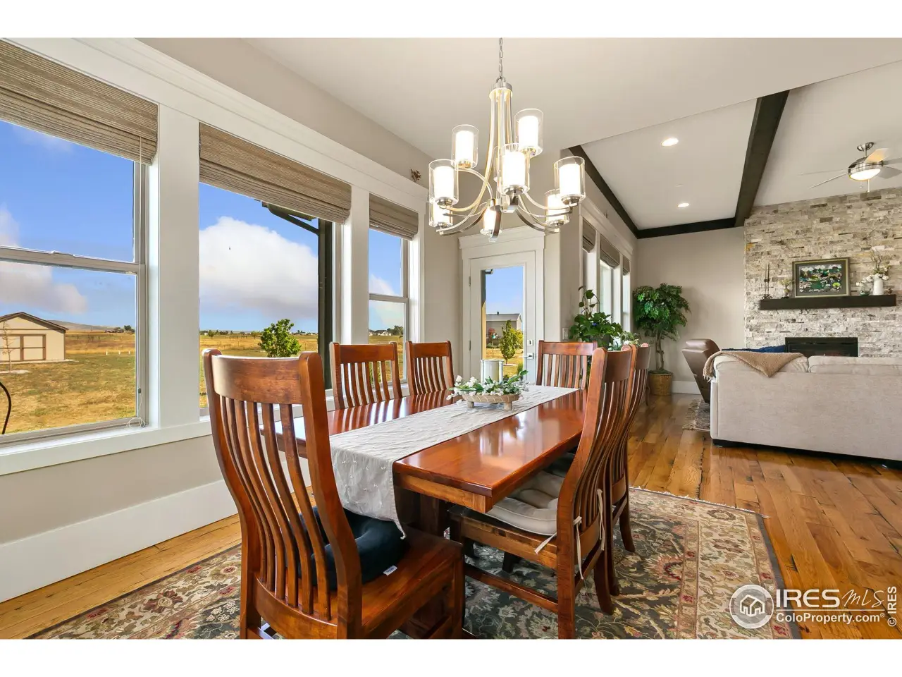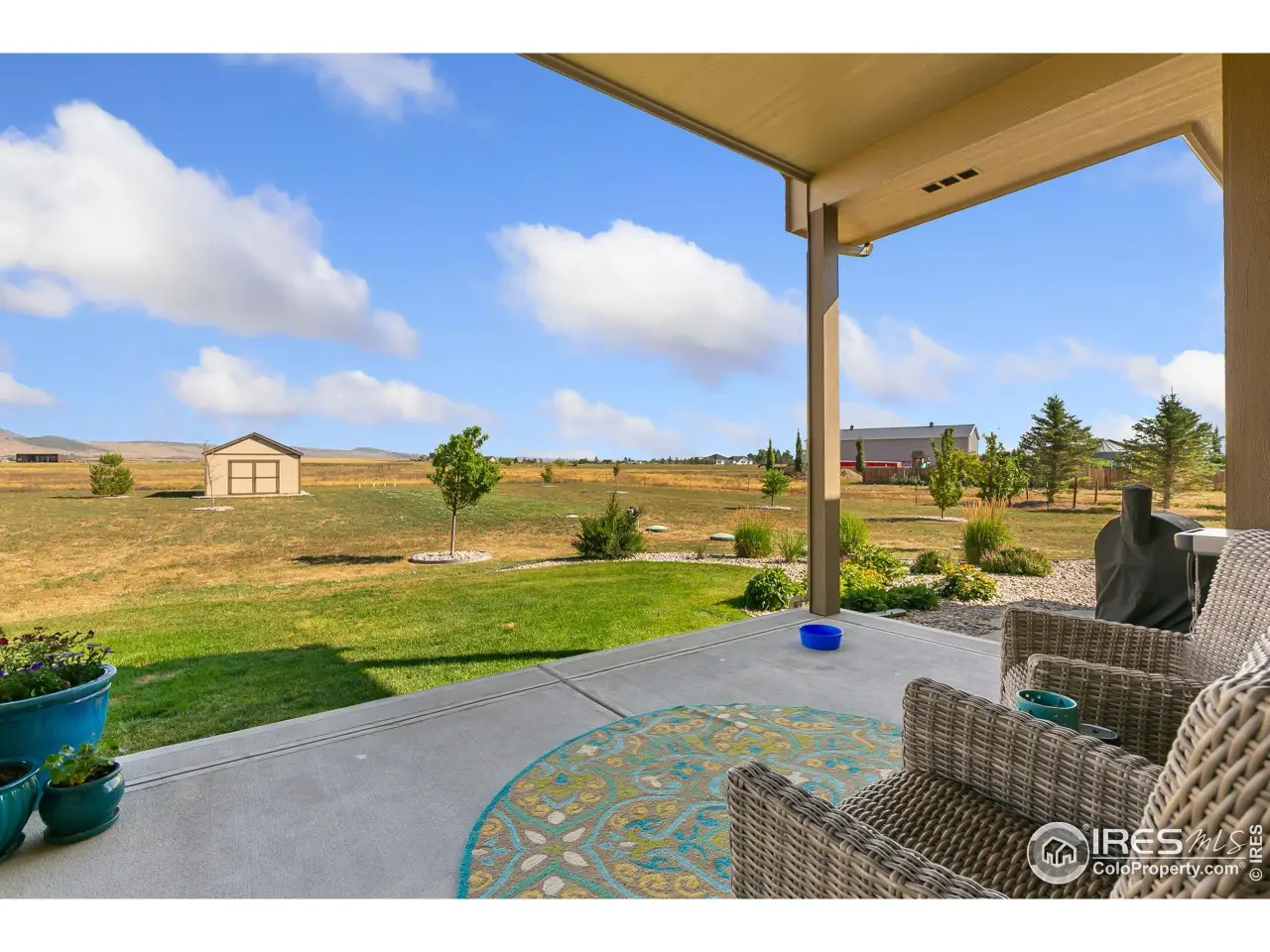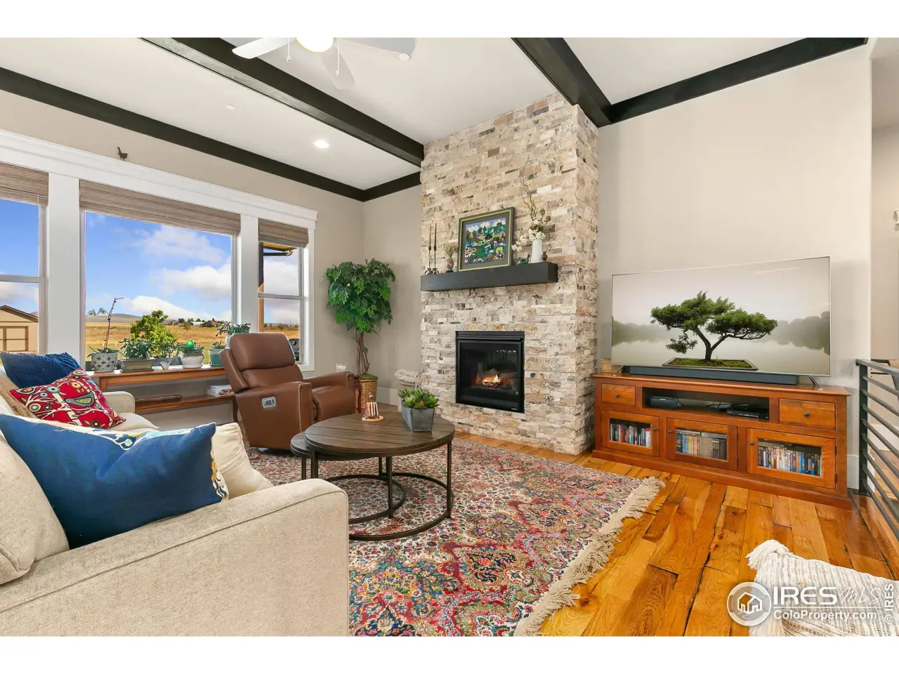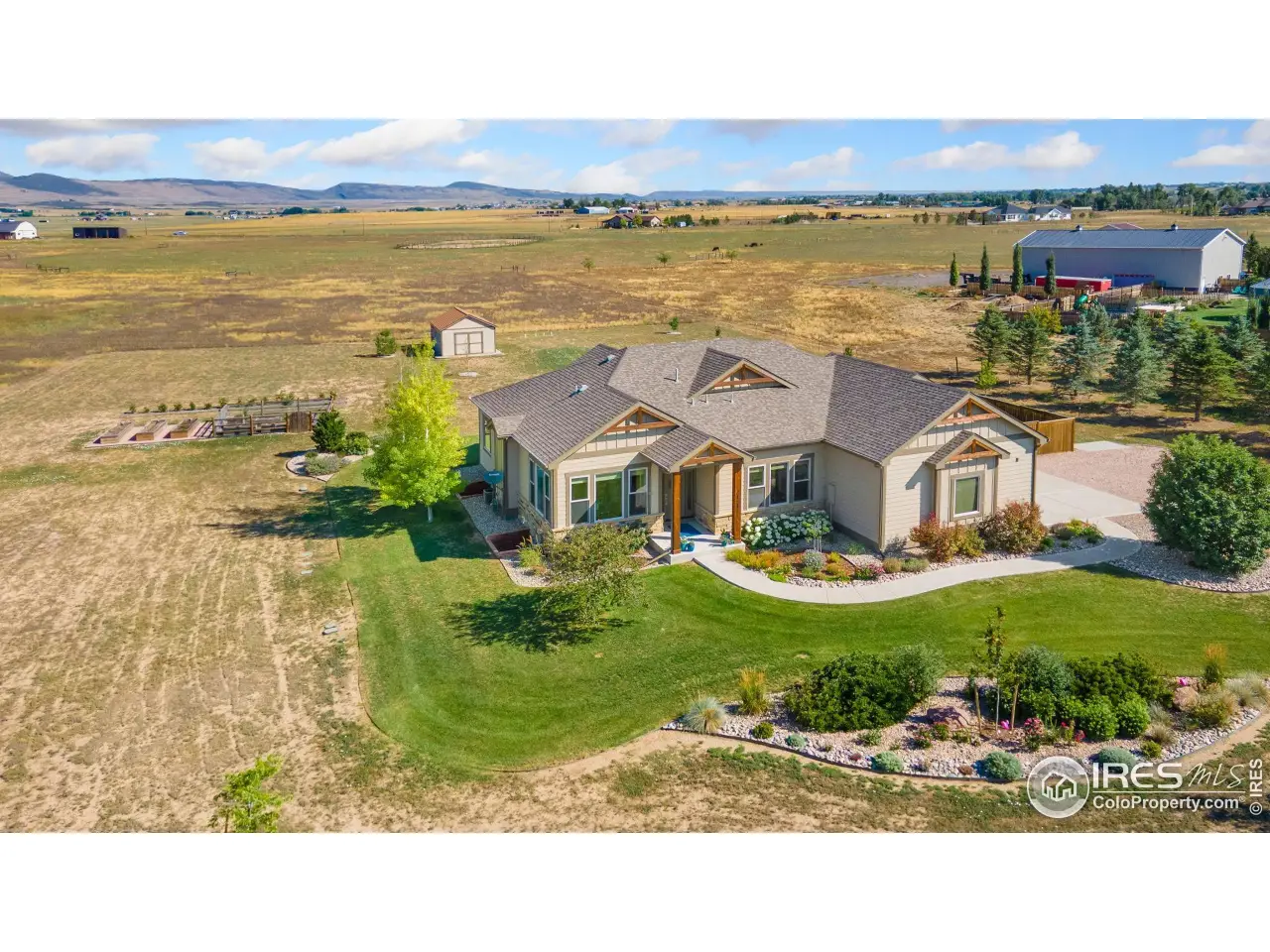 Stunning custom ranch offers the perfect blend of tranquility, luxury, and convenience located just 10 minutes from Old Town. Situated on 5 acres in Scenic Ranch Estates - a private, 200-acre planned community with riding trails, a horse arena, and the flexibility for outbuildings and farm animals, with an HOA-approved pasture plan - this home is an ideal retreat for those seeking space and serenity. Inside, an inviting open floor plan showcases rich hickory floors with a striking ebonized finish and custom millwork windows that flood the home with natural light while capturing breathtaking mountain views. The gourmet kitchen is a true centerpiece, featuring granite countertops, a large island, 5-burner gas cooktop, double ovens, a professional-grade side-by-side refrigerator and freezer, and a spacious walk-in pantry. The adjoining great room impresses with a beamed ceiling and an eye-catching stone gas fireplace, while the generous dining area flows seamlessly to the backyard, enhancing the indoor-outdoor connection. The expansive primary suite offers a spa-like bath with a floating double vanity, soaking tub, dual-head shower, and private water closet. For added convenience, the large walk-in closet connects directly to the laundry room. Two additional bedrooms, a full bath, and a powder room for guests complete the main level. Outside, the backyard features a covered patio, raised garden beds with full irrigation, and a garden shed. For dog lovers there is an electronic dog fence and RFID controlled door from the laundry room to the spacious fenced dog run. The oversized 3-car garage with epoxy floors offers excellent storage, while the full unfinished basement - complete with four egress windows and a plumbing rough-in - provides endless options for expansion. No metro district. Property has been Pre-Inspected and includes a one-year First American Home Warranty for added peace of mind.