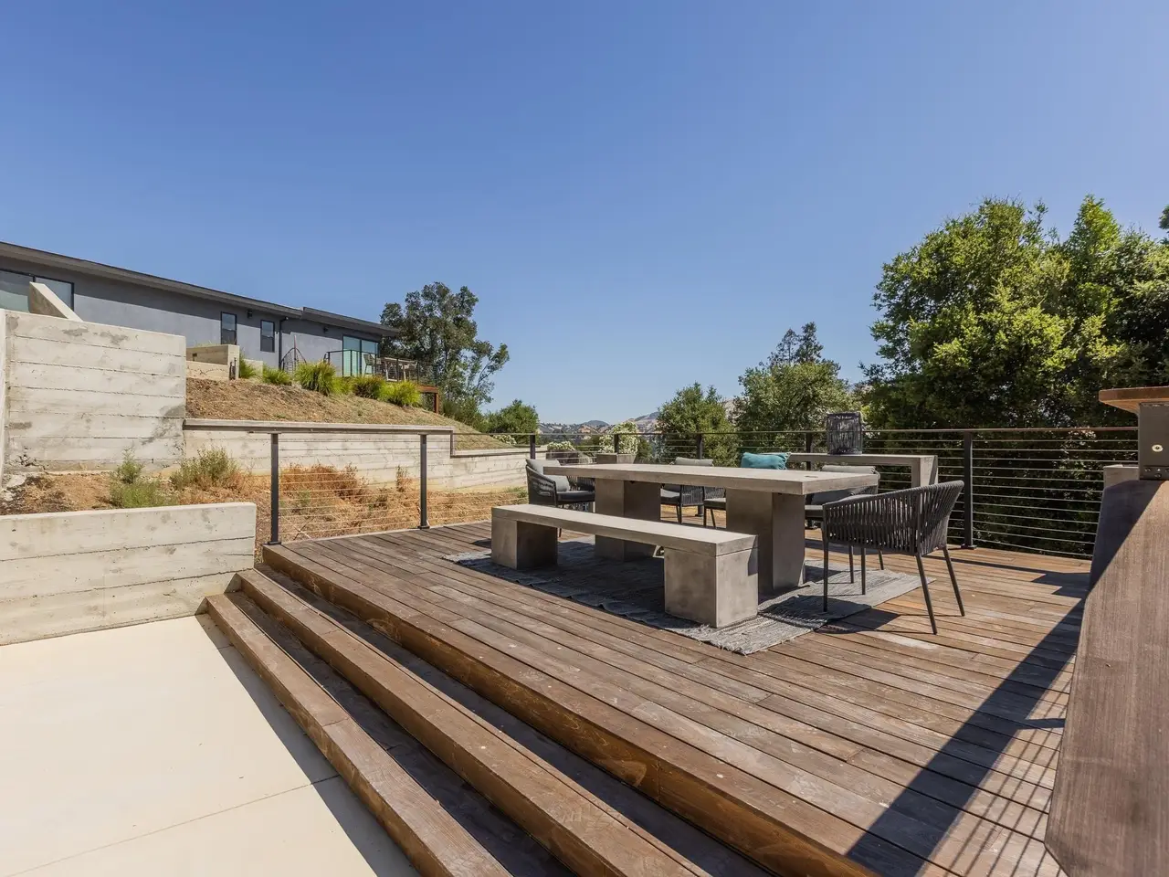 Experience elevated living in this stunning, fully rebuilt modern home on Danville’s coveted Westside. Located in the exclusive Sky Terrace community, this rare 1.4+ acre property offers panoramic views of Mount Diablo and seamless indoor-outdoor living through La Cantina doors that open to a spacious deck. The open-concept floor plan features high-end modern finishes throughout, including wide-plank hardwood flooring, marble tile bathrooms, sleek Euro-style cabinetry, and natural Quartzite countertops with a waterfall island and glass-beveled backsplash. A chef’s kitchen showcases top-tier appliances, including a premium Sub-Zero refrigerator, 48" professional cooktop with griddle, smart double ovens, and a built-in drawer microwave. The primary suite offers breathtaking views and direct access to the deck. One of the four bedrooms has been transformed into a custom walk-in closet by Valet Cabinets, perfect for a fashion-forward lifestyle. All bedrooms, including the luxurious primary suite, are conveniently located off a single hallway for ideal flow and functionality. Step outside to a fully hardscaped backyard oasis complete with an infinity-edge pool, custom outdoor furnishings from Terra (most included in sale), and multiple gathering spaces designed for both !