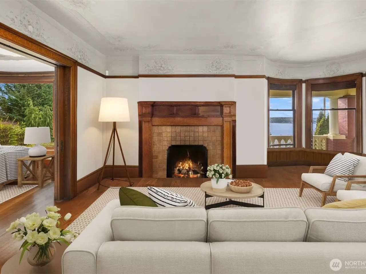 Experience elevated city living in this masterfully restored Craftsman, where timeless architecture and elegant style meet contemporary luxury. Perched above Elliott Bay with commanding views of the Space Needle, Mt. Rainier, and the Olympic Mountains, this home offers an unforgettable backdrop from nearly every room. Four expansive levels flow effortlessly with open living spaces, a gourmet chef's kitchen, and flexible layouts for work, play, and relaxation. Step outside to lush gardens, grassy level lawns, sun-drenched patios, and covered terraces designed for year-round enjoyment. Private yet perfectly positioned to take advantage of Seattle's best dining, arts, events, shopping and outdoor recreation - the best of refined living!