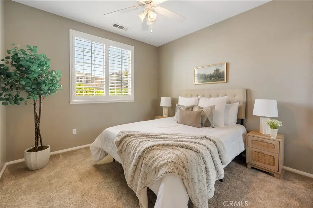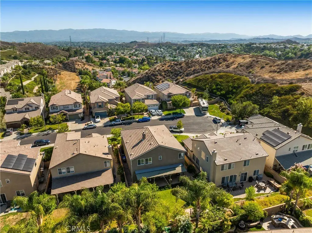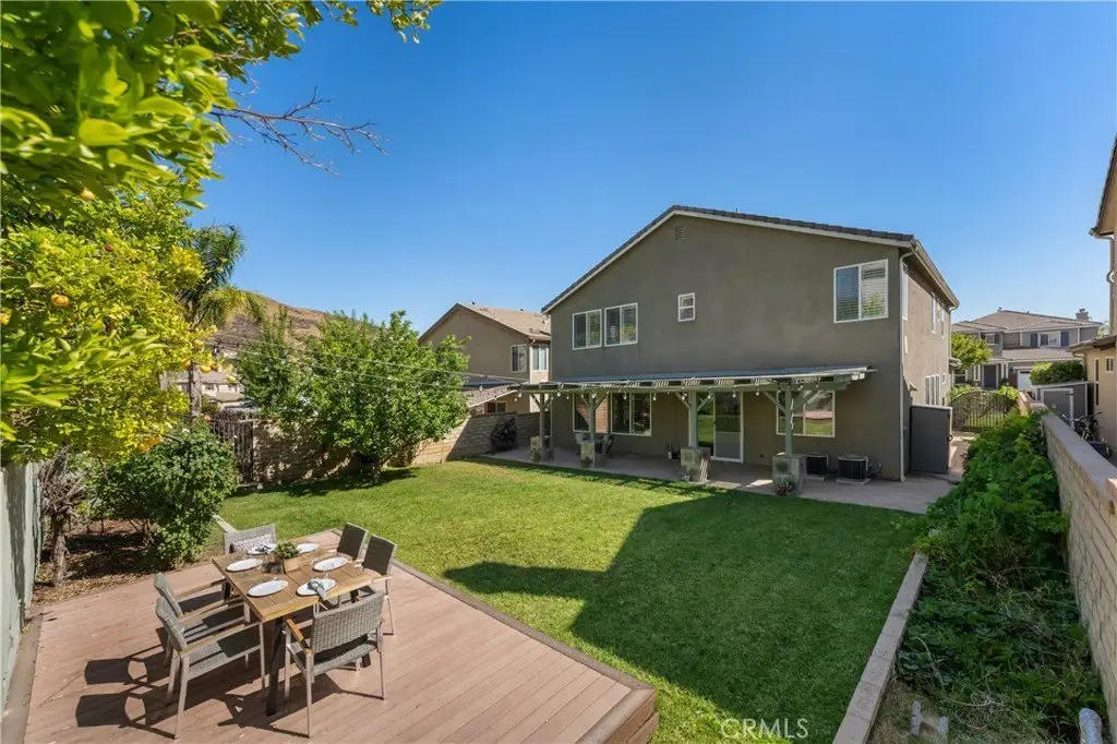 Welcome to this beautifully maintained 6-bedroom, 4.5-bathroom home tucked away in a quiet cul-de-sac in one of Santa Clarita’s most desirable neighborhoods. Designed with both comfort and functionality in mind, this spacious home features hardwood floors, tile, and elegant shutters throughout the first level. The main floor includes a full bedroom and bathroom — perfect for guests or a Mother in law suite! — plus a convenient half bath for visitors. Upstairs, you'll find four generously sized bedrooms connected by Jack and Jill bathrooms, a loft, and a dedicated laundry room. The luxurious primary suite offers a retreat-like experience with a massive en-suite bathroom and dual walk-in closets. Additional highlights include a 3-car garage, tankless water heater, and a whole house fan. The backyard is a true oasis, featuring a lush garden with an impressive variety of fruit trees and vines — including figs, apples, lemons, blackberries, strawberries, and grapes. Located within a top-rated school district, this home offers a perfect setting for family living in a safe, vibrant community. NO MELLO-ROOS! A rare gem — come see it for yourself!