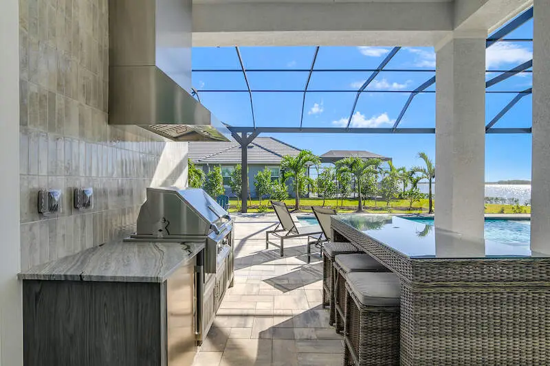 At WildBlue in Lakewood Ranch you'll find yourself in the newest and most desired community in Sarasota County. Rated the top master planned community in the United States, this luxury home has it all to begin TURNKEY!!! Introducing this exceptional lakefront property in the coveted city of Lakewood Ranch, boasting a wealth of community amenities including 6 tennis courts, 8 pickleball courts, a children's playground, wetland overlook and boardwalk, dog park, event lawn basketball court, dock/kayak launch, and picnic areas with grilling stations and much more. This stunning home offers unparalleled outdoor experiences, with a pool, spa, outdoor kitchen, and fireplace all overlooking the serene lake views from the expansive patio and screened lanai. NEWLY CONSTRUCTED futures exclusive interior design elements, modern/contemporary style furnishing, luxury kitchen features, elegant bathroom features and more. OPEN concept living/dining, ceramic tile flooring, stainless steel appliances, quartz counter tops, pantry, walking closets, his and hers vanities, a modern self-standing bathtub. Gorgeous outdoor living invites you to enjoy unforgettable views, prepare the ideal meal in well appointed outdoor kitchen, to enjoy beautiful sunrises and immerse yourself in salt water infinity pool or spa. Tankless water heater, three-car garage, pre-wired automation system, impact resistant windows/doors, laundry in the residence. The kitchen features top-of-the-line stainless steel appliances, JennAir stove top, and white cap and winter maple colored cabinets, complemented by a wine cooler and outdoor grill by ASPIRE by HESTAN. Fantastic location with close proximity to restaurants, shops, golf, pickleball, and I-75 you'll find this to be your dream home. Nearby to Siesta Key Beach, Ana Maria Island, and Longboat Key further elevate this property, making it a true treasure for discerning buyers seeking the ultimate Florida lifestyle.