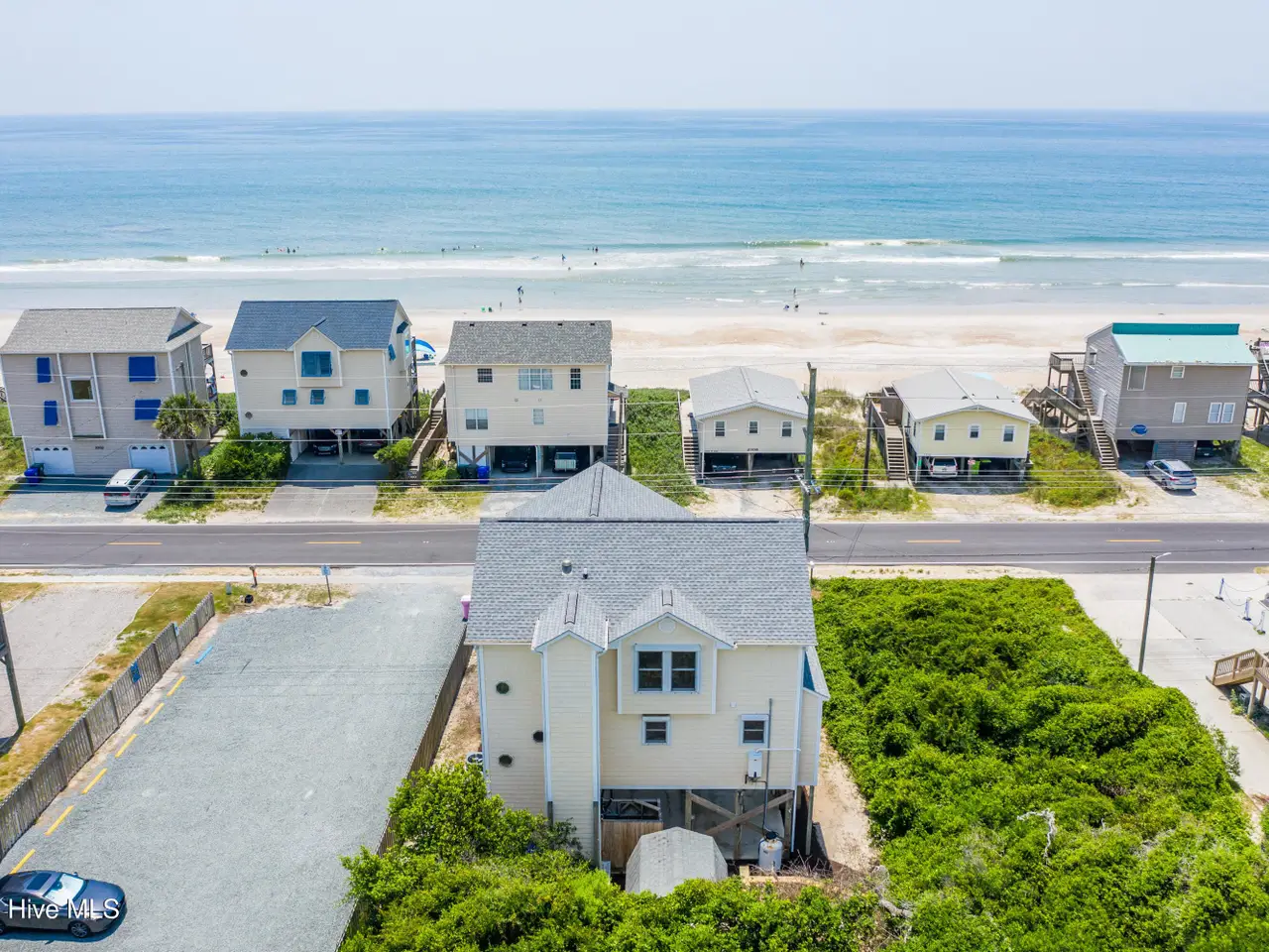 Second row home with ocean and sound views, an elevator and private beach access. A total of 4 bedrooms and 3 full baths featuring an updated gourmet kitchen (2024) with quartz countertops and new KitchenAid appliances, a open living area with lots of windows and a covered deck on oceanside for maximum ocean views and wave watching in any weather. The dining area has water views of the sound for scenic sunset dinners. A bedroom and adjoining full bath has ocean views and access to the top floor oceanside deck as well and completes the top floor of this well maintained home. First living level has 2 guest bedrooms both with access to another oceanside deck and share a full bath in the hallway. An in-suite Master bedroom featuring spacious bath with separate shower and a large tub. Master has access to the partially covered oceanside deck great for rainy day reading. The ground level entry has been renovated to include an interior foyer, storage room with extra refrigerator and the added elevator for convenience. Extras include a central Vacuum system, storm shutters and solar film on upper floor windows. Outside there's a large storage shed, an hot and cold outside shower, and even a small enclosed dog yard for the pups. Private deeded beach access is shared with a neighbor and is just across the street.