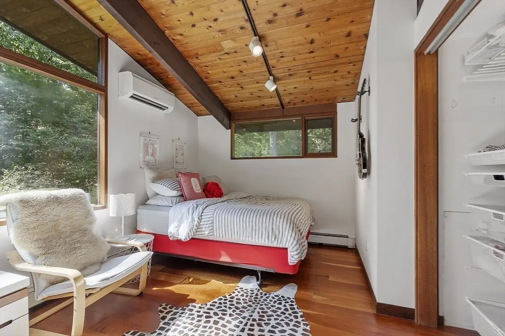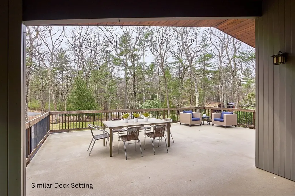 Tucked away in a serene natural setting, this contemporary 4-bedroom, 2-bath deck house is privately set on over 6 acres offers the perfect blend of modern design and tranquil living. Flooded with natural light, the open-concept first floor showcases soaring ceilings, warm wood accents, and expansive windows. A sunroom off the oversized deck provides a seamless space for entertaining, while the balcony offers peaceful views of the lush yard belowùperfect for morning coffee or quiet evenings. The chef's kitchen is a true centerpiece, featuring high-end Jenn-Air stainless steel appliances, sleek cabinetry, and ample prep space to inspire your culinary creations. With privacy, space, and style all in one, this home is a rare retreat where contemporary living meets nature's calm.