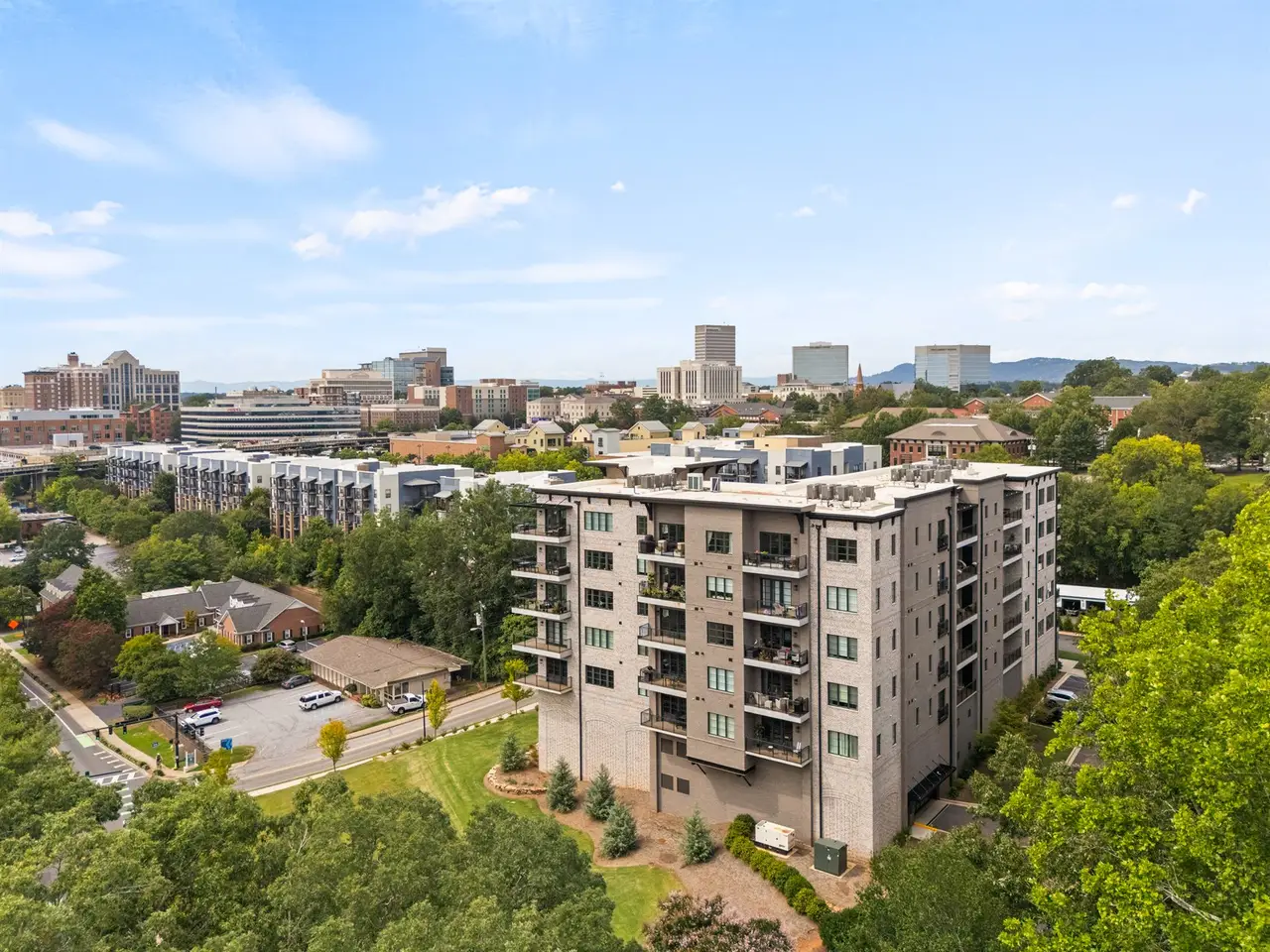 Welcome to BroadView Unit 405, a premier condominium just two blocks from Main Street in the heart of Greenville. This 2-bedroom, 2-bath home offers an open floor plan with soaring 10' ceilings, beautiful hardwood floors, and a luxurious kitchen complete with a spacious quartz island and Thermador appliances that's perfect for entertaining. The living room features custom built-ins and an eco-friendly, bio-ethanol fueled fireplace. Sliding glass doors lead to a private balcony for outdoor entertainment--gas grills are permitted! And the expansive windows showcase fantastic woodland views of Cleveland Park. It's the best of downtown living with quiet enjoyment. Walk or bike to grocers, local shops on Main Street, restaurants, the Peace Center, Fluor Field, the Greenville Zoo, Greenville's award winning park system, the Swamp Rabbit Trail, and more. Truly one of Greenville's most desirable addresses. BroadView is a concrete and steel structure with secured garage parking (two assigned spaces), private storage at car level, guest parking, and bike storage. Residents enjoy well-appointed common areas including a raised bed community garden and landscaped first-floor gathering space with fire pit & ample seating.
