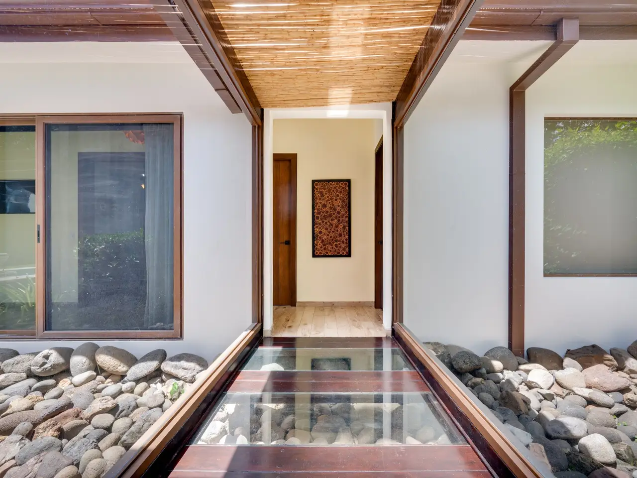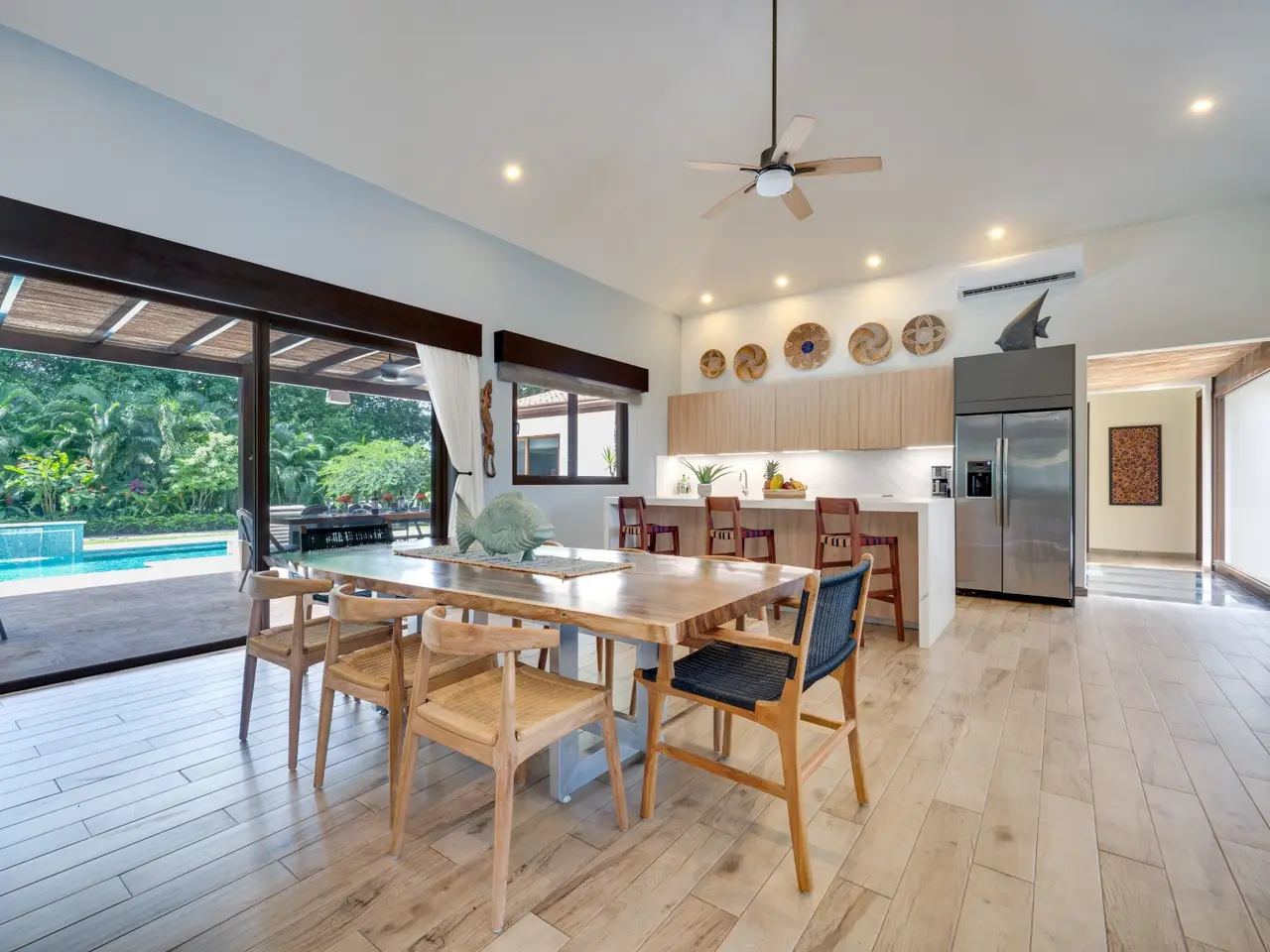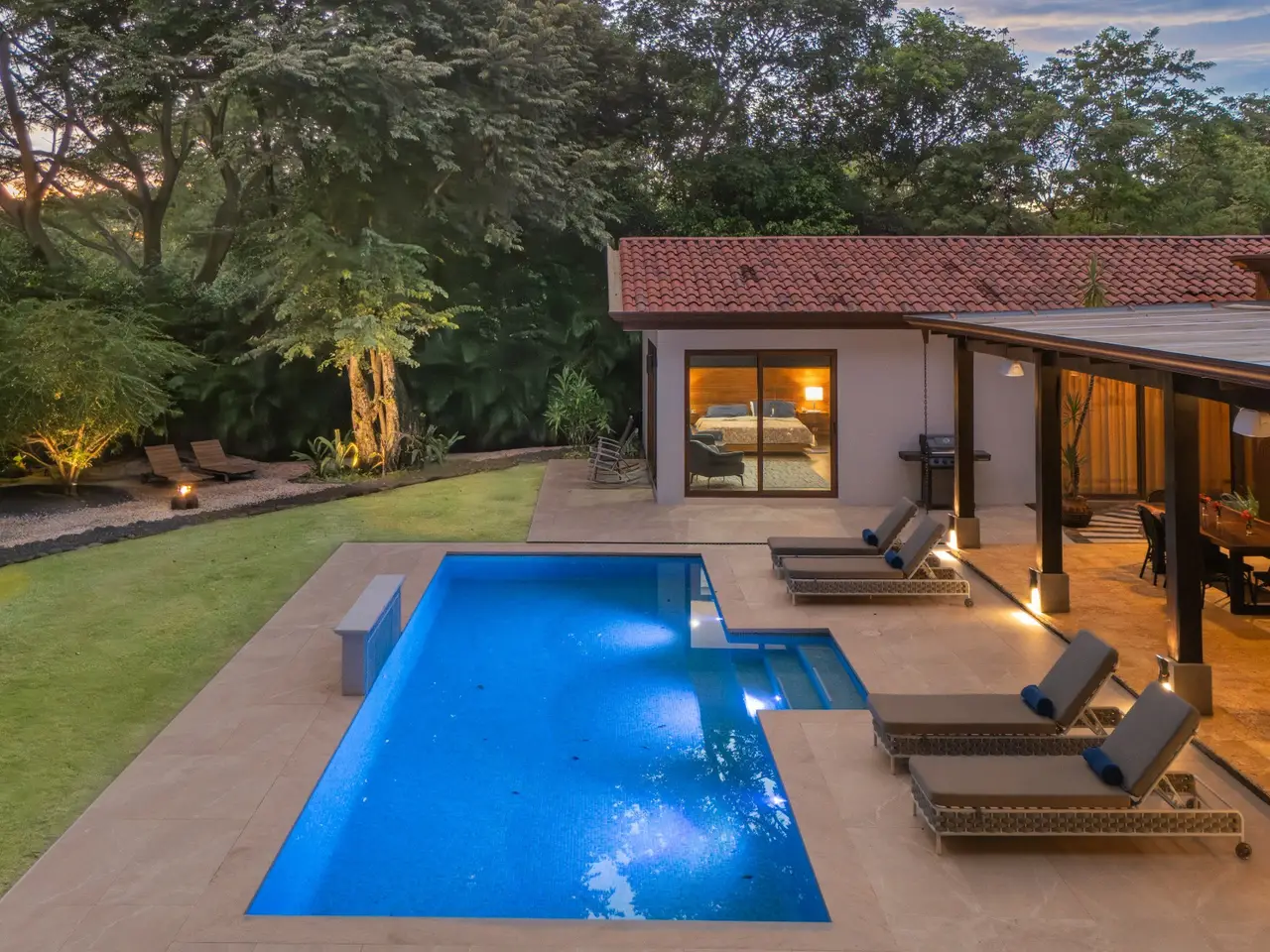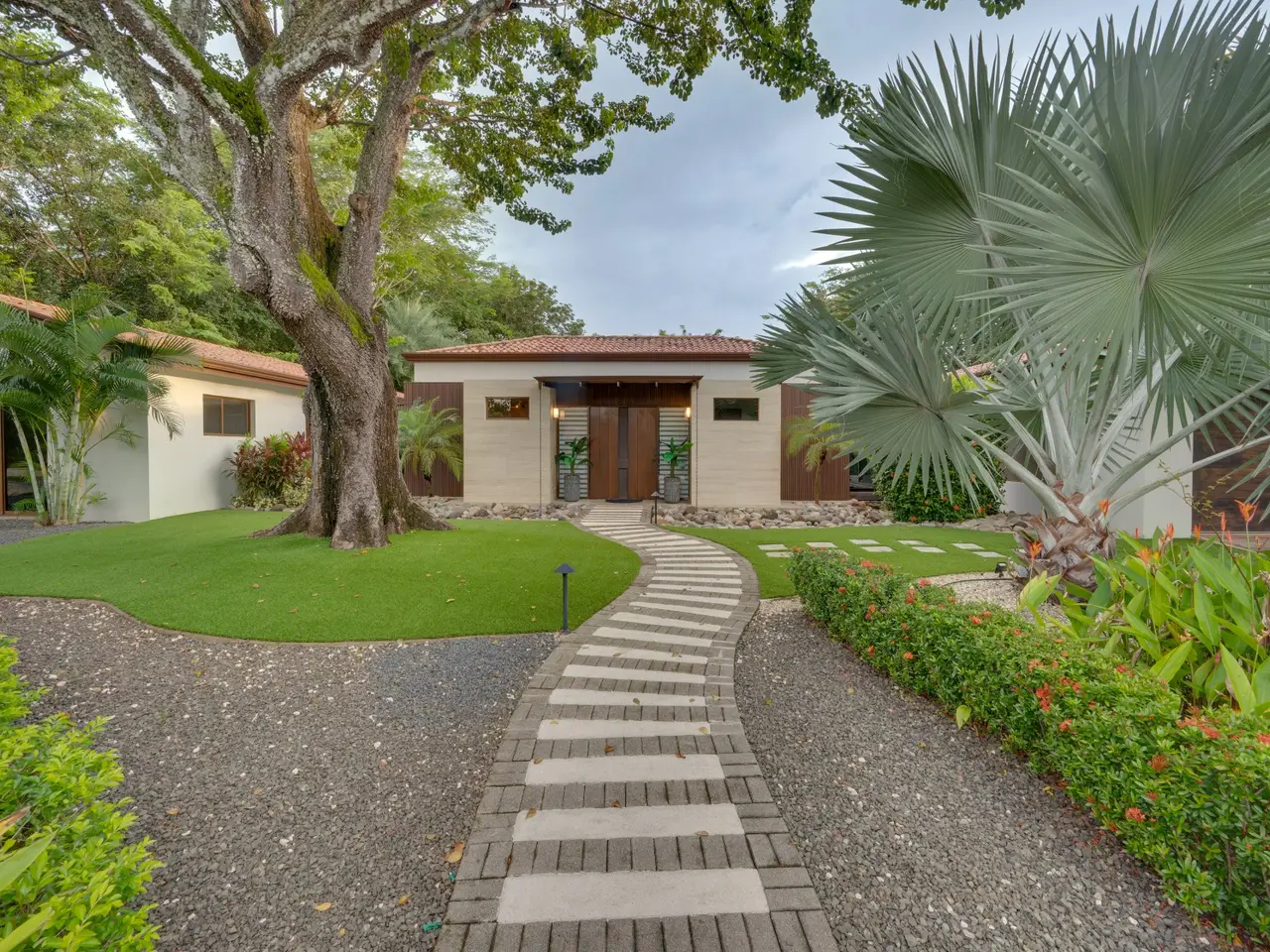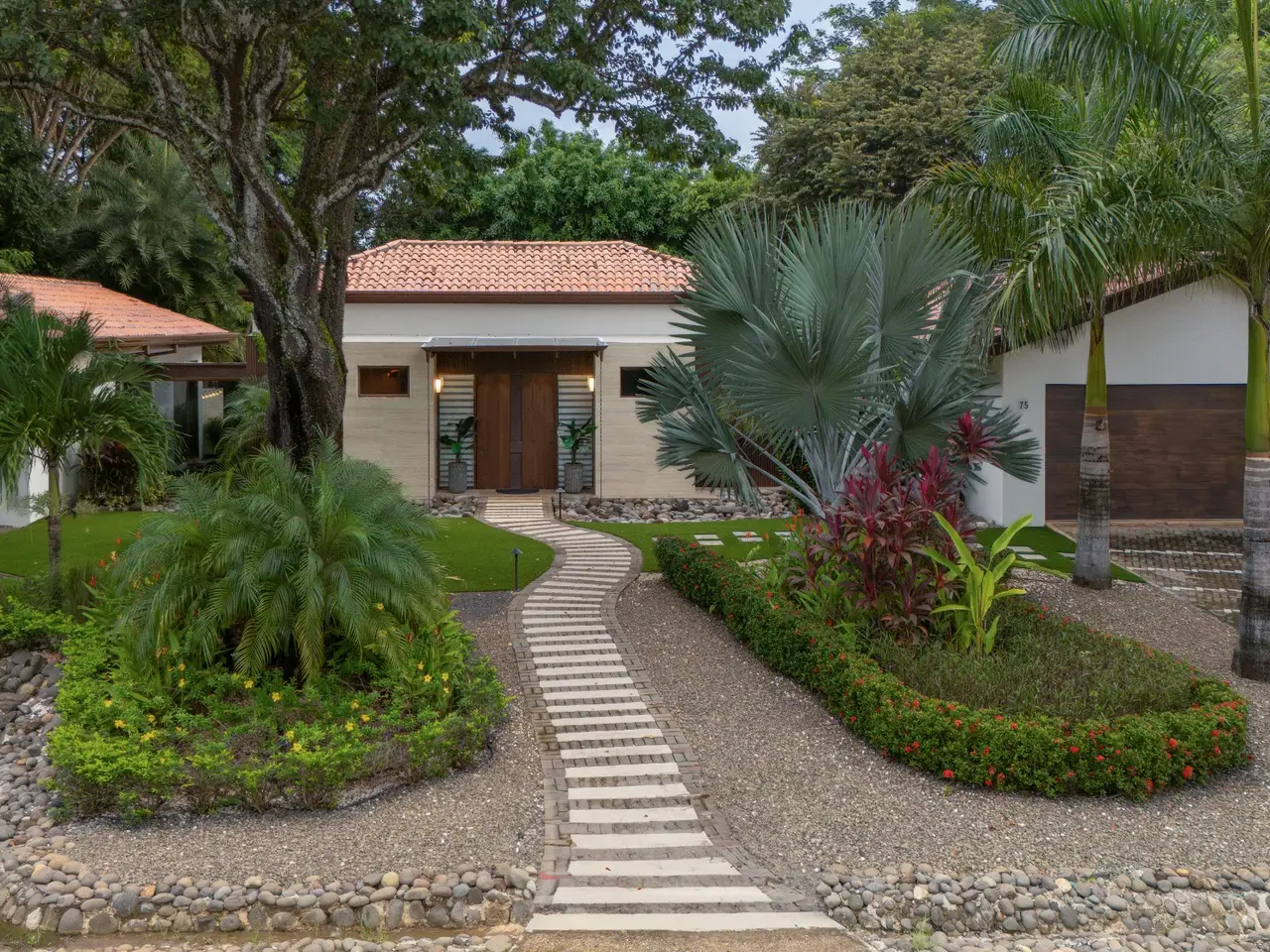 Casa Pachote – Luxury Living in Hacienda PinillaWelcome to Casa Pachote, an exquisite 4-bedroom, 4.5-bath luxury home in the prestigious Reserva de Golf community of Hacienda Pinilla. Recently refreshed with an $80,000 remodel, this residence blends contemporary sophistication with the inviting warmth of tropical living.Step inside and you’ll immediately feel the home’s open, airy ambiance. The living room radiates a welcoming, homey charm, framed by large patio doors that seamlessly connect indoor and outdoor spaces. Whether you’re relaxing with family or entertaining guests, the flow between the indoor living and outdoor dining areas creates an effortless sense of comfort and connection to nature.At the heart of the home is a chef’s kitchen, featuring elegant built-in appliances, a waterfall porcelain island, and matching counters and backsplash. A convenient pass-through window opens to the covered patio - perfect for serving meals al fresco or enjoying morning coffee by the pool.Designed in a distinctive “H” shape, the home’s layout balances privacy and harmony. Each wing hosts a master suite and guest bedroom, connected by a softly lit glass walkway that glows beautifully at night. This architectural touch highlights the home’s modern aesthetic.Every bedroom offers its own en-suite bathroom, ensuring privacy and comfort for family and guests alike. The two grand master suites are true sanctuaries: each with indoor sitting areas, King beds, and patio doors opening directly to the sparkling pool terrace. One master bedroom features an indoor and outdoor shower for a serene, spa-like experience.Step outside to your private tropical oasis. The expansive 11’ x 33’ pool with a tranquil waterfall and color-changing Pentair Glo lights becomes the centerpiece of the backyard as it is surrounded by lush landscaping, mature palms, and vibrant greenery that ensure total privacy. Thoughtfully placed landscape lighting creates a magical atmosphere after sunset, making the evenings just as beautiful as the days.The property is as practical as it is beautiful. Enjoy the convenience of an AstroTurf front lawn, in-ground sprinkler and drip irrigation systems, a whole-house water filtration and softening system, six-zone AC, and automatic blinds. The new outdoor deck space, new décor, and select furnishings complete the remodel, enhancing the home’s refined style.Additional highlights include:Spacious two-car garage with ample storageNew outdoor furniture and pool loungersExtensive exterior lighting on all sidesGolf cart charging outletFive TVs includedFully furnished and move-in ready, with all kitchenware includedFreshly painted exteriorAccess to all the amenities of Hacienda Pinilla including: golf, tennis, world-class surfing, beach club, miles of biking and hiking trails, restaurants, gym, etc Casa Pachote, Reserva de Golf 75 isn’t just a home—it’s a lifestyle. Offering a rare combination of luxury, comfort, and tranquility, it’s perfect as a full-time residence or high-end vacation retreat.? Experience the beauty of Hacienda Pinilla living, where every detail invites you to slow down, breathe, and feel at home.Contact us today to schedule your private showing.