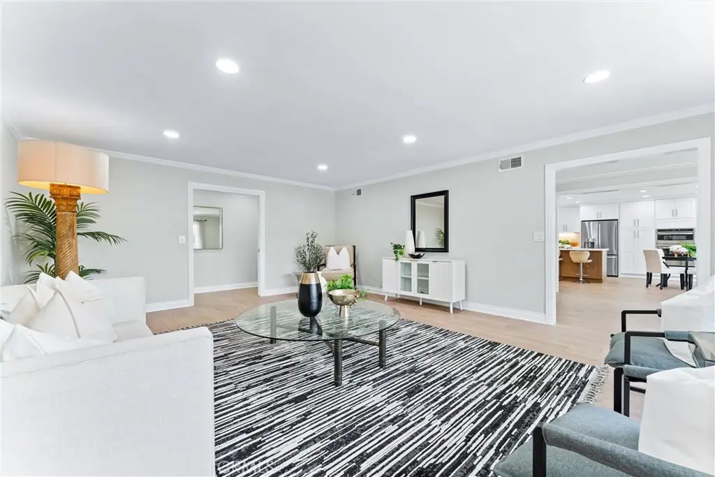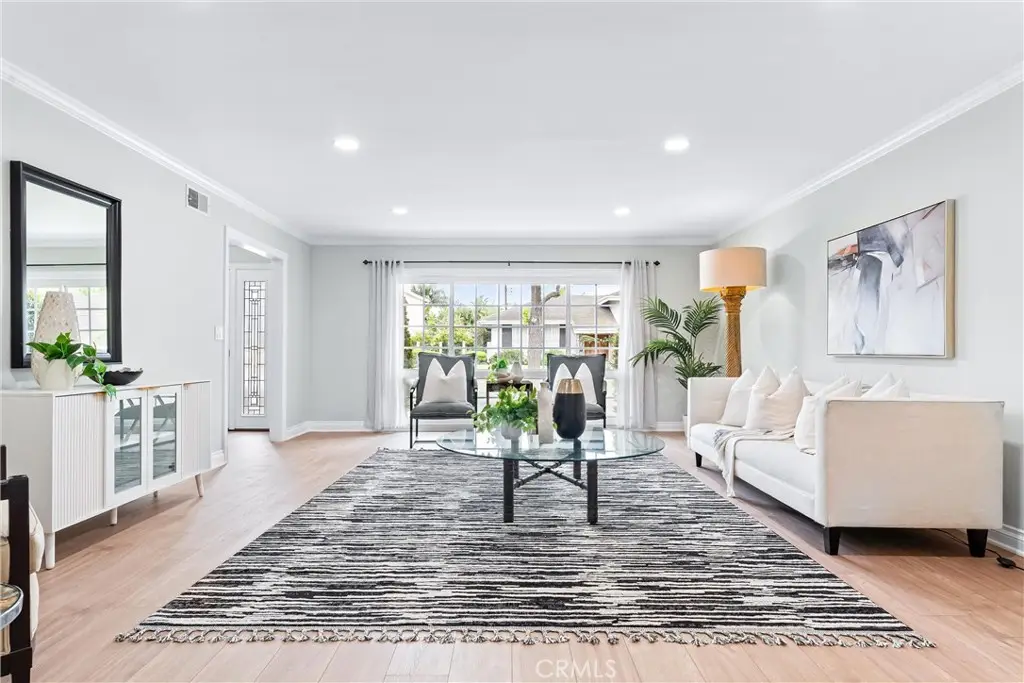 Step into comfort, quality, and thoughtful design in this beautifully remodeled two-story home, perfectly situated in the highly desirable Meredith Acres community of Orange. With four bedrooms and four bathrooms, this residence offers a flexible floor plan suited to a variety of living needs. On the main level, a private bedroom and adjacent three-quarter bath provide an ideal setup for guests, extended family, or a home office. At the heart of the home is a stunning chef's kitchen, featuring quartz countertops, a large center island with bar seating, stainless steel appliances, soft-close cabinetry, and a full-height designer backsplash. Light pours into the open living and family rooms, enhanced by recessed lighting, crown molding, and a cozy fireplace. Upstairs, three more bedrooms include two with private en suite bathrooms. The spacious primary suite offers a spa-inspired bath and generous closet space, while the secondary suite includes its own walk-in closet and full bath, perfect for an older teen, extended family member, or long-term guest. The backyard is a peaceful retreat, with a sparkling pool, mature landscaping, and a covered patio designed for outdoor dining and relaxation. Additional highlights include a brand new roof, a three-car attached garage with new doors and openers, and a host of thoughtful upgrades throughout. Located within walking distance to Orange Lutheran High School and top-rated Villa Park public schools, this move-in-ready home delivers style, function, and location, an exceptional offering in a sought-after neighborhood.