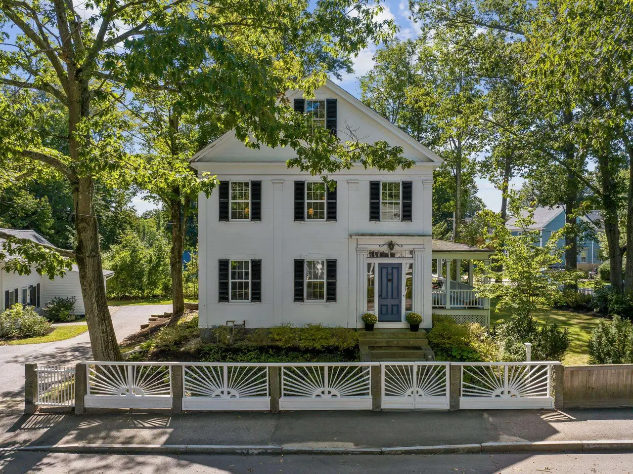 We are pleased to introduce this stunning 1830 New England Greek Revival in Exeter, one of the most beautiful historic towns in New Hampshire. Over the last two decades this home has been lovingly maintained, with original floors, windows, fireplaces, shutters, doors, and much more restored with careful consideration. The main house consists of four upper level bedrooms, three and a half baths, and a custom designed kitchen with flexible entertaining options connecting to both the formal dining room and lovely outdoor hosting areas. A detached apartment gives many options for multi-generational living or long term leasing. Shaded by mature trees for cooler summer afternoons, the spacious outdoor garden space is fenced in and borders a side street with beautifully landscaped perennial beds and a covered porch that will become your favorite spot for morning coffee. This home is the perfect balance of historic and modern - with a restored sunburst fence built during the turn of the century, double-hung pocket shutters, and original clawfoot soaking tub, all complimented by central air conditioning within the upper floors, new custom Low-e storm windows, spray foam in the attic, and many other recent updates. Situated just one block from the train station and neighborhood shopping district, with the bustling downtown and Phillips Exeter Academy just beyond. The neighboring dead end street has walking paths connecting you to school, two playgrounds, and athletic fields.