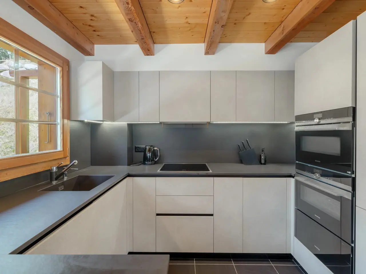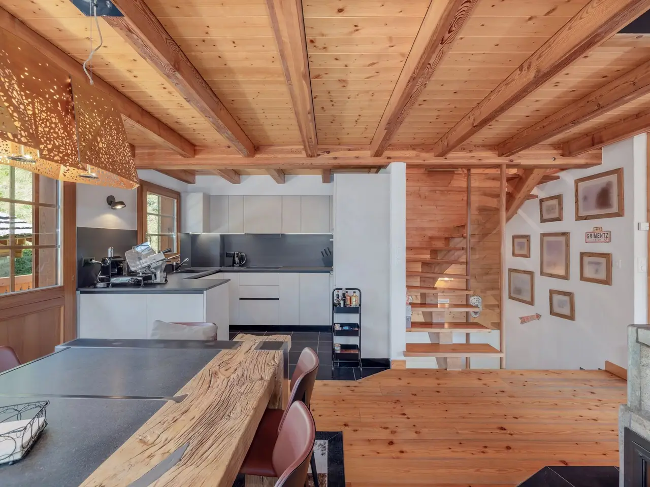 Nestled on a mountainside in unspoilt natural surroundings, Chalet Soleil des Alpes is spread over three levels, designed to welcome families in search of tranquillity, authenticity and rejuvenation. Its architecture subtly blends alpine charm and contemporary comfort, in a soft, enveloping atmosphere. From the moment you enter, the lower level is an invitation to well-being and sharing. Two bedrooms, each with en-suite bathroom, join a welcoming wellness area with Jacuzzi and hammam. A well-appointed wine cellar, laundry room and utility room complete this practical and convivial floor. The first floor is dedicated to communal living. The living room, centered around majestic soapstone, radiates a comforting warmth, perfect for winter evenings with family and friends. The open, fully-equipped kitchen flows seamlessly around the dining room, creating a space that's both functional and intimate. From this level, access to the terrace and balconies allows you to extend your moments of relaxation with unobstructed views over the rooftops of the old village and surrounding peaks. Upstairs, two en-suite bedrooms offer a haven of peace. The atmosphere is hushed, bright and always connected to the surrounding nature. Every space has been designed to promote rest, privacy and comfort. A family haven par excellence, Chalet Soleil des Alpes offers a privileged living environment, where you instantly feel at home. A place designed to enjoy the mountains through the seasons, with authenticity, serenity and the alpine art of living.