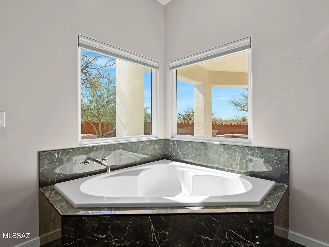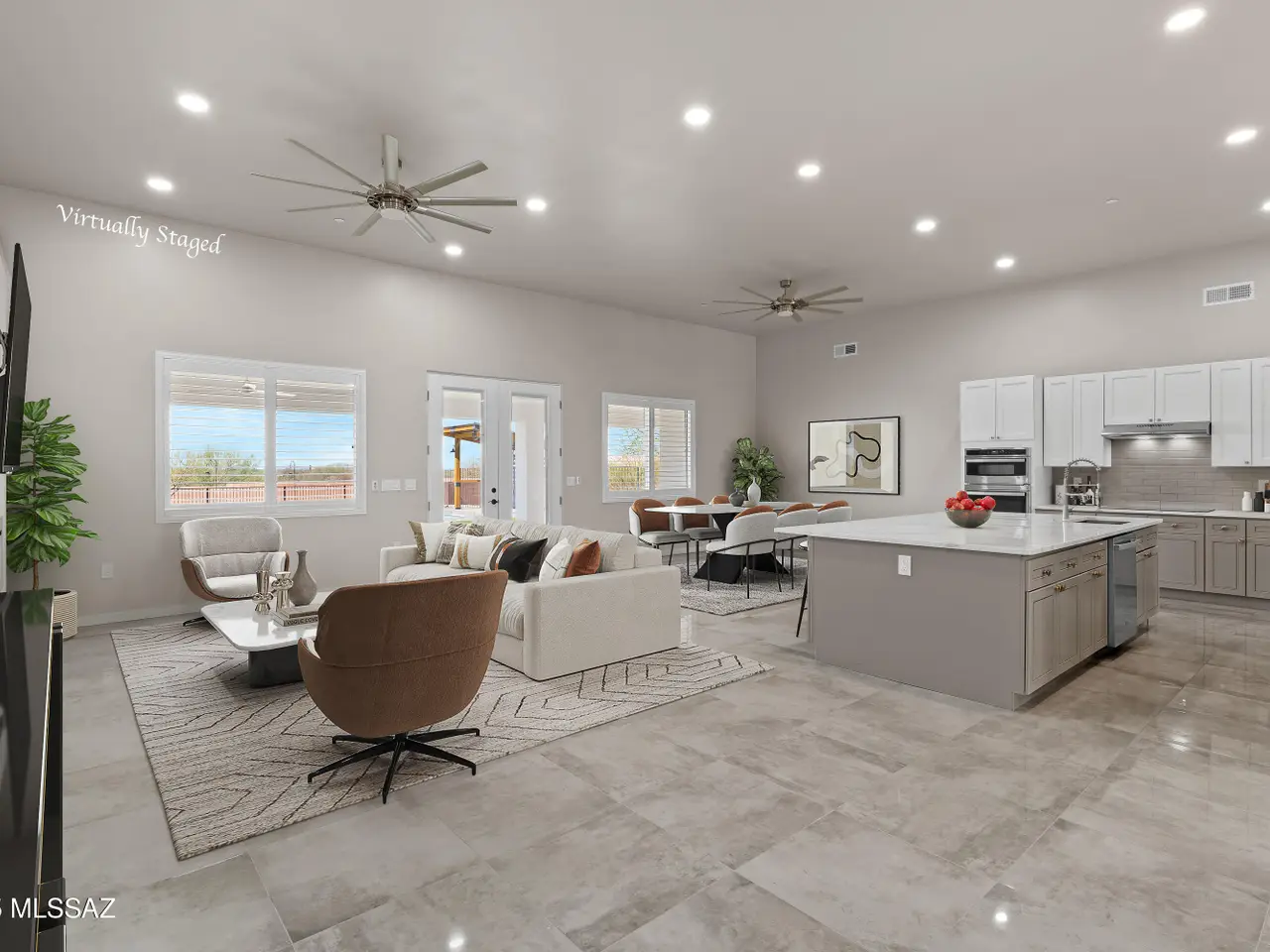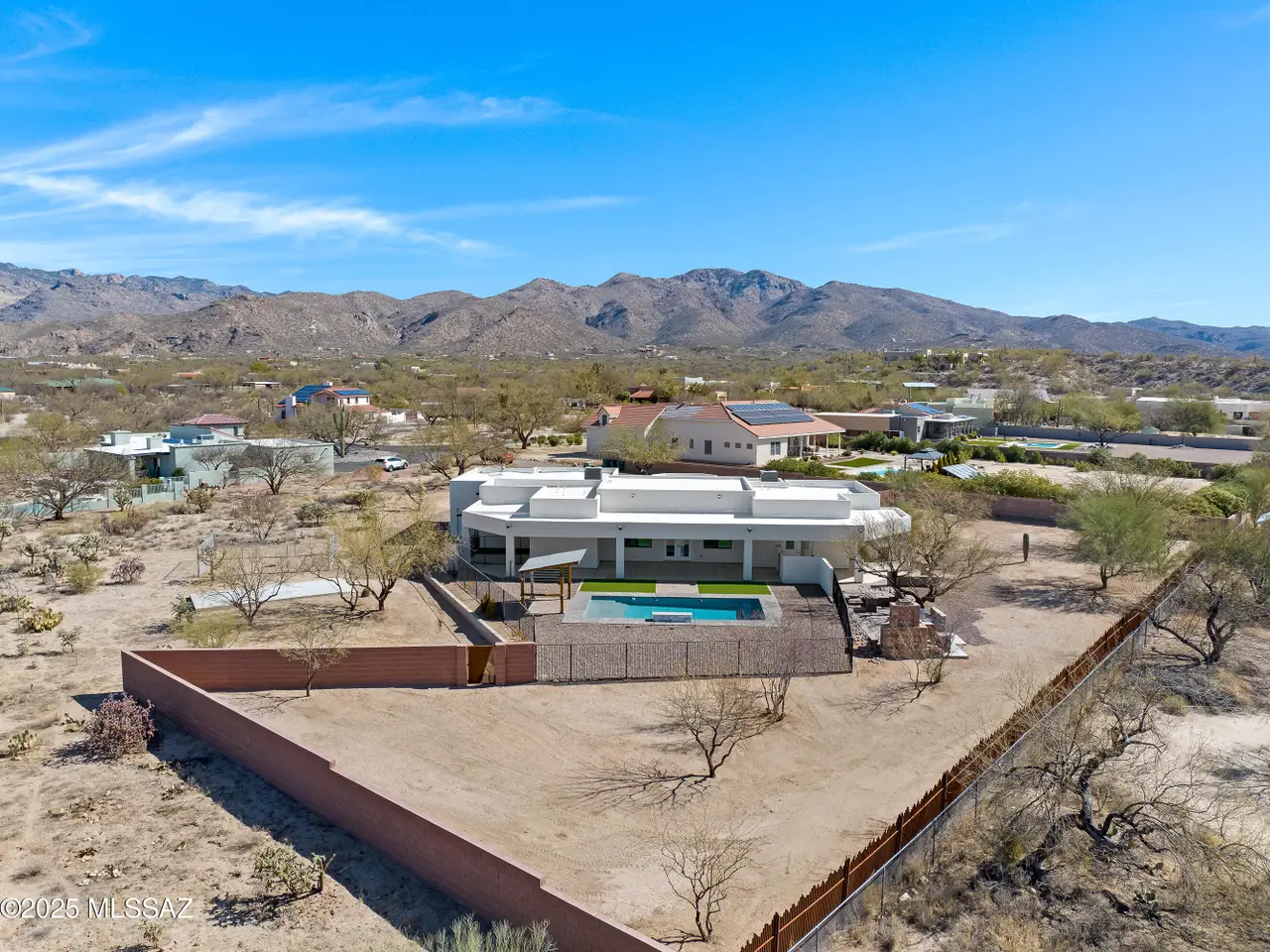 **End of the Road in Magical Tanque Verde!** Breathtaking Contemporary Oasis Crafted in 2025. Embrace clean lines & a thoughtful floorplan. Mountain views from nearly every window! Minutes away, ntl. forest awaits exploration, along w/ shopping, golf & fine dining. Enjoy the FREEDOM of life without an HOA! Shaded by deep, full-length covered patio. Oversized windows bathe the great room in natural light with views of the waterfall pool. Backlit, remote ignition fireplace allows you to set the perfect mood. White quartz w/gray veining provides an elegant complement to the gourmet kitchen's seating island. With a Split BR plan, the primary bath stands out as a work of art! The finished yard boasts BBQ, fireplace, shade trees in divided spaces w/over 600ft of walls & fencing on an ACRE LOT.