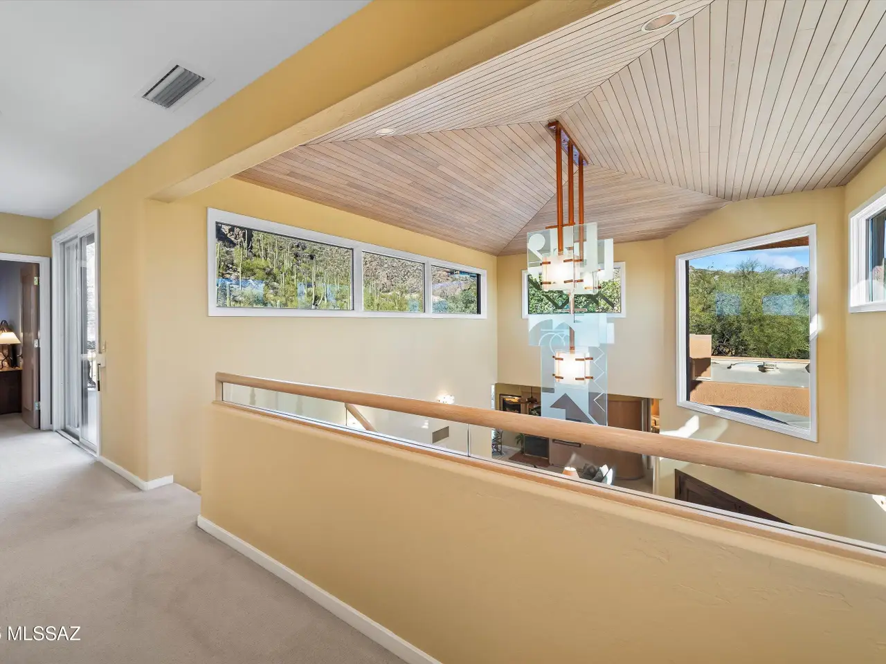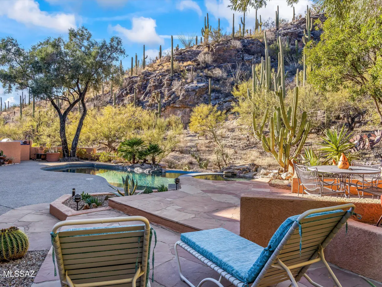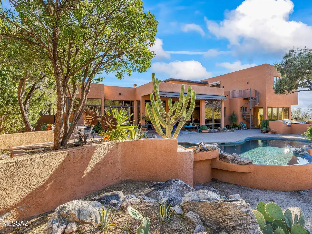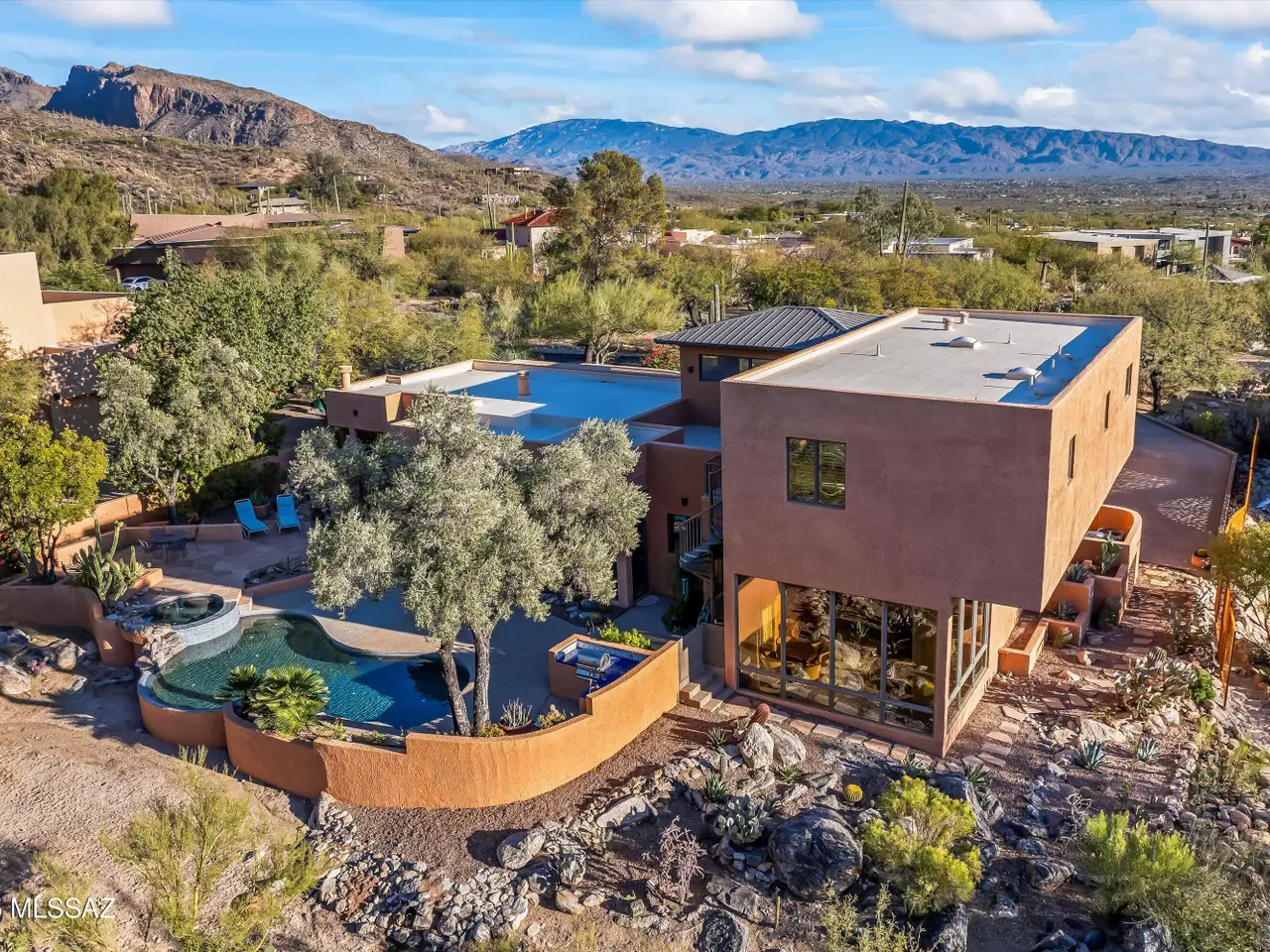 Ventana Canyon Desert Oasis in Esperero Canyon Estates! One of only 19 homes in this exclusive section of Ventana. Nestled within the gated Ventana Canyon community, this contemporary masterpiece designed and built by John Campisano offers a serene retreat. The property boasts saguaro-studded hillsides, lush natural desert and city lights providing a private mountain backdrop. Situated on a large lot in a quiet cul-de-sac, the home features a private pool and spa in a natural open backyard, complete with a built-in BBQ. The master bedroom is conveniently located on the main level, and the home includes an open kitchen and soaring ceilings. Upstairs has a large walkout View deck with a spiral staircase to the pool area. Enjoy the perfect blend of luxury and nature in this exquisite home.
