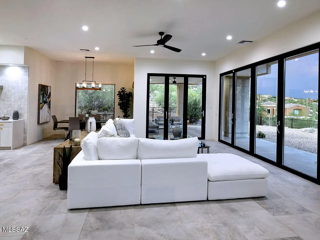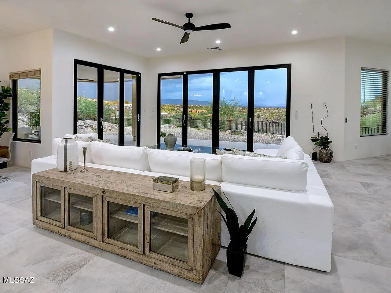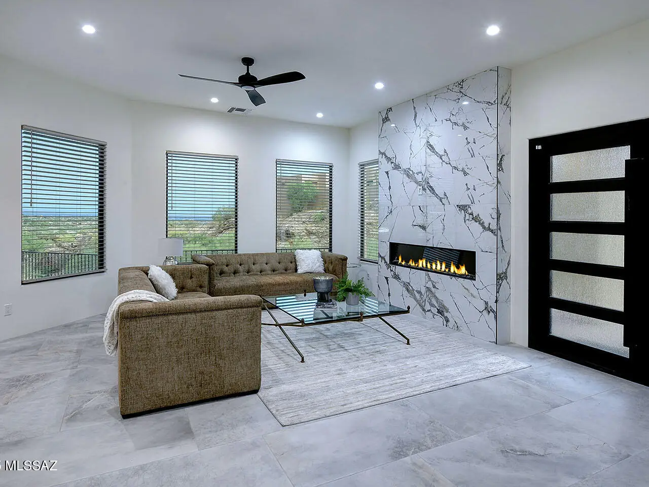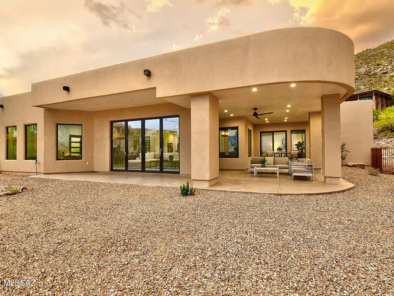 Stunning, like-new 2023 contemporary perched on La Paloma Drive, the highest street in the coveted Coronado Foothills Estates of Tucson's Catalina Foothills. Set on a glorious one-acre lot embraced by the Catalina Mountains and Coronado National Forest, this 3, 605 sq. ft. residence offers 4 bedrooms, 4.5 baths, and a 3-car garage--designed to showcase sweeping city lights, mountain vistas, and dramatic sunrise and sunset views from every room. Built by renowned master builder Paul Rondelli, the home welcomes you into a striking great room with soaring ceilings, walls of glass, porcelain tile flooring, a sleek fireplace, and an open dining area--perfect for entertaining. The chef's kitchen is both functional and modern, featuring stainless steel appliances, a spacious center island with a breakfast bar, abundant counter space, and a walk-in pantry. The luxurious primary suite is a private retreat with a fireplace, direct access to the covered patio, and a spa-inspired bathroom boasting quartz finishes, a walk-in glass shower, a soaking tub, and a generous walk-in closet with custom built-ins. Each bedroom has an en-suite bath and a walk-in closet. Additional highlights include a large laundry room with a sink, and a light-filled garage with windows and epoxy coated floors. Located within the Catalina Foothills School District #16, this home offers the perfect blend of contemporary style, move-in-ready convenience, and unrivaled views, all just minutes from shopping, dining, and city amenities, yet peacefully above the bustle of daily life.