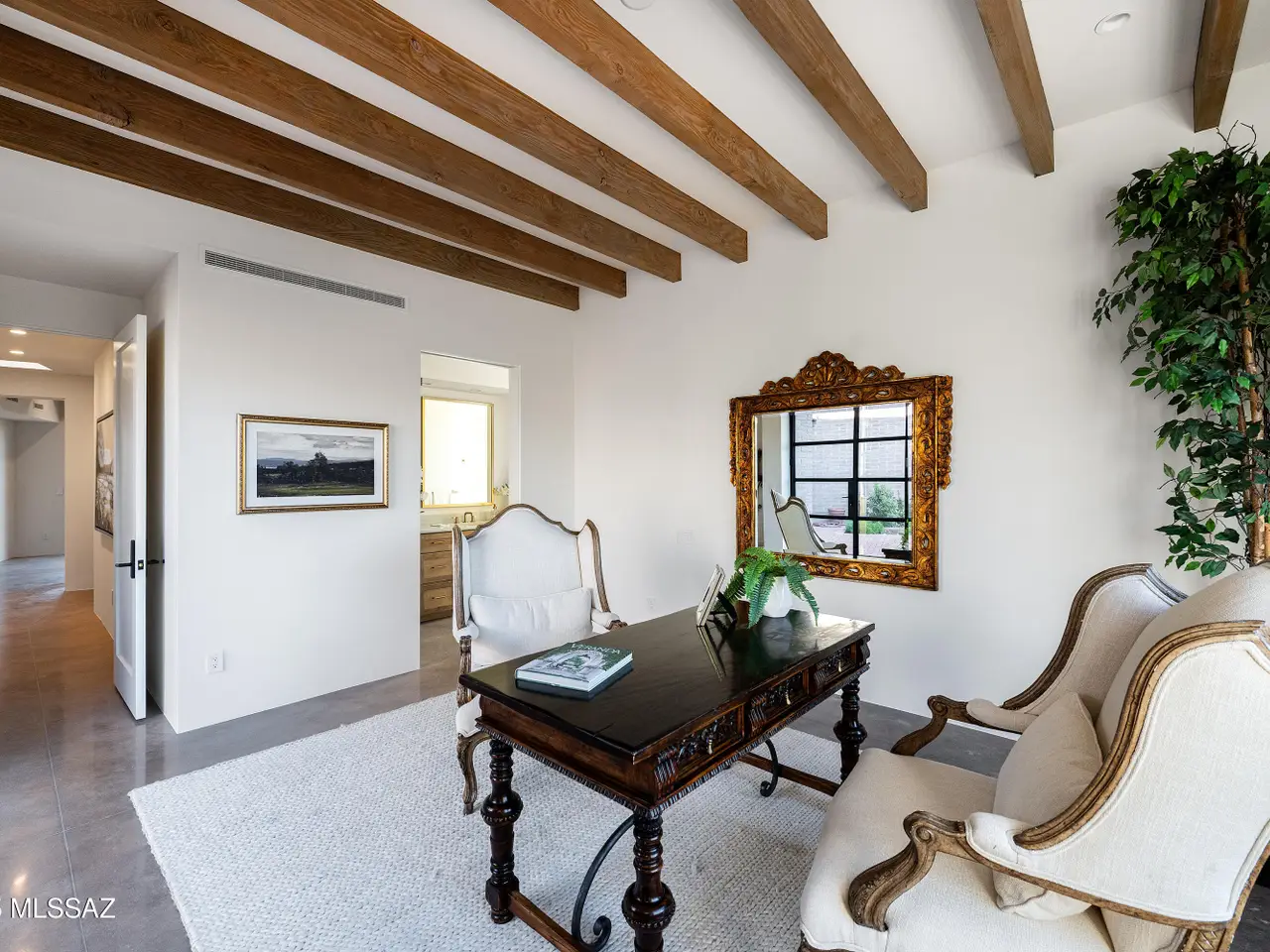 Quintana in the Catalina Foothills, Tucson's newest luxury, gated community is in the heart of the Catalina Foothills, located on the last premium 20 acre parcel in the central foothills with superior city and mountain views. Built with solid masonry perimeter wall construction and brick, designed by architect Michael Franks and La Quinta Building Company. This 3,421 sq ft , 3 bedroom, 3 1/2 bath Cassia Model home on .88 acres will be completed and ready for occupancy early to mid 2025 and includes paver driveway, lush brick front courtyard entry, hand forged wrought iron entry gate and patio railings, exterior hardscape, landscape and lighting, steel doors and windows with high efficiency dual glazed windowpanes, beamed ceiling, polished colored concrete floors throughout, smooth finishes.