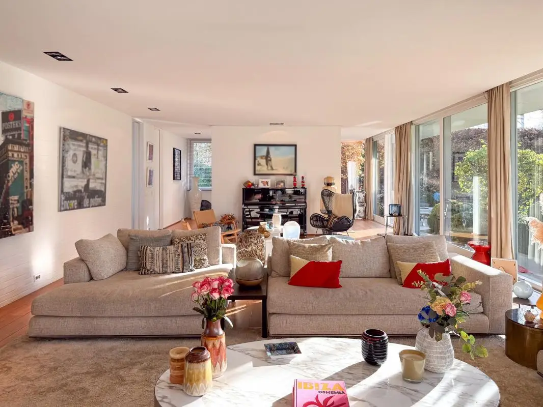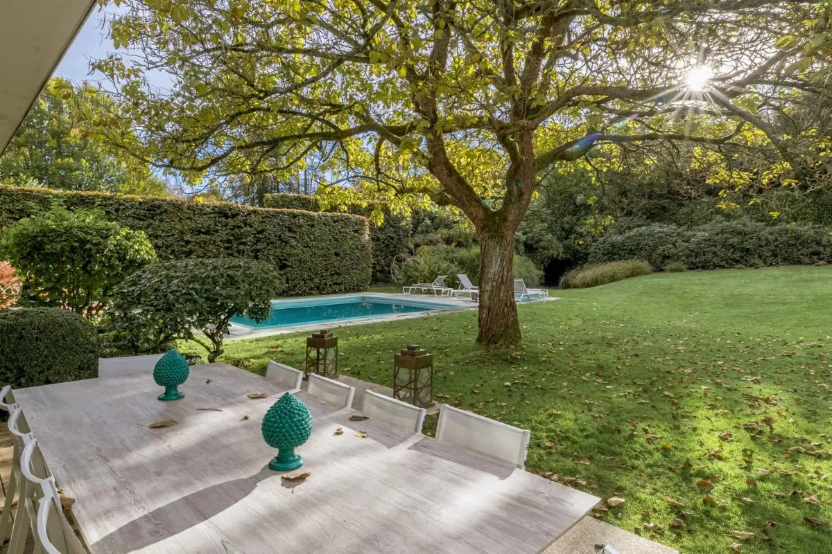 In one of the most sought-after neighbourhoods of Uccle, close to the shops and schools of Fort Jaco, this rare contemporary property, built in 1968 and extensively renovated in 2000 in a minimalist, Zen style, offers an exceptional living environment. Built on a landscaped plot of ± 38 ares 87, facing south-west, it charms with its calm, its light and its remarkably designed garden, complete with a mosaic swimming pool. The villa has a built area of ± 600 m², divided between beautiful reception rooms, a fully equipped Boffi kitchen, an office, 5 bedrooms, 3 bathrooms and 1 shower room. A garage for 3 cars and 3 outdoor parking spaces complete the property. EPC: G A rare property combining space, serenity and refinement in one of the most sought-after areas of Uccle.