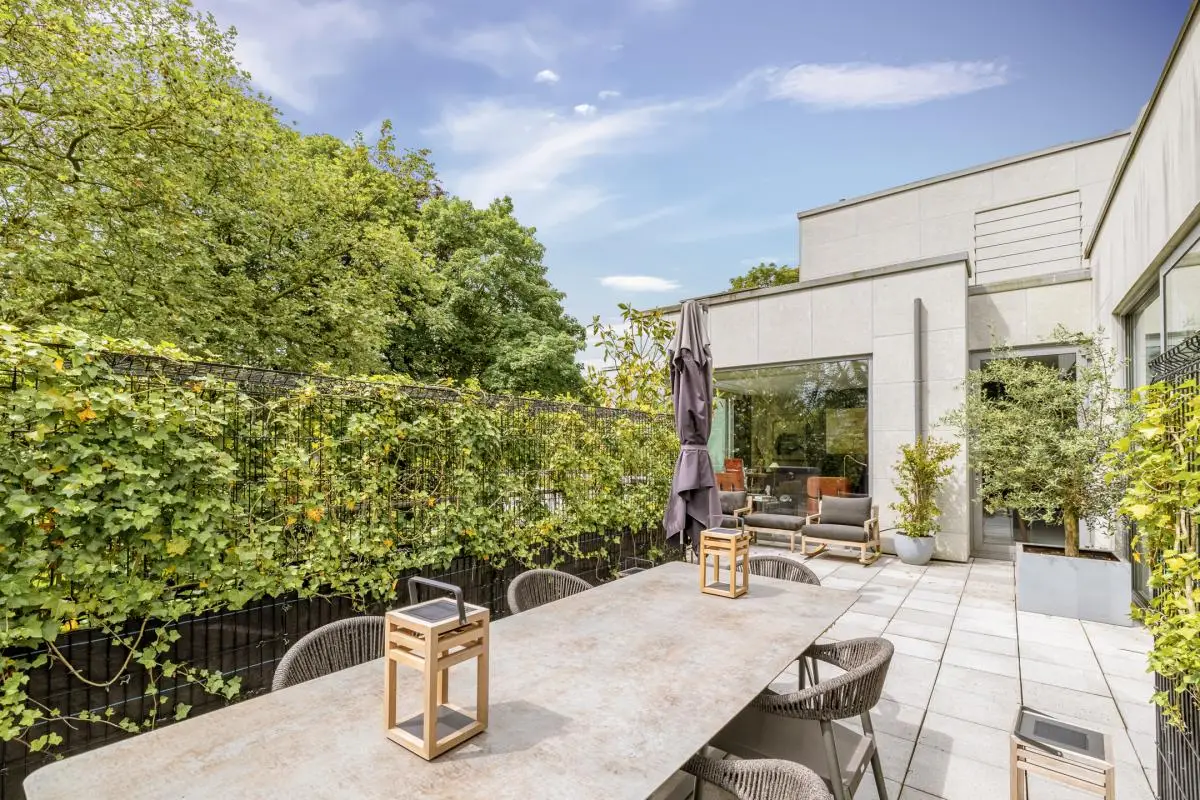 In the sought-after Observatoire district, this 234 m² penthouse, located on the top floor of a residence designed by Marc Corbiau (1999), is exceptionally bright and in perfect harmony with nature. Its light-filled reception rooms open onto vast 150 m² terraces, offering uninterrupted views over the lush surroundings. The fully-equipped kitchen fits perfectly into this elegant, uncluttered space. The Apartment includes a bedroom with en suite bathroom, a study and the possibility of creating a second bedroom with an additional shower room. This unique property also benefits from three private garages and individual heating. EPC D